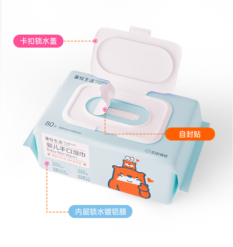蓬松生活产妇日常护理湿巾家用大包婴儿擦屁屁专用湿纸巾儿童清洁母婴用品 【经典款】蓝色80抽/包*10包