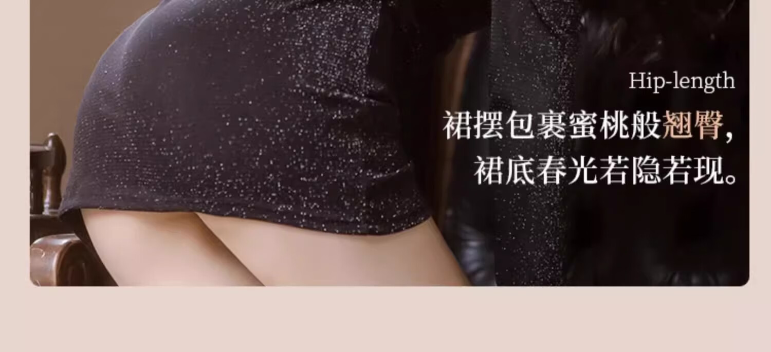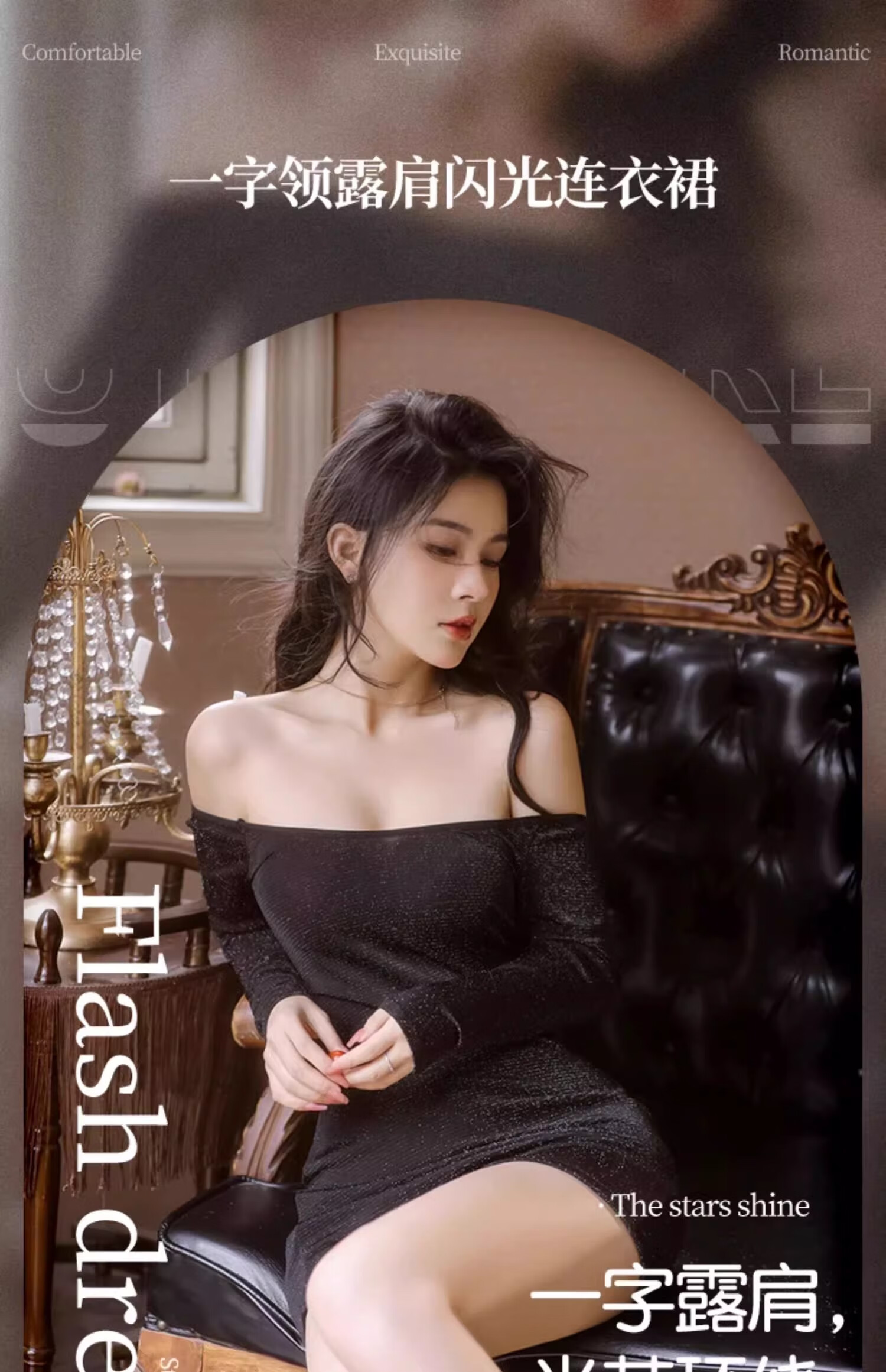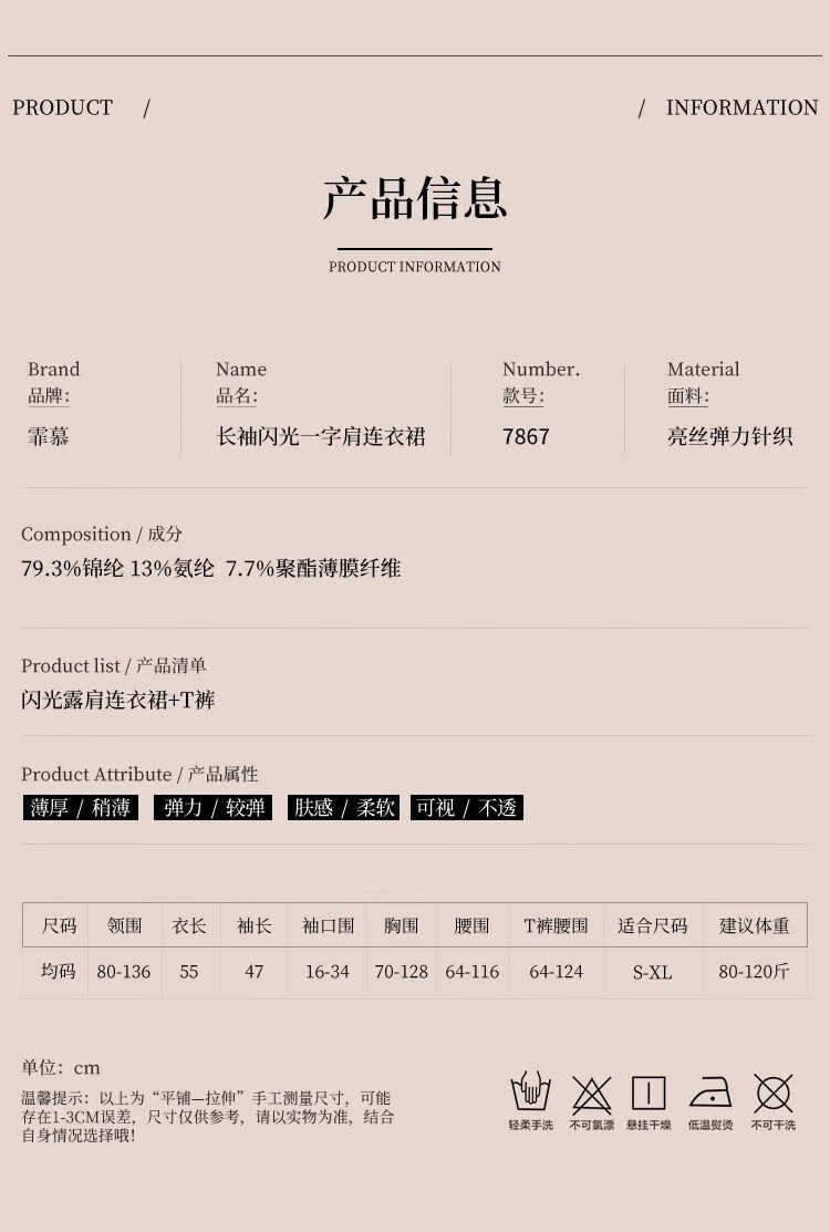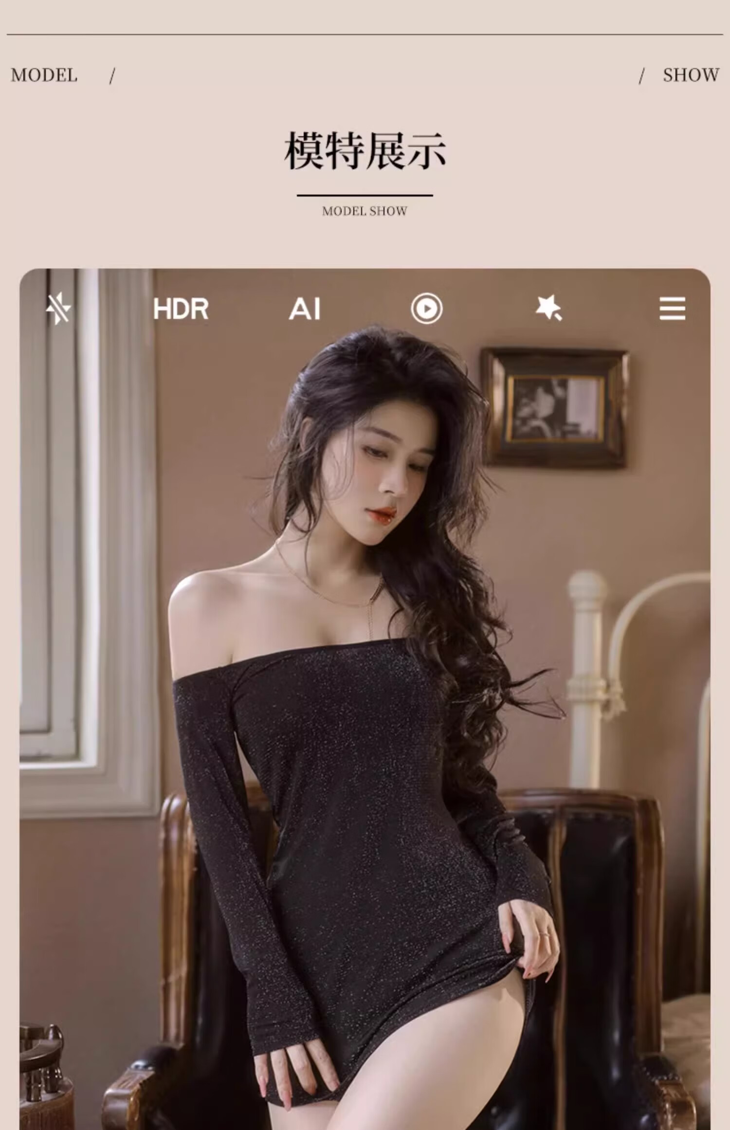 情趣睡裙女级污度诱惑性感可外穿套装睡衣内衣制服夫妻刺激房事丁字裤一字肩夜店女装闪光 长袖闪光连衣裙+T裤 均码【建议体重80-120斤】
