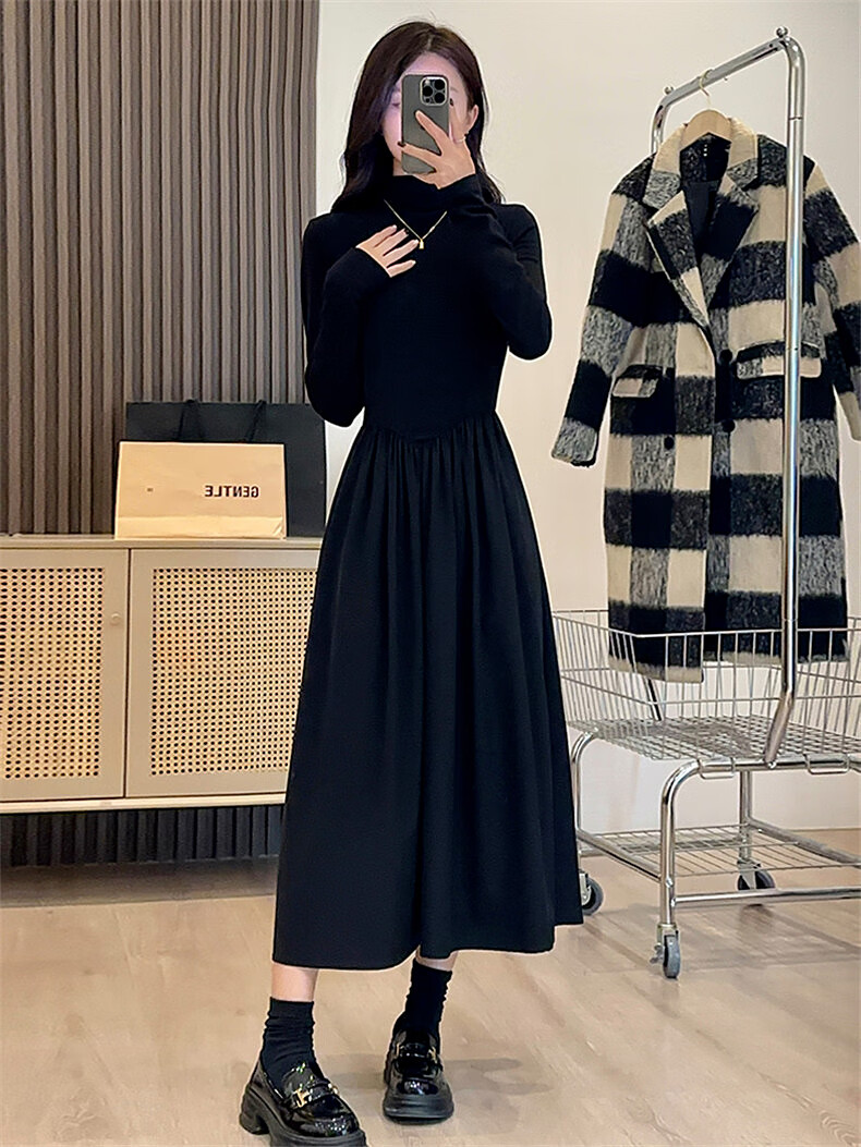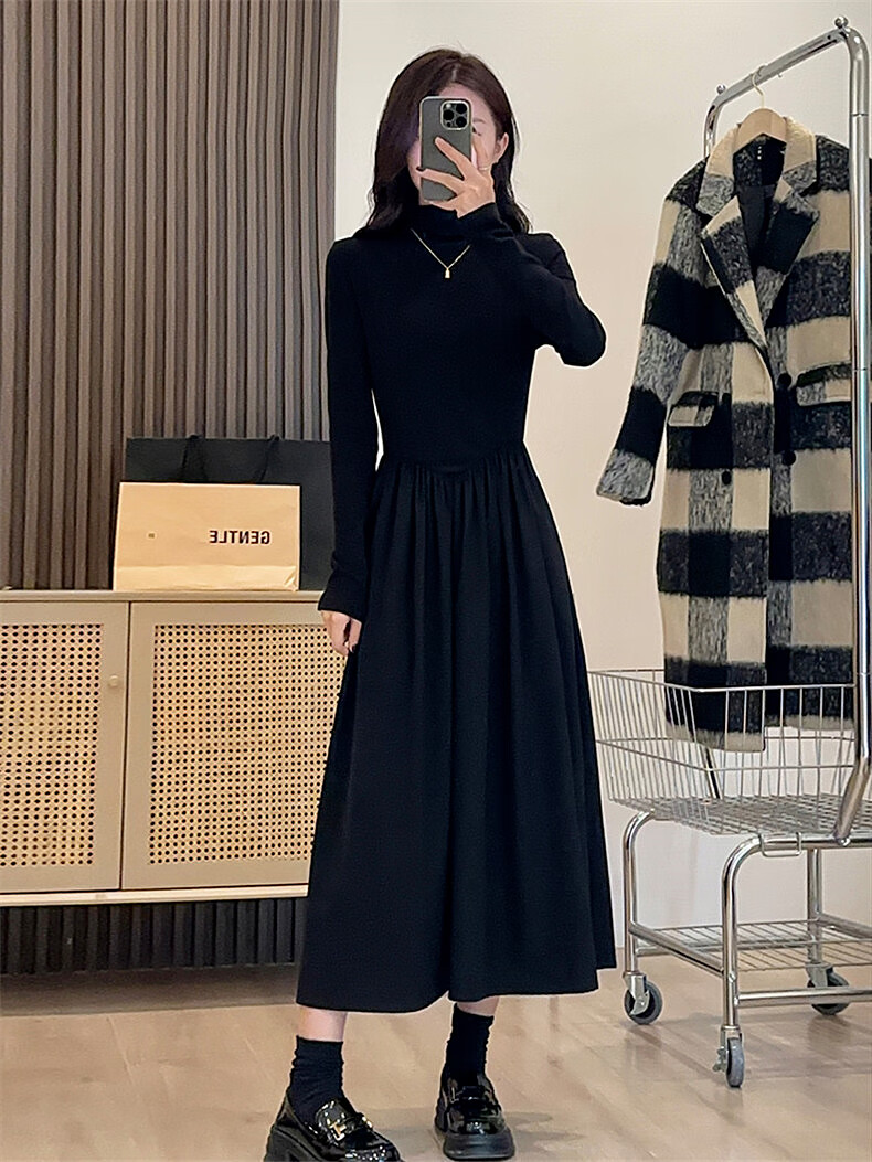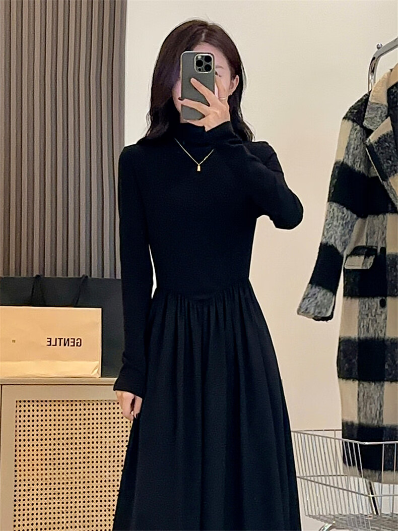 皮尔卡丹(pierre cardin)大·衣内搭连衣裙2025新款小个子赫本风黑色针织女秋冬打底长裙 黑色半高领【深冬装搭配一整套/ S 40/45kg