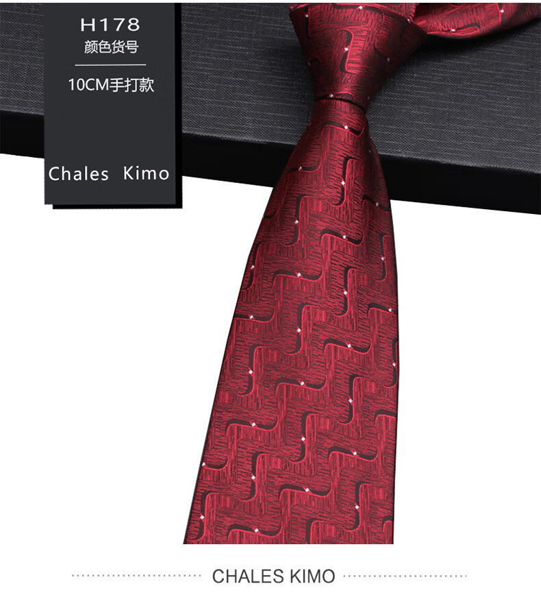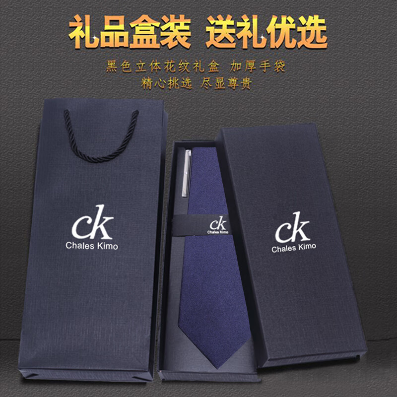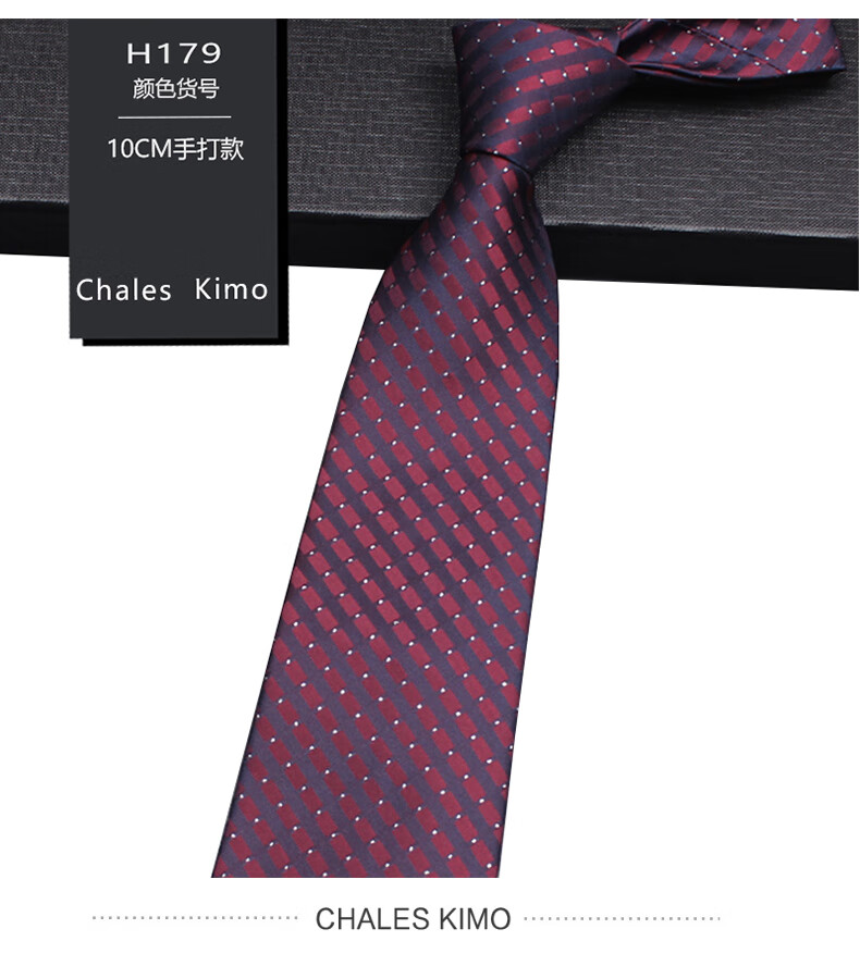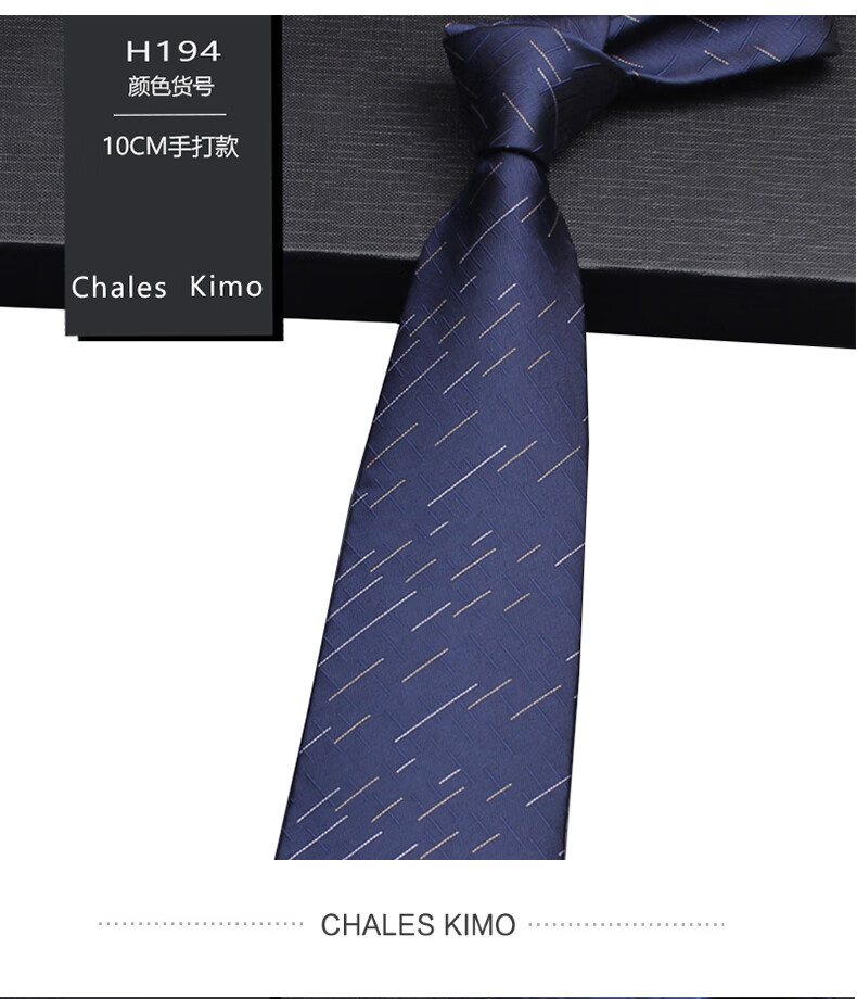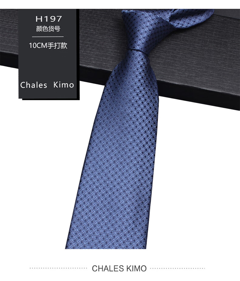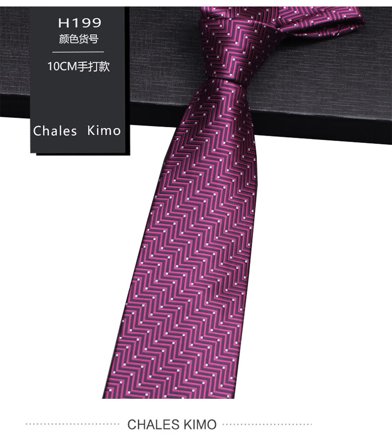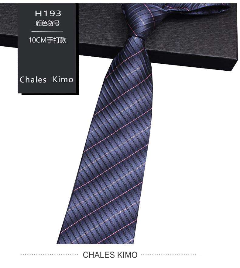 CHALES KIMO领带男10cm宽版正装商务拉链款纯色送父亲加宽超大号免打结婚高档 H196-(宽10cm) 拉链免打款