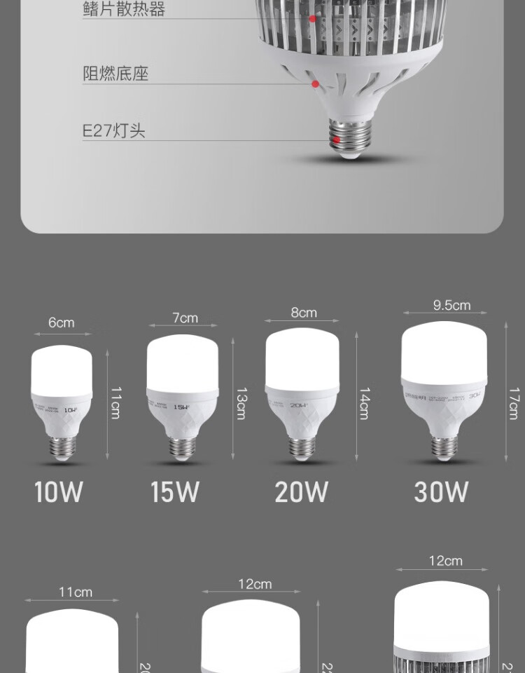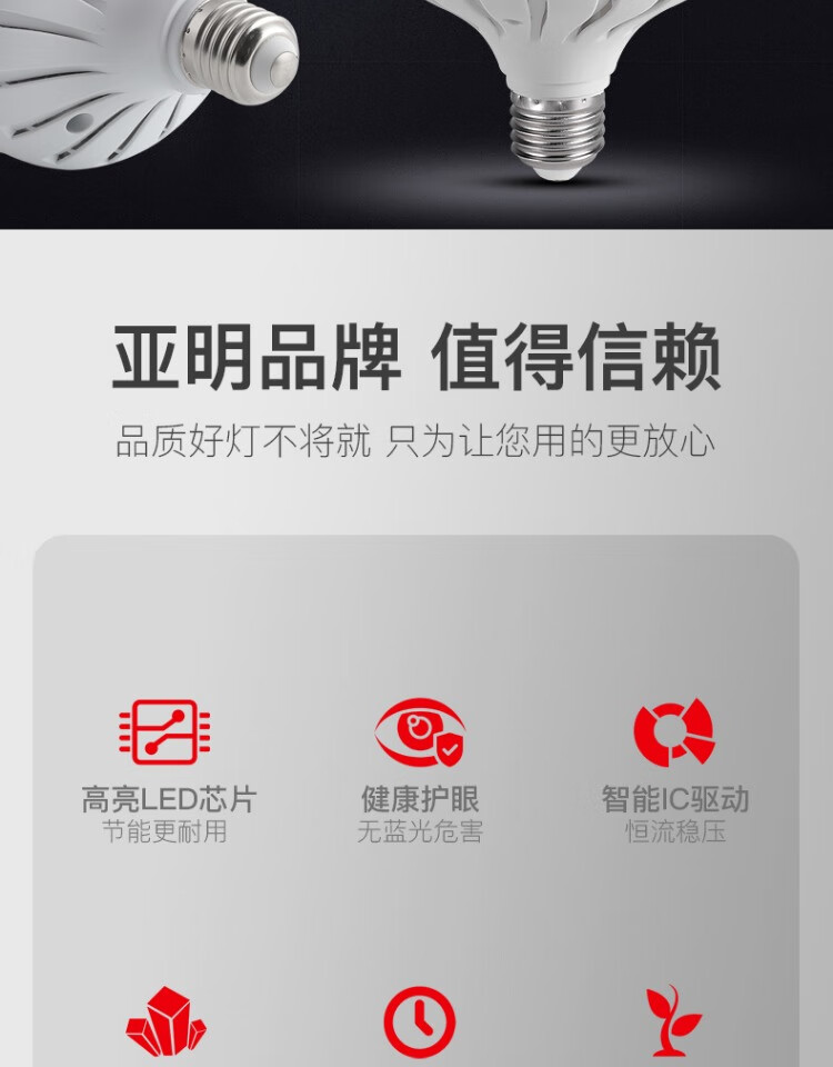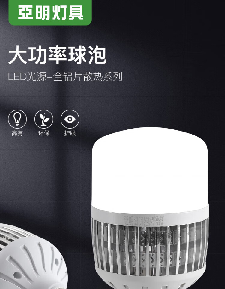 亚明照明亞明led灯泡球泡节能灯E27螺旋家用车间工地厂房高亮度室内照明灯 亚明-LED鳍片球泡100w(E27)