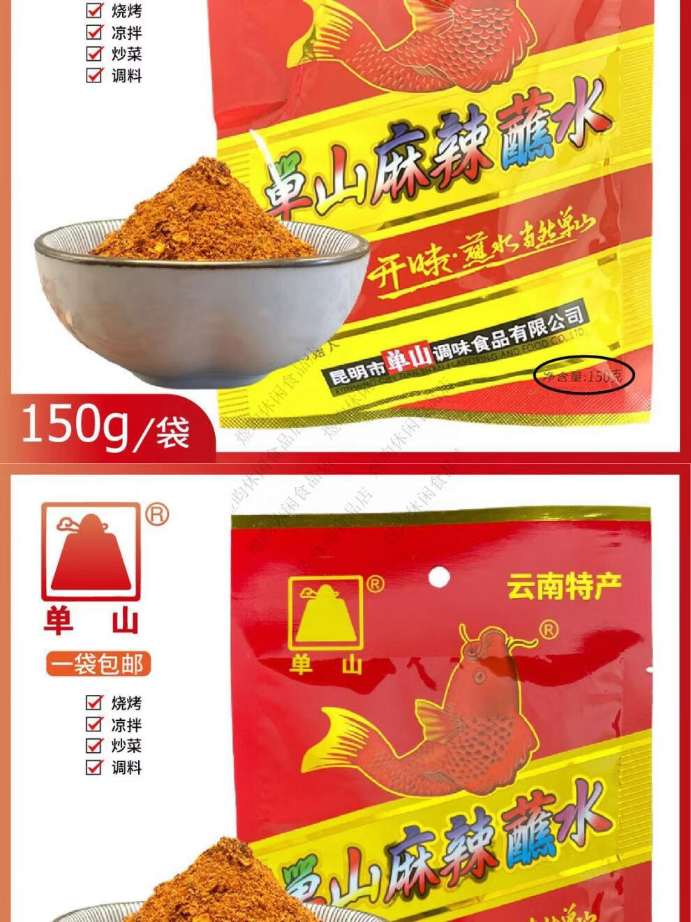 单山云南蘸水大包商用麻辣辣椒面烤肉蘸料烧烤干碟干料火锅蘸料 单山麻辣蘸水 100克