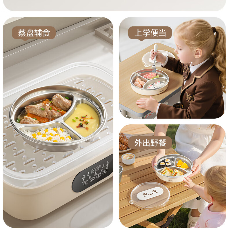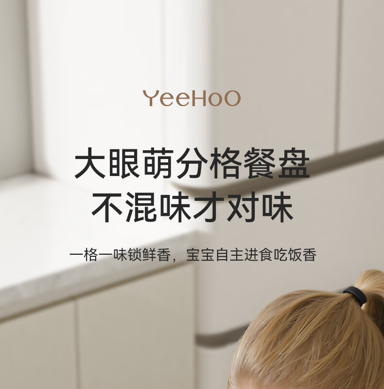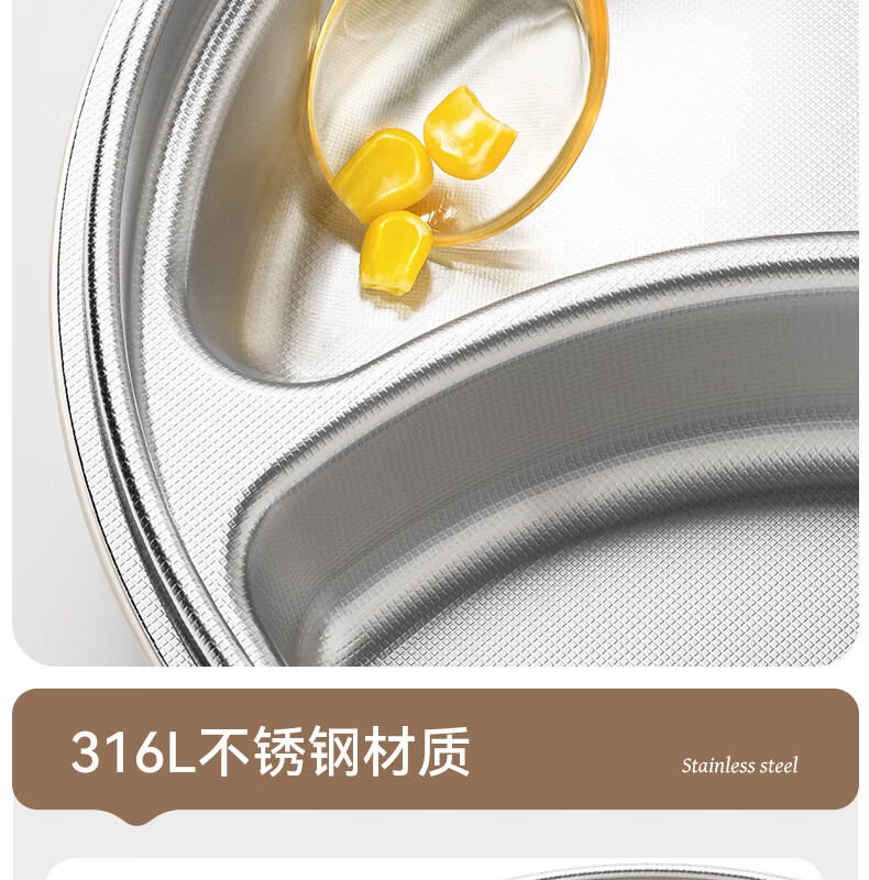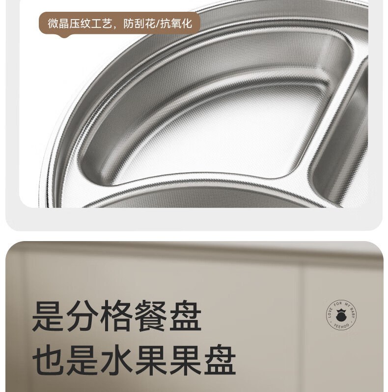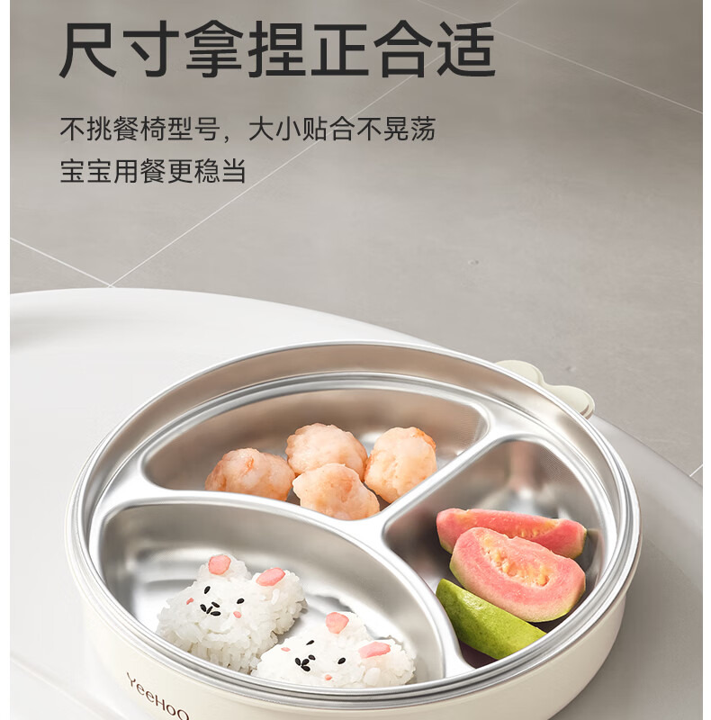 英氏(YEEHOO)宝宝餐盘婴儿分格餐盘自主进食餐盘宝宝辅食碗不锈钢儿童餐具 萌萌 | 不锈钢餐盘【升级大容量+食品级防尘盖】