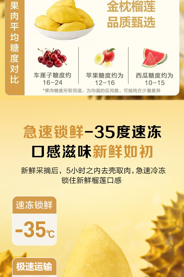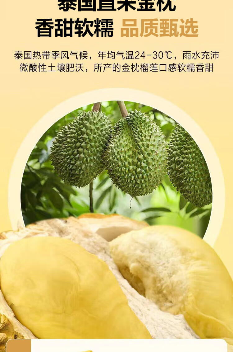 【鲜冻泰国金枕】榴莲肉金枕新鲜冷冻枕头果肉树熟泰国果肉水果 金枕榴莲果肉1000g【净重500g*2】