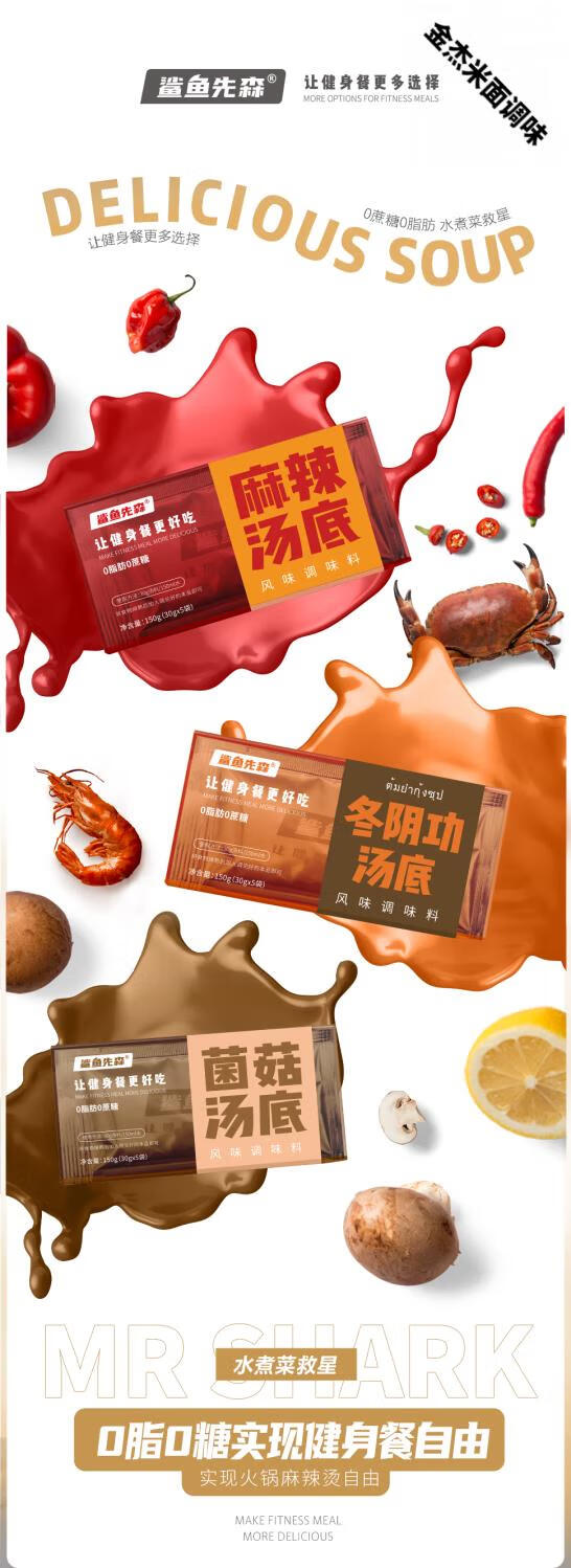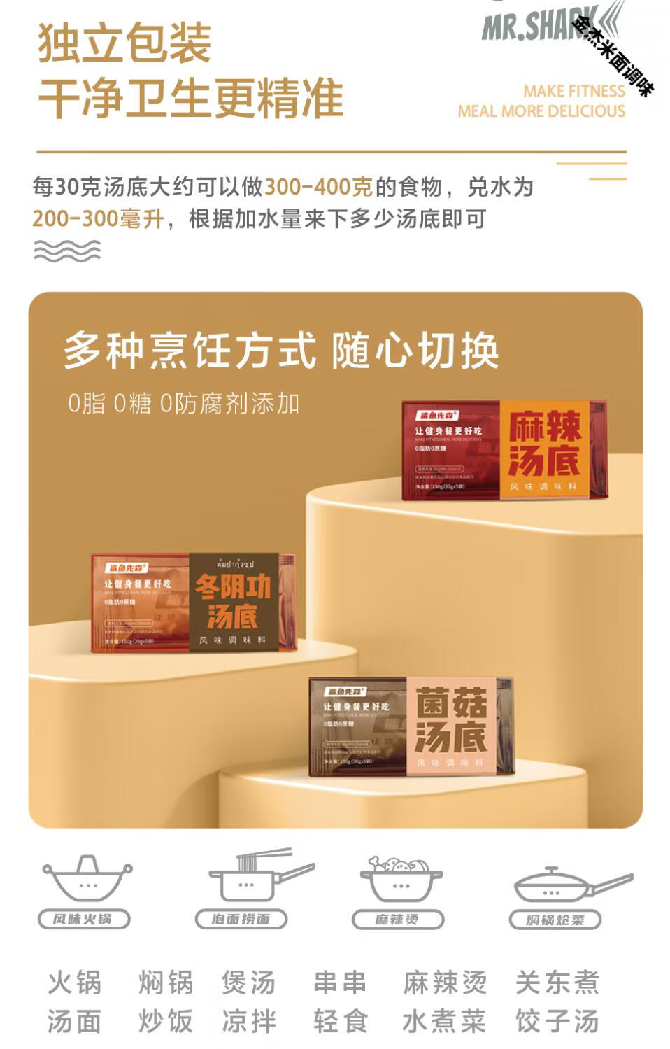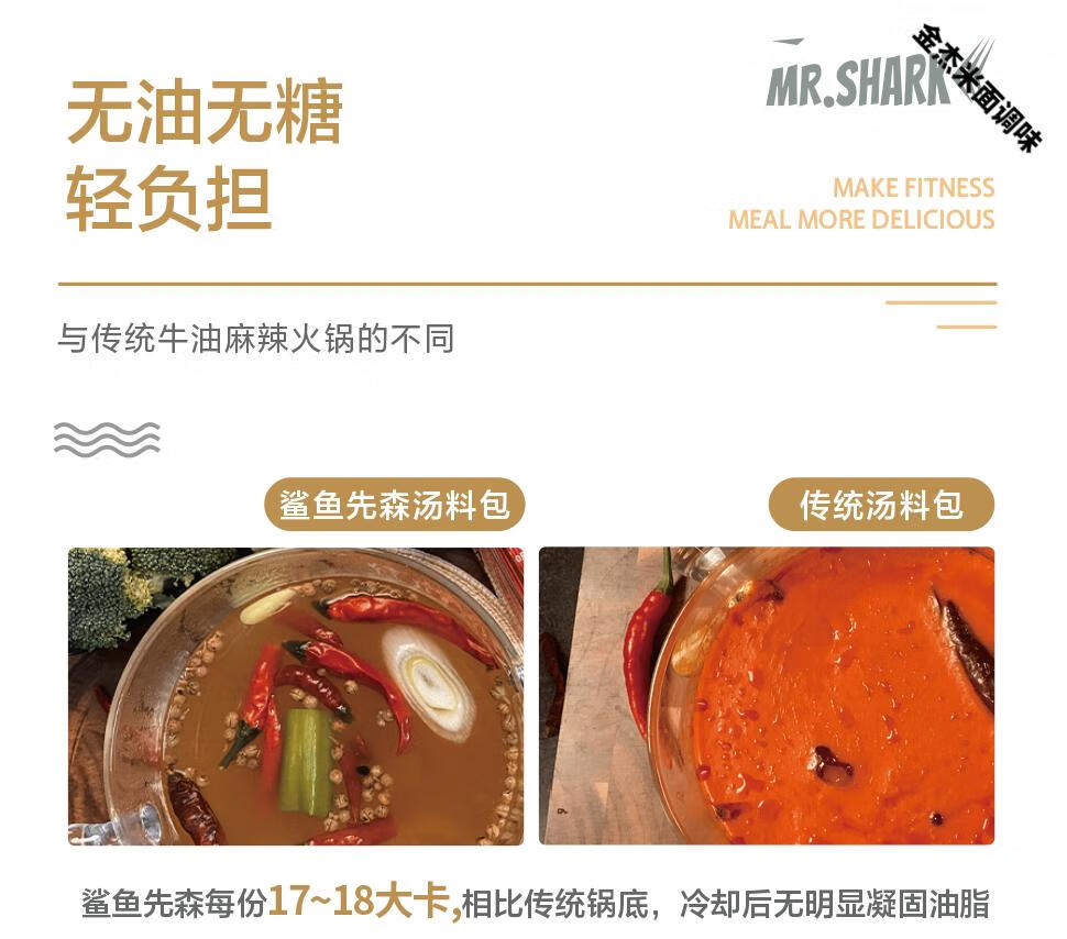 望蓝川品质鲨鱼先森0脂肪0糖水煮菜汤底微波炉专用麻辣烫底料低脂 1盒麻辣5包