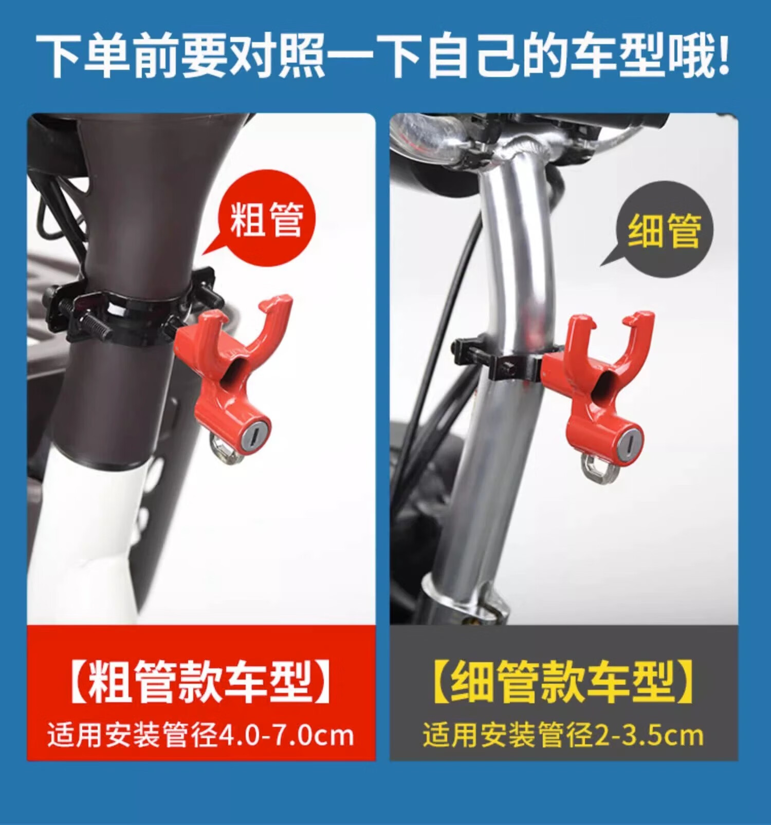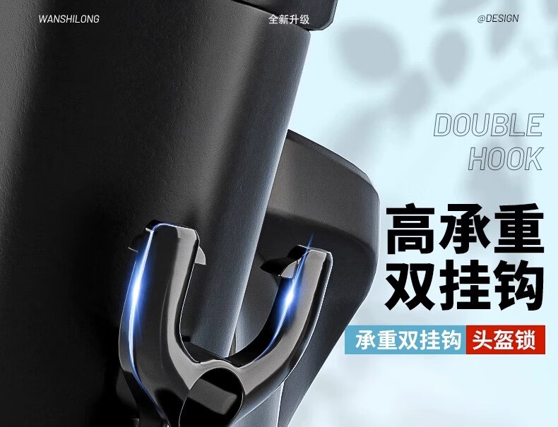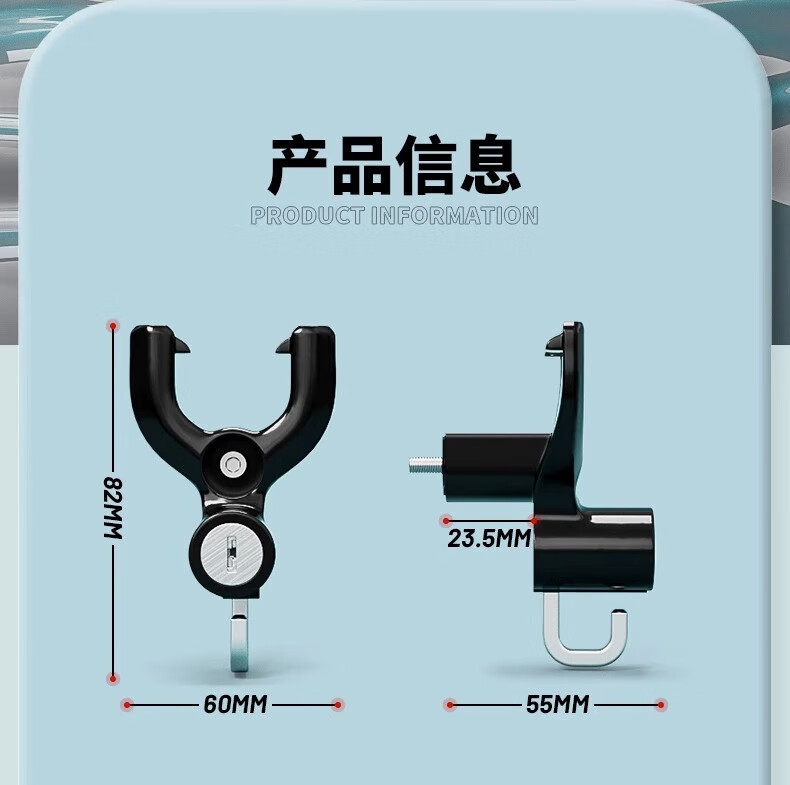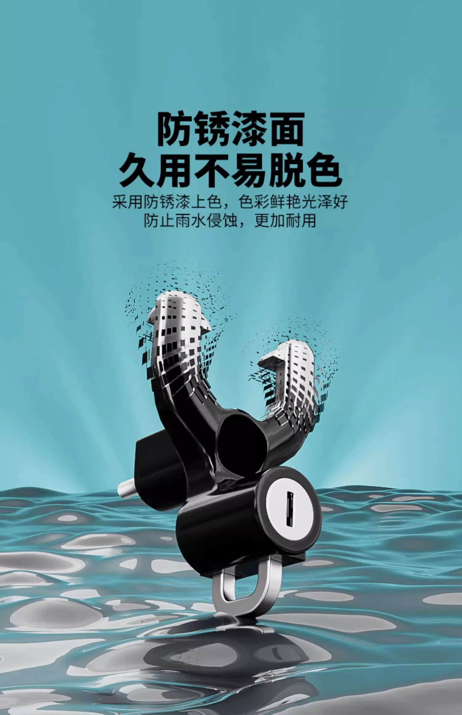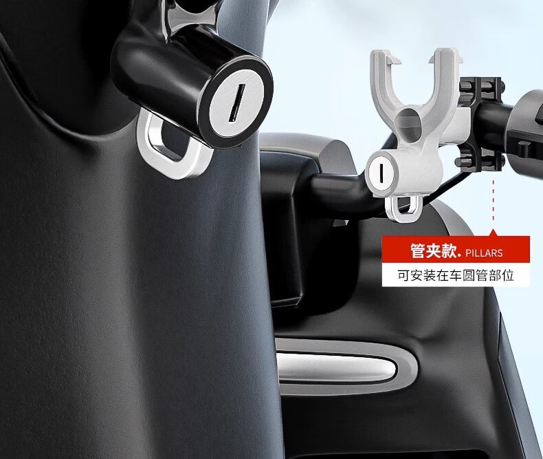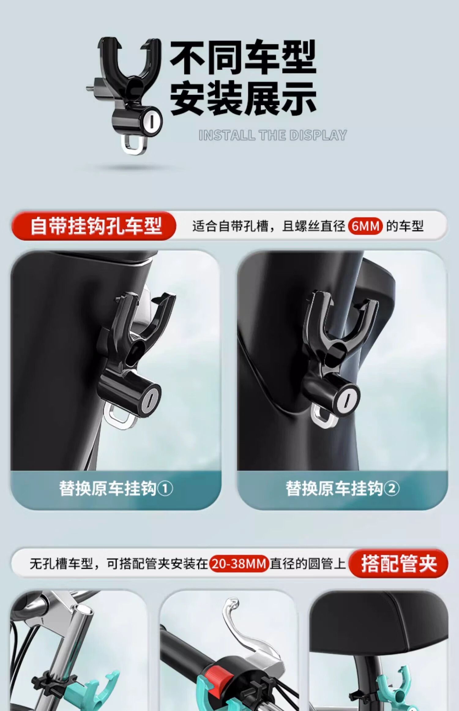 酷改(Coolchange)电动车挂钩前置通用免打孔摩托车防盗钩子电瓶自行车头盔锁挂物钩 双挂钩头盔锁【黑色】+管夹+工具