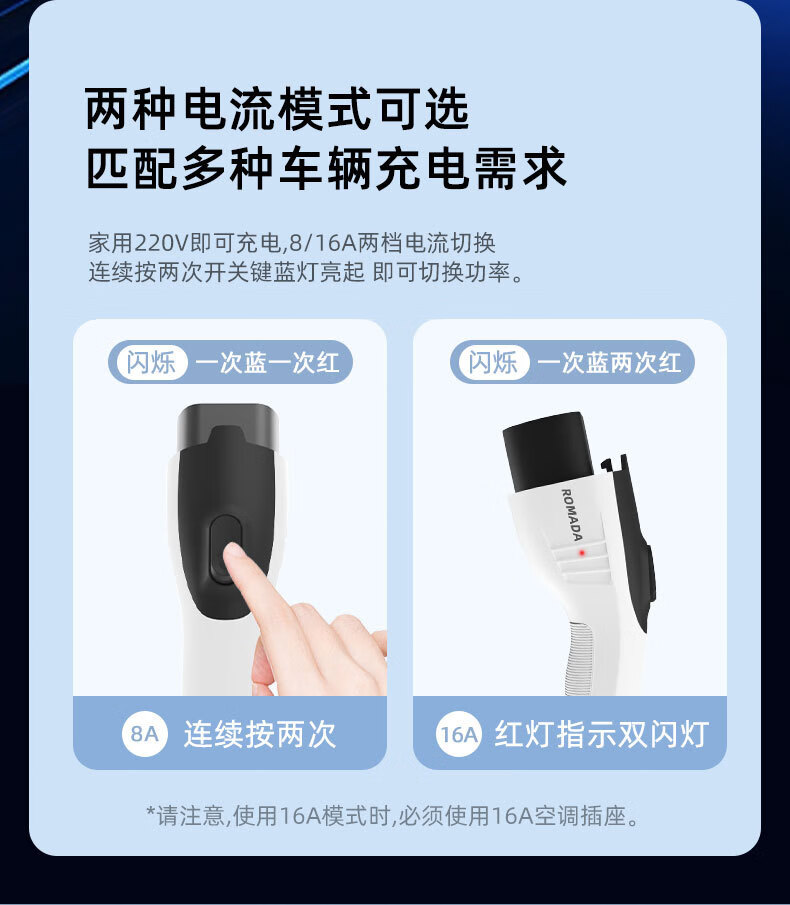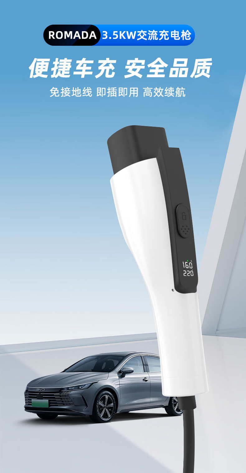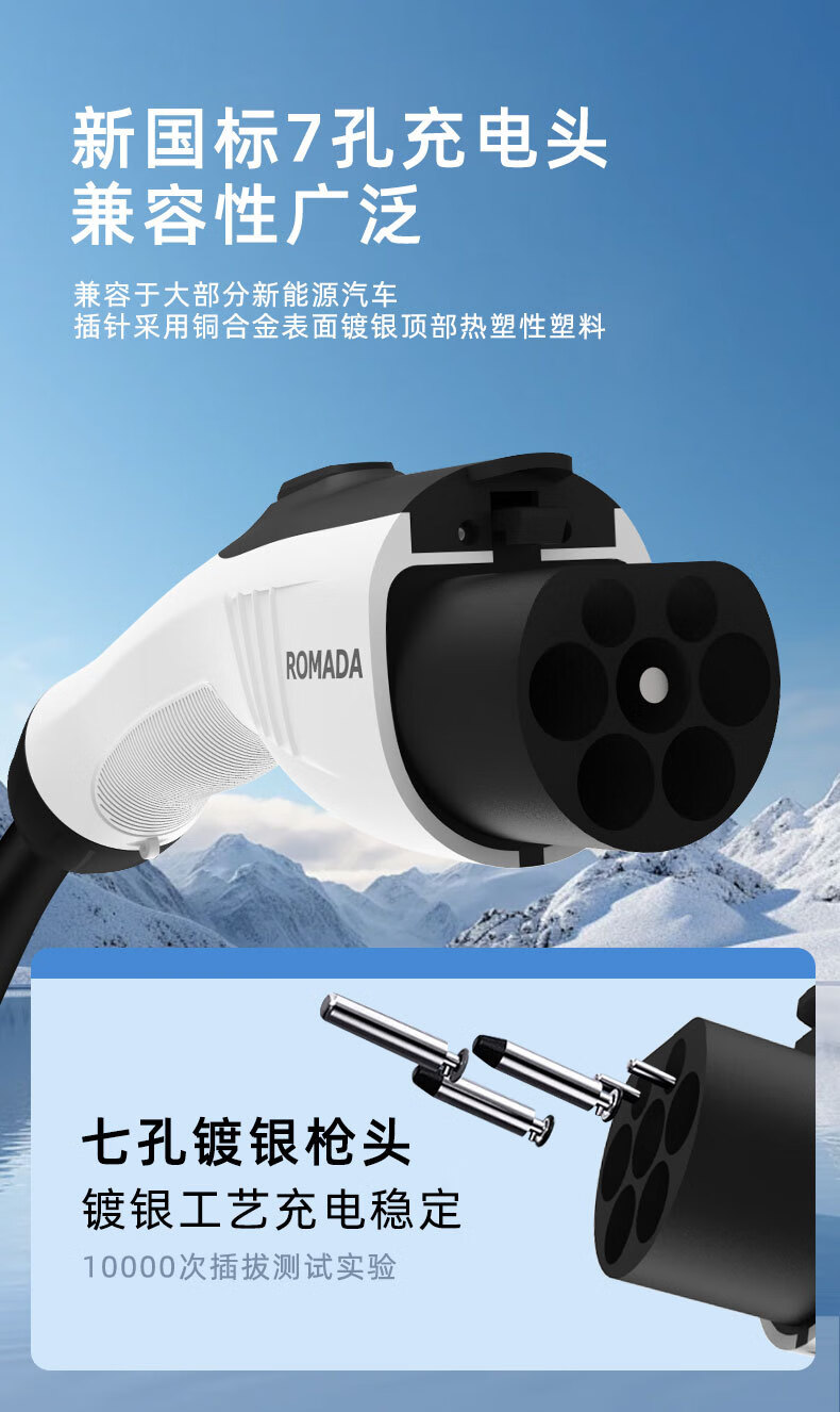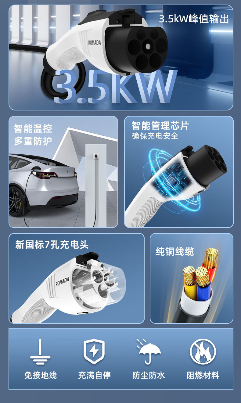 ROMADA东风ex1充电枪纳米box充电器风行S50EV风神E70/L7新能源随车充 16A便携充电枪3.5KW/3米+转换插头
