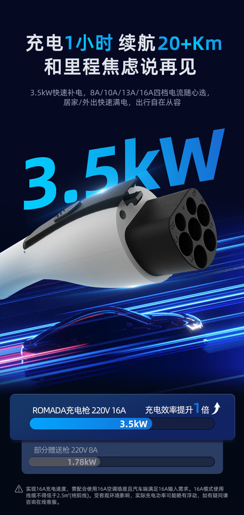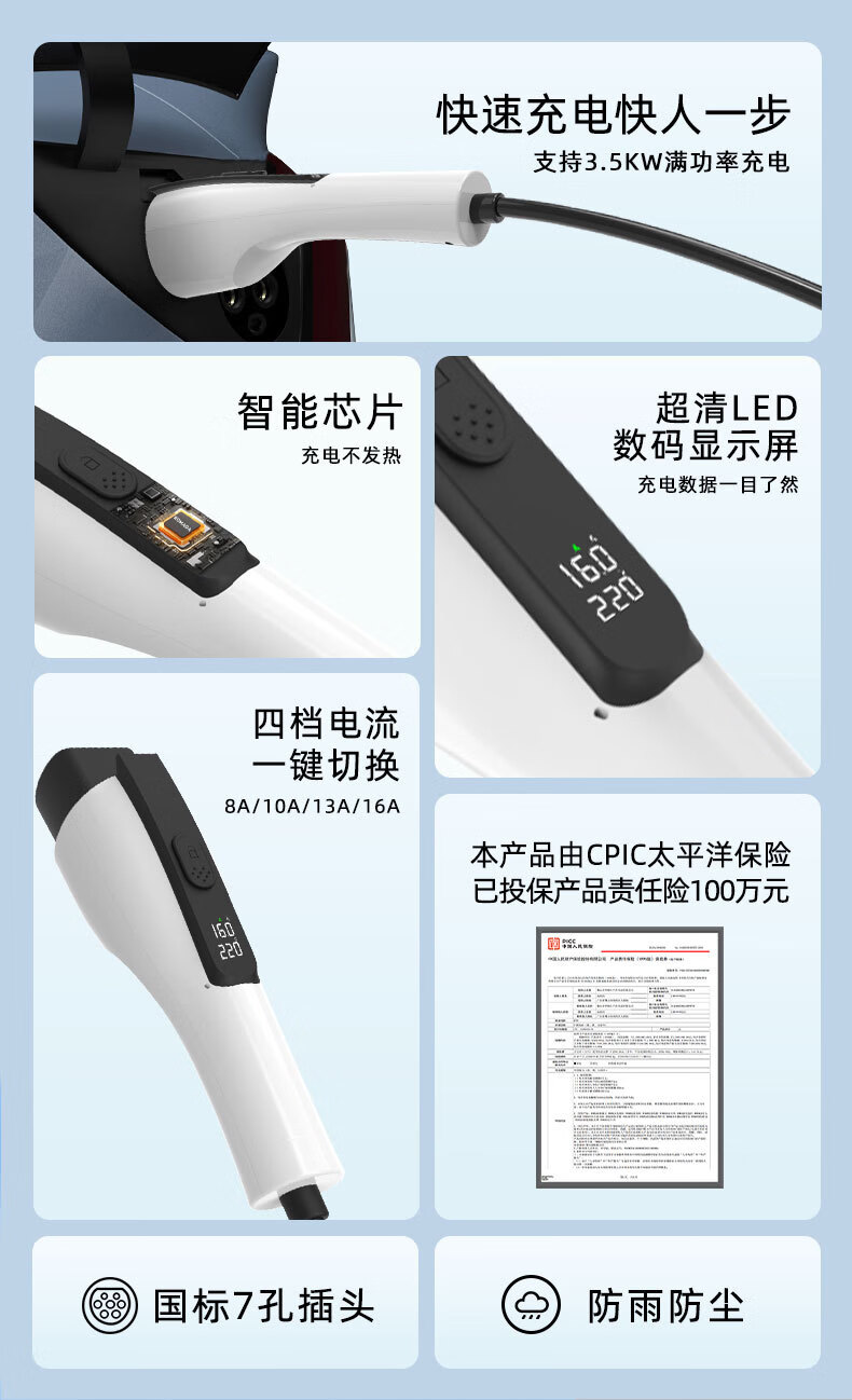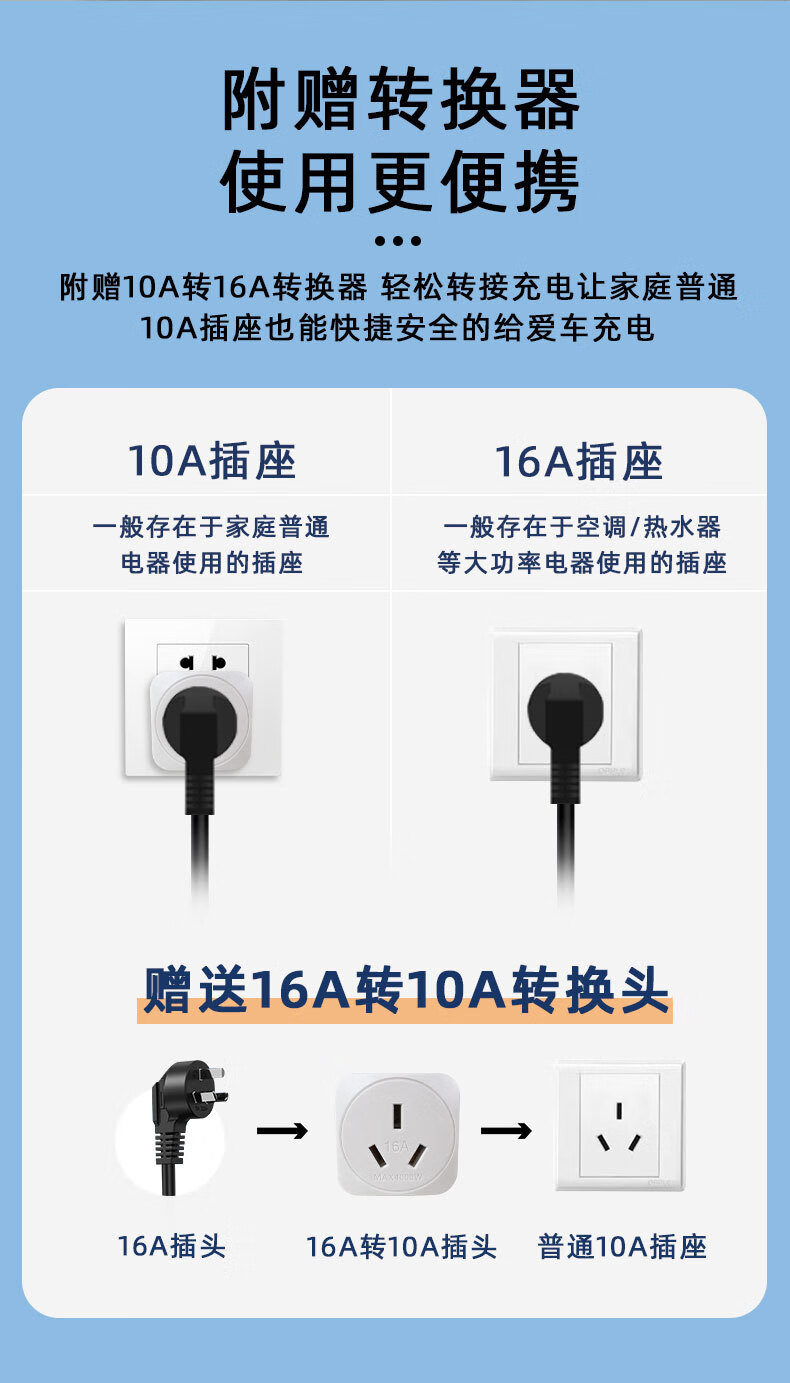 ROMADA东风ex1充电枪纳米box充电器风行S50EV风神E70/L7新能源随车充 16A便携充电枪3.5KW/3米+转换插头