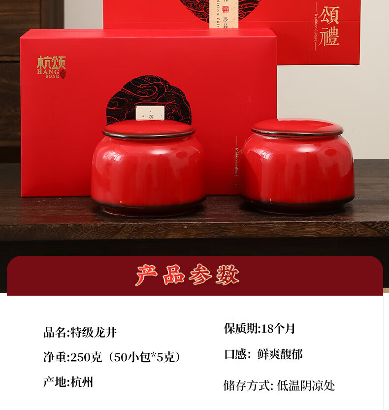 杭颂2025新茶绿茶龙井茶豆香特级250g明前茶叶礼盒送年货礼盒送礼
