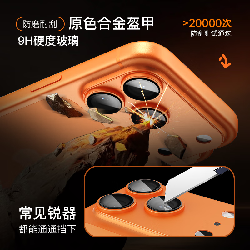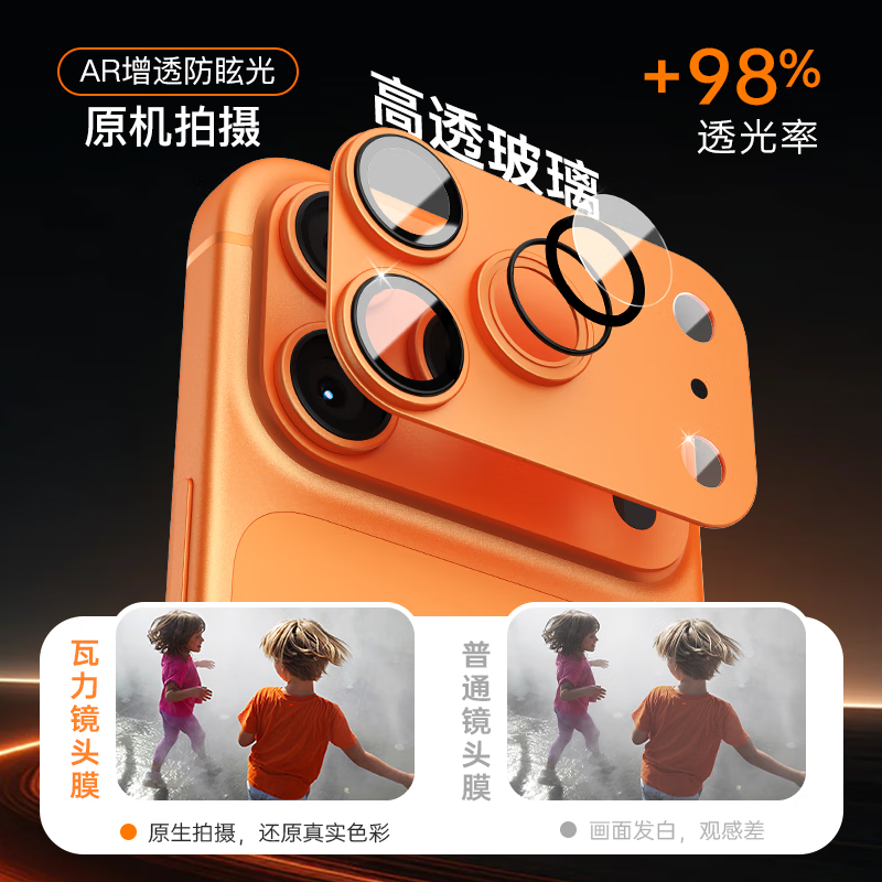 瓦力【AR增透丨镜头全包】适用苹果17pro镜头膜iPhone17Pro后置摄像头保护膜背屏一体全包金属星宇橙