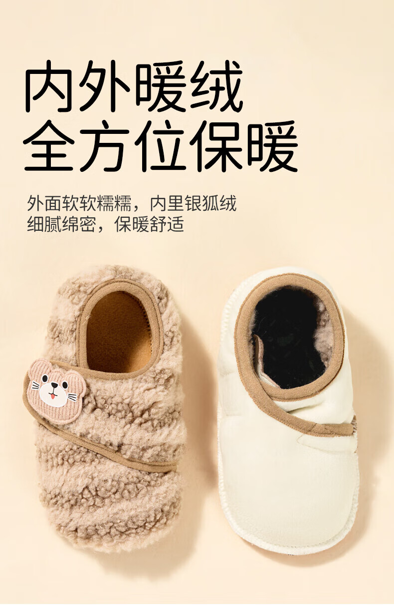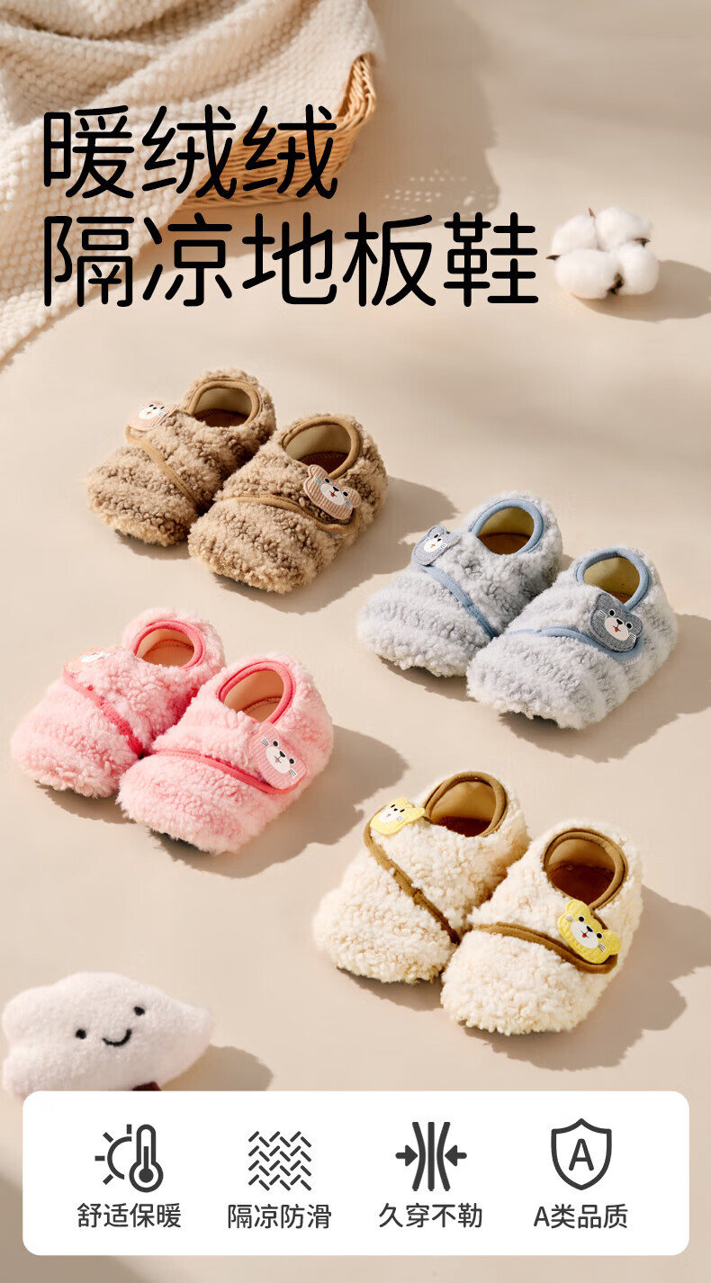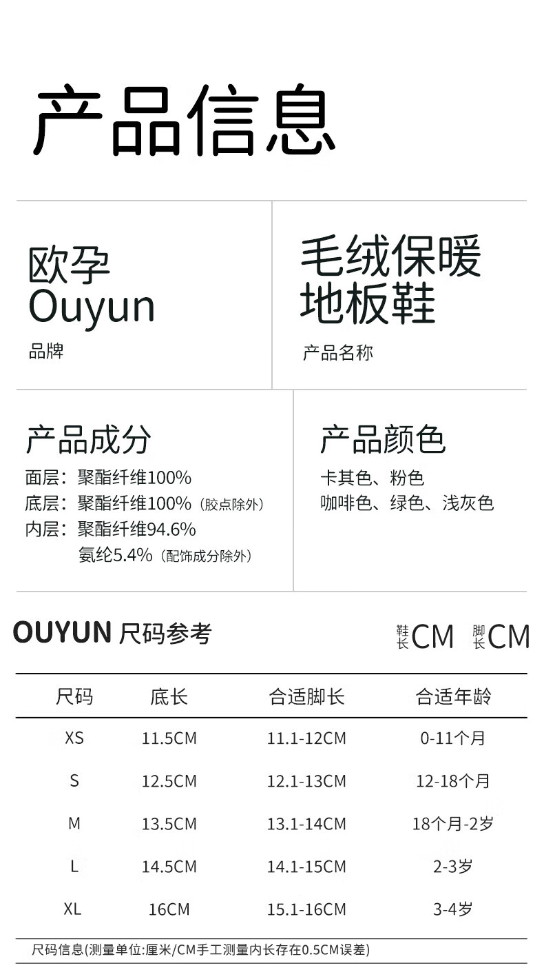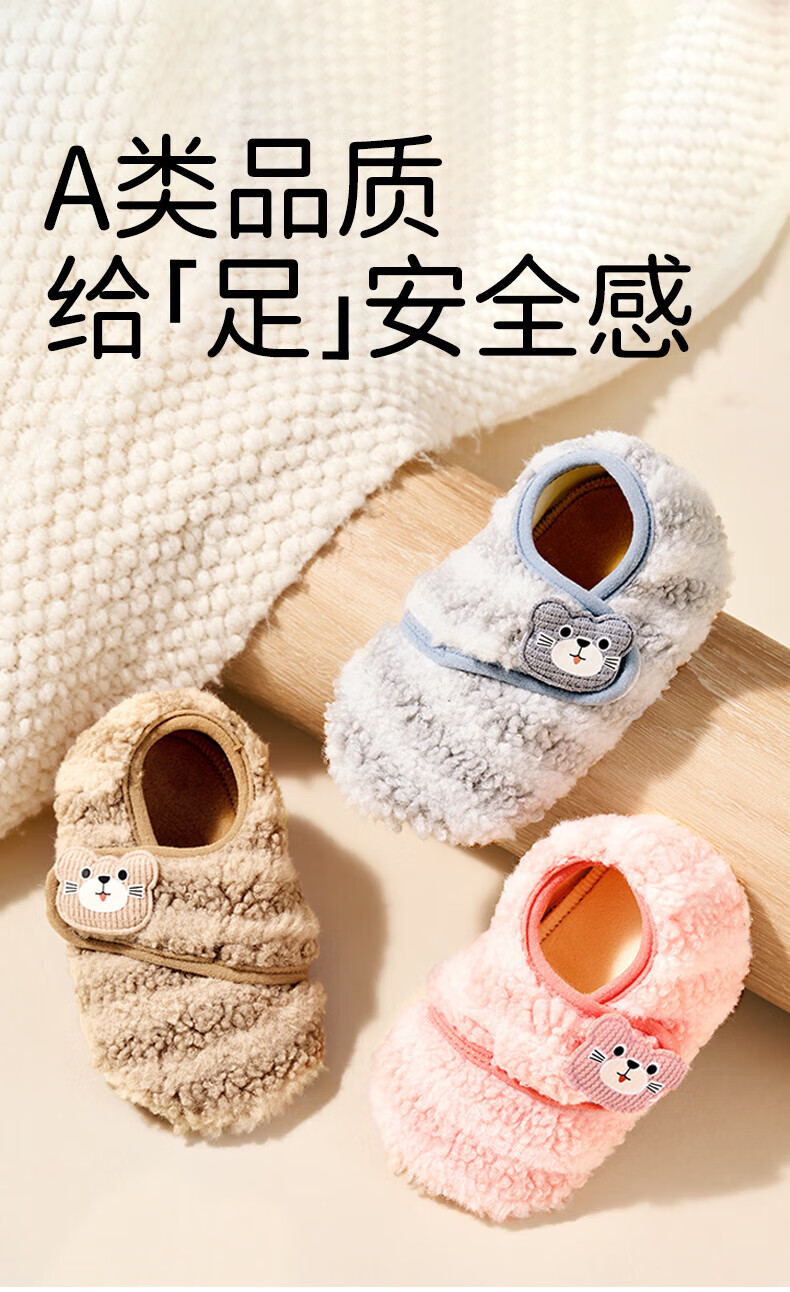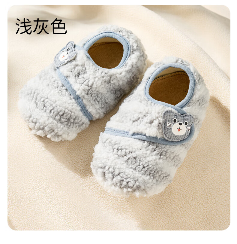 欧孕(OUYUN)宝宝鞋袜秋冬婴儿鞋6到12个月软底防滑步前鞋室内居家地板鞋 浅灰色 12 S 脚长12.1-13cm推荐12-18月