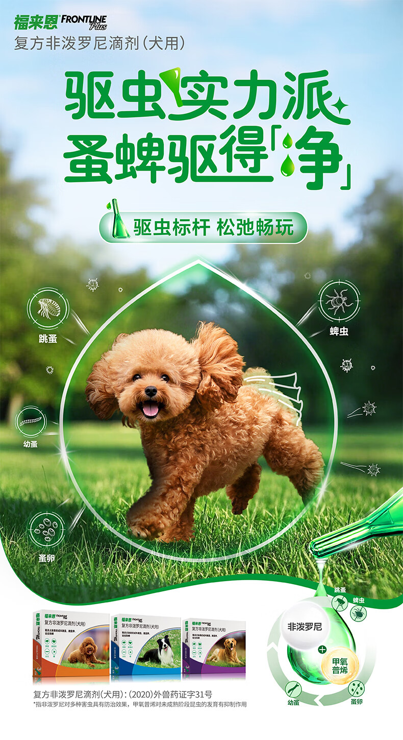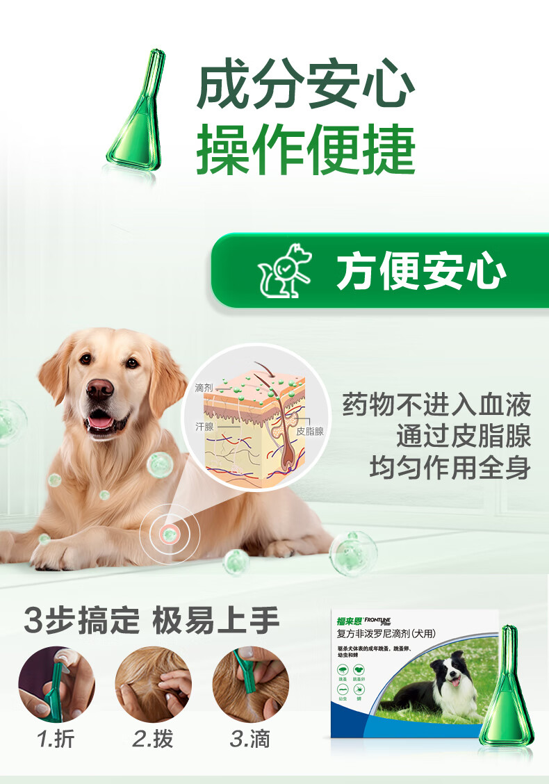 福来恩(FRONTLINE)狗狗进口驱虫药 小型犬去跳蚤蜱虫滴剂 0.67ml*3支装