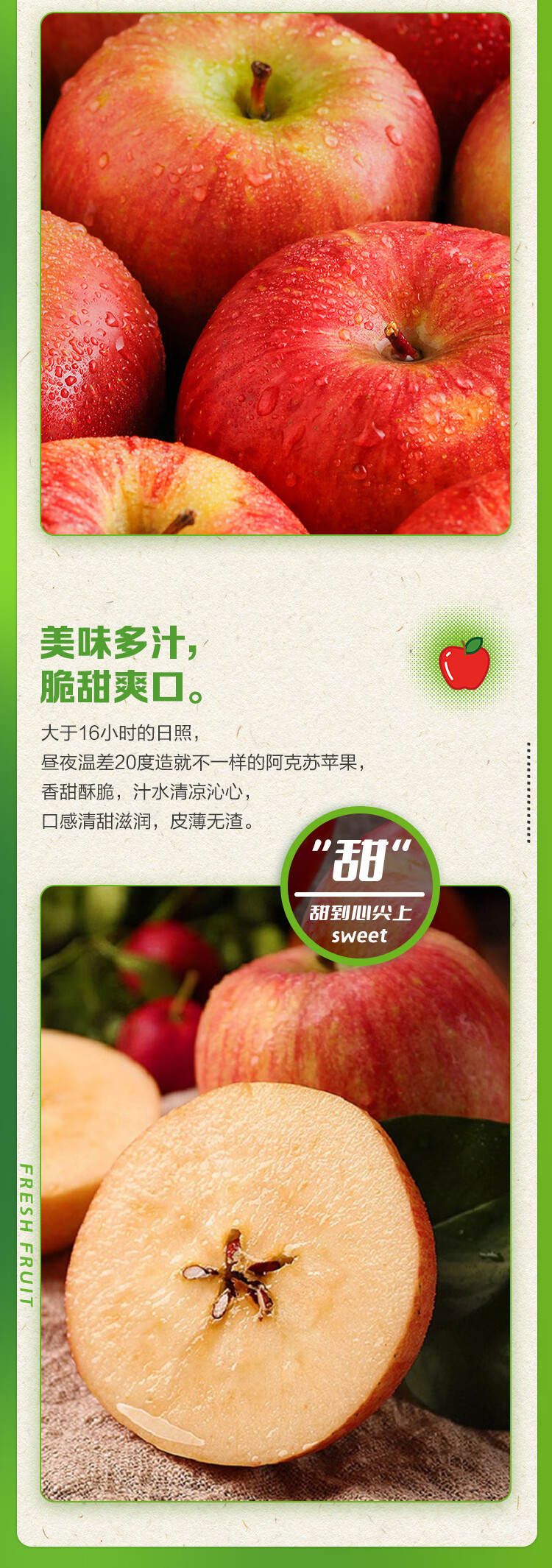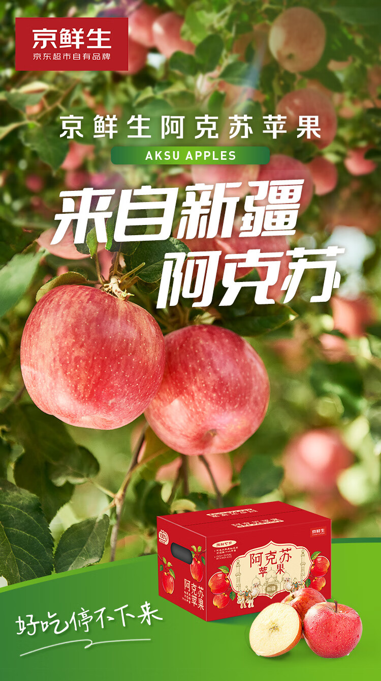 京鲜生 新疆阿克苏冰糖心苹果 净重9斤 果径75mm 新鲜水果