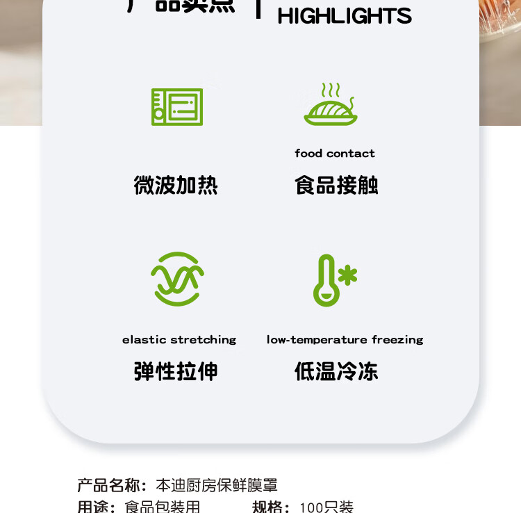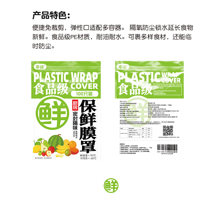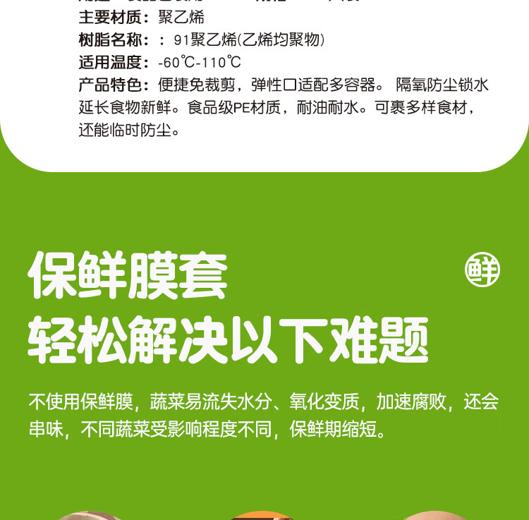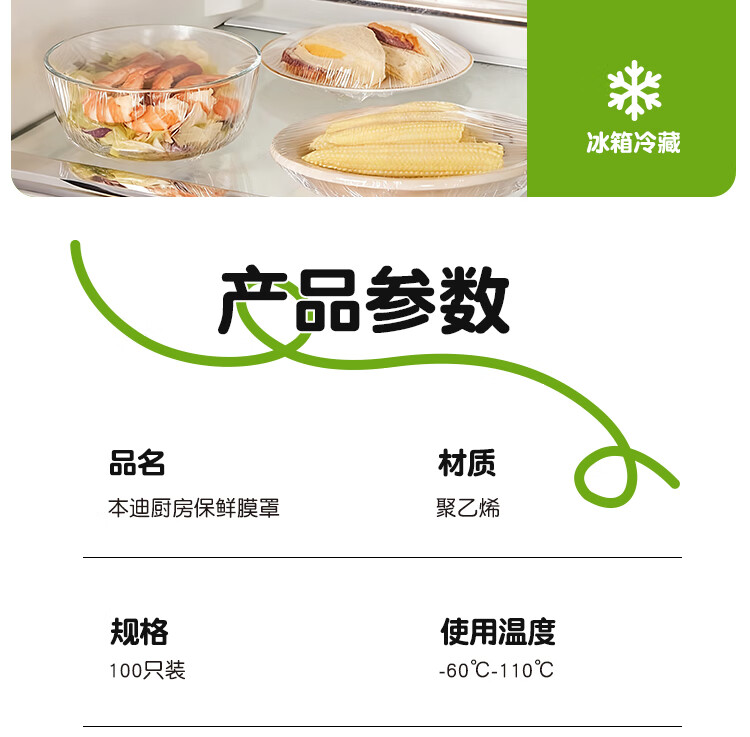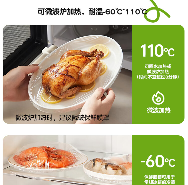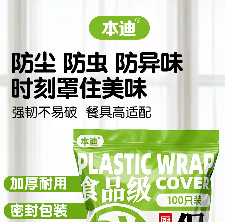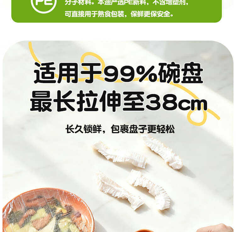 本迪食品级保鲜套-耐冷耐热食品级松紧口保鲜套-防尘防串味 一次性保鲜罩200只装