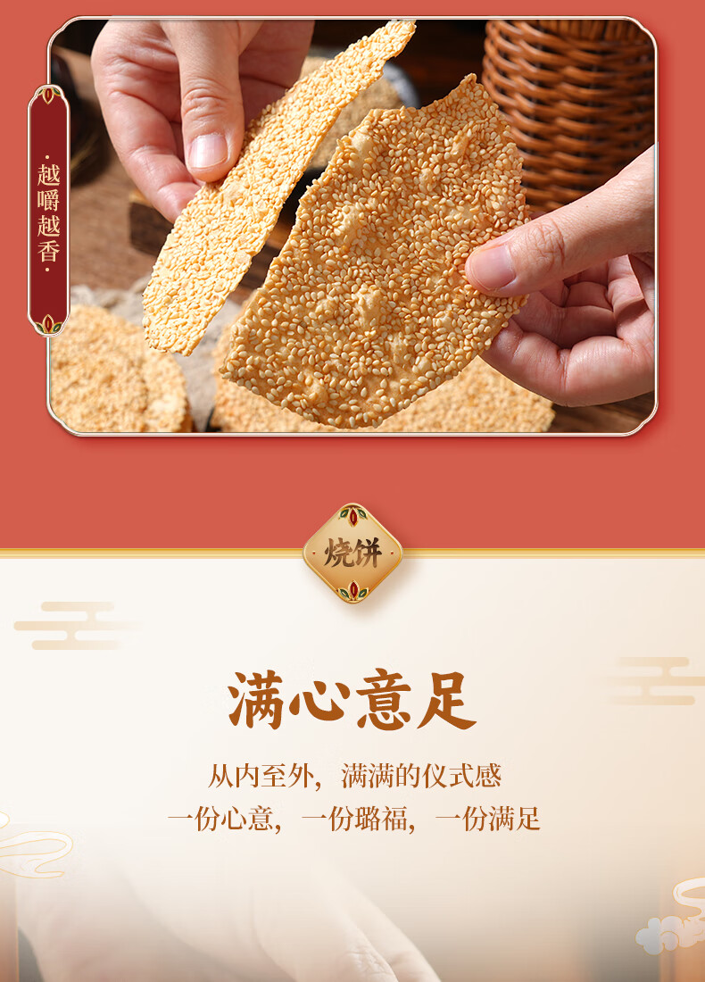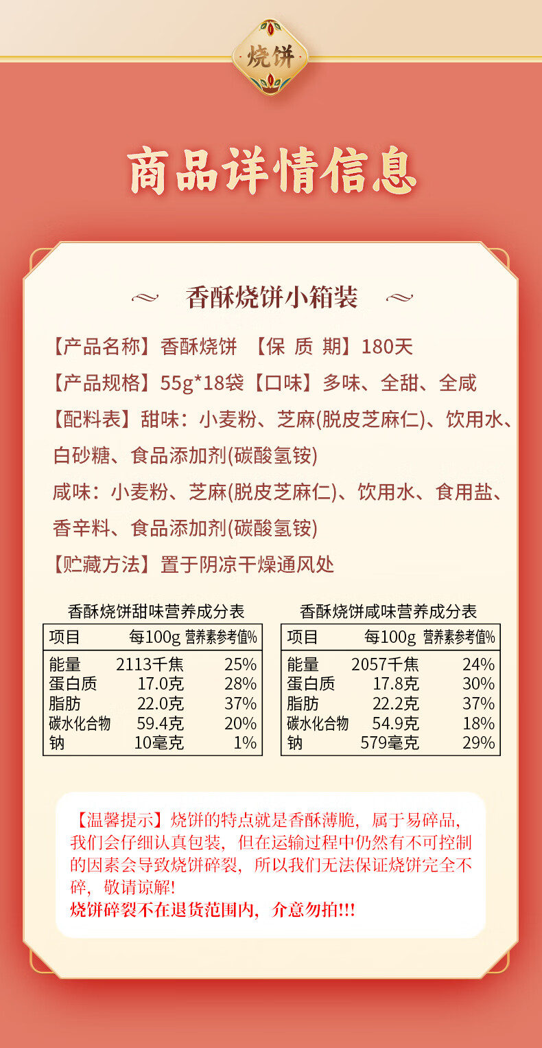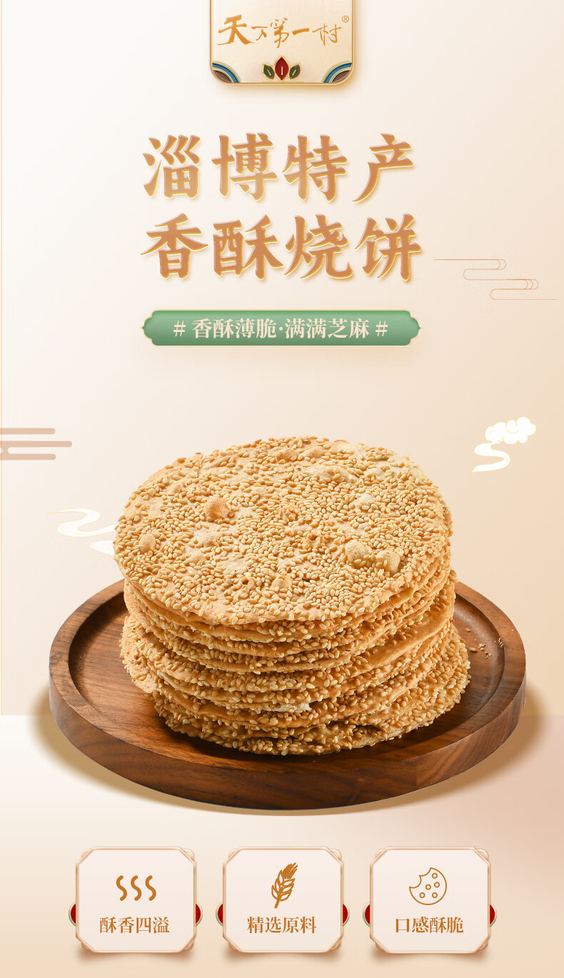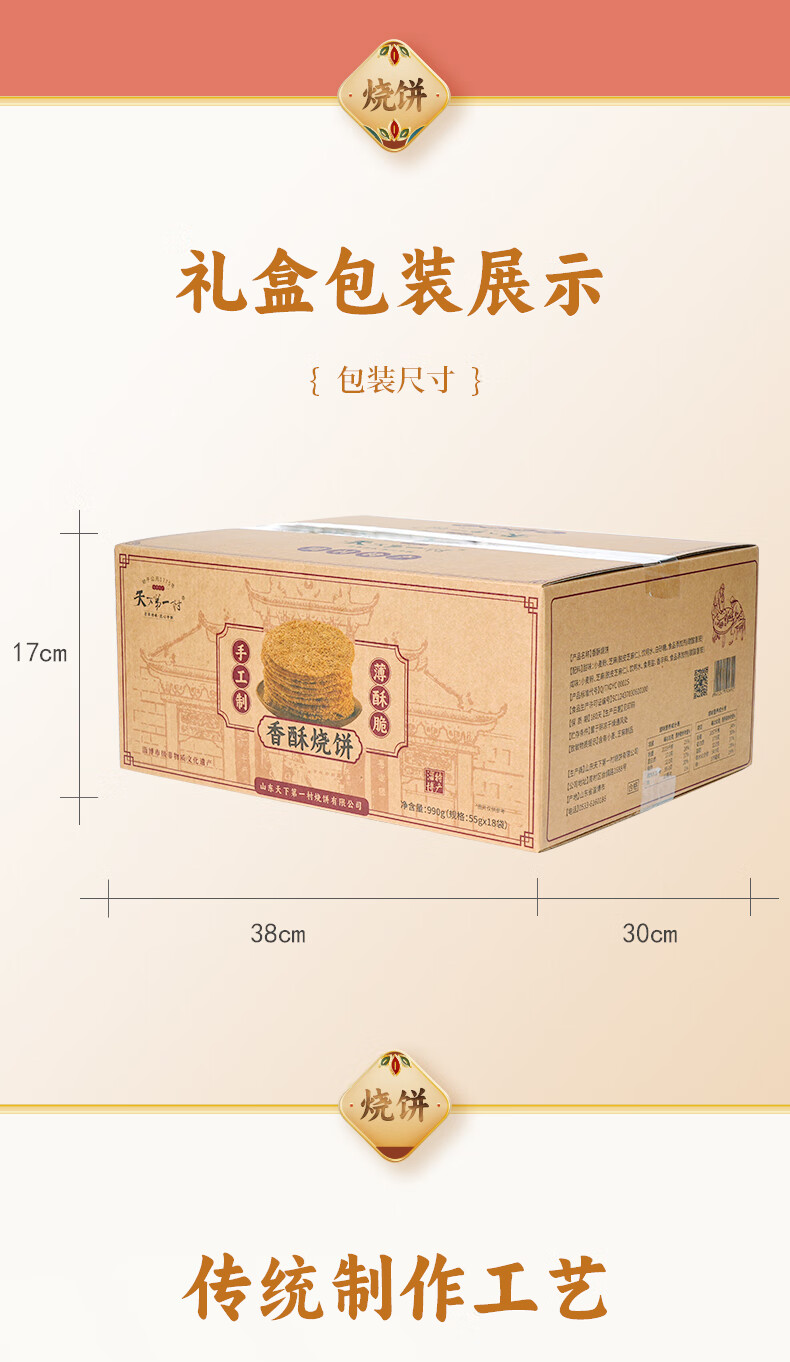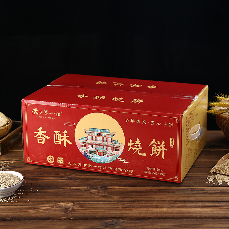 天下第一村 山东特产周村香酥烧饼芝麻饼实惠简箱装55GX18袋甜咸味年货礼箱 55gX18袋全咸小箱【牛皮纸礼箱】