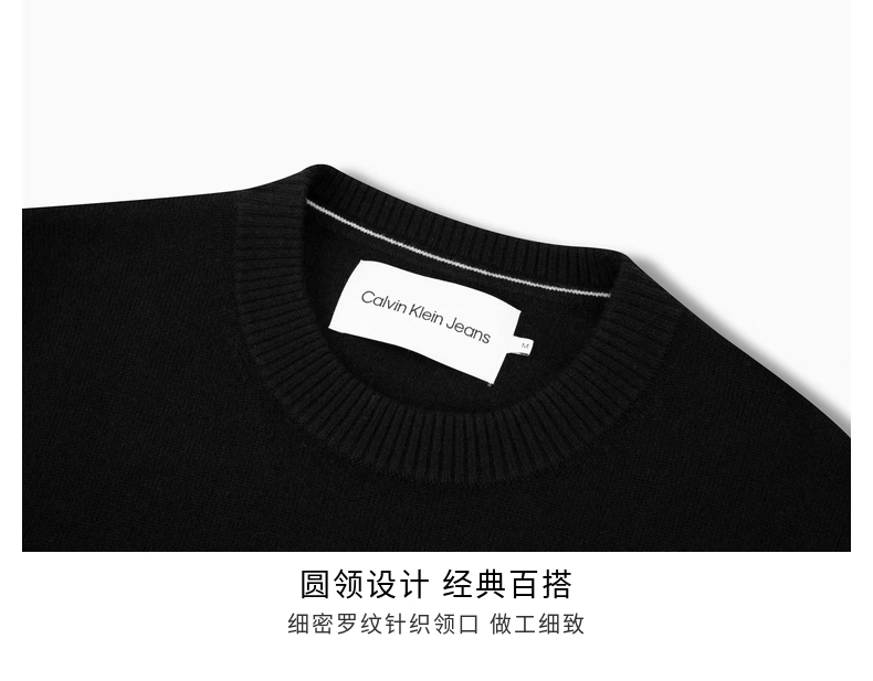 Calvin Klein Jeans秋冬男士净色商务通勤舒适圆领打底衫针织衫毛衣J324492