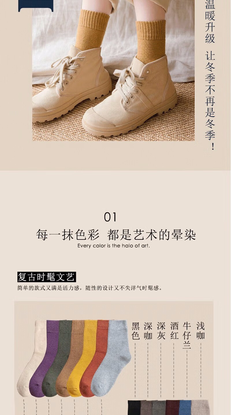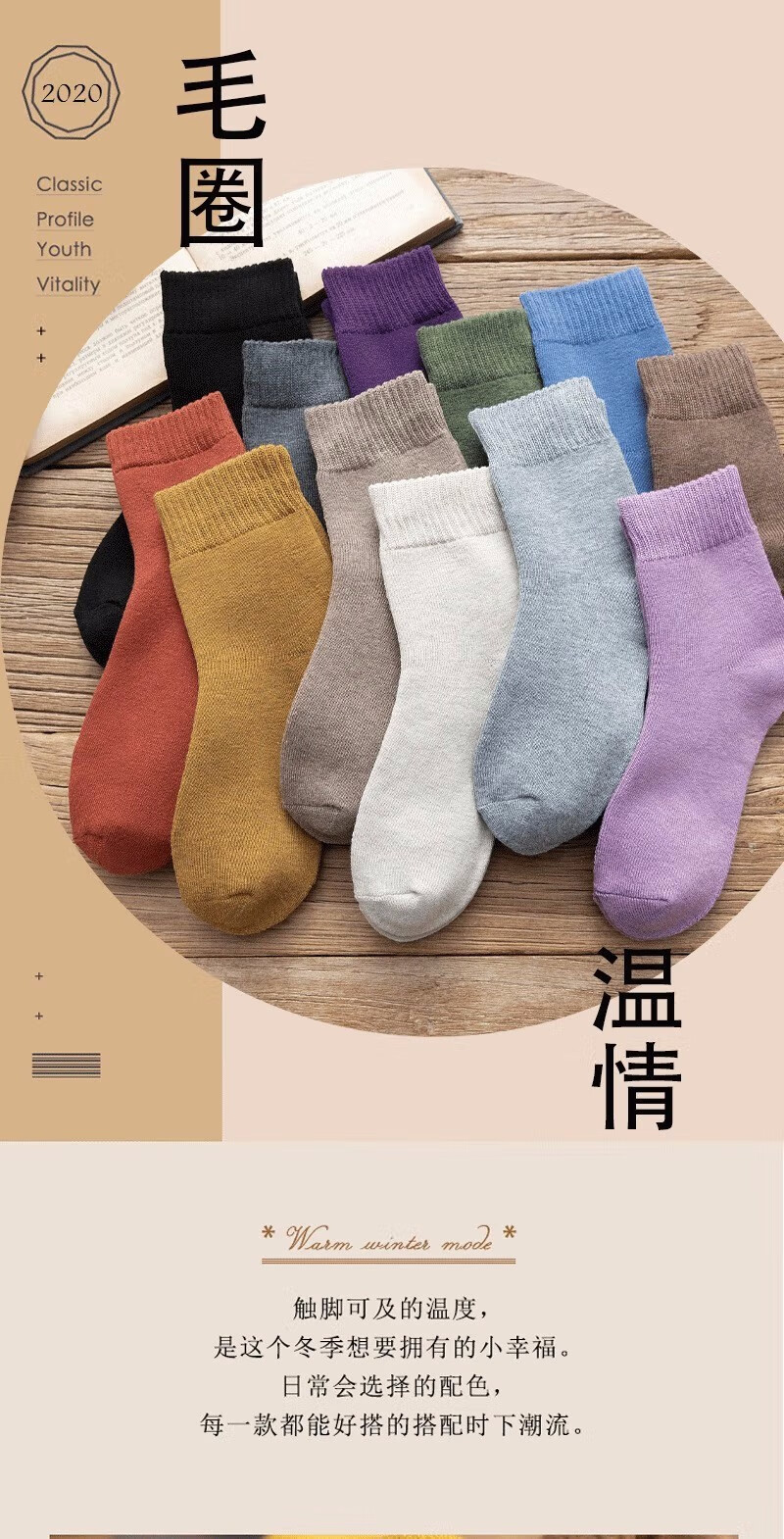 莫代尔袜子女士袜子舒适卡通学生袜潮袜 女毛圈袜随机颜色 5双 均码 35-42码