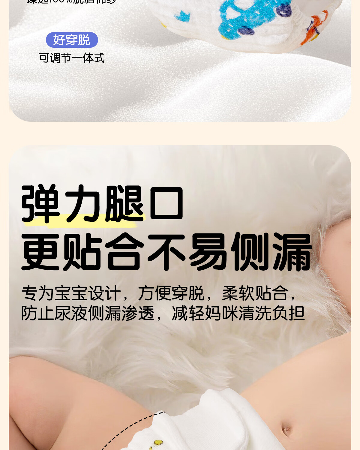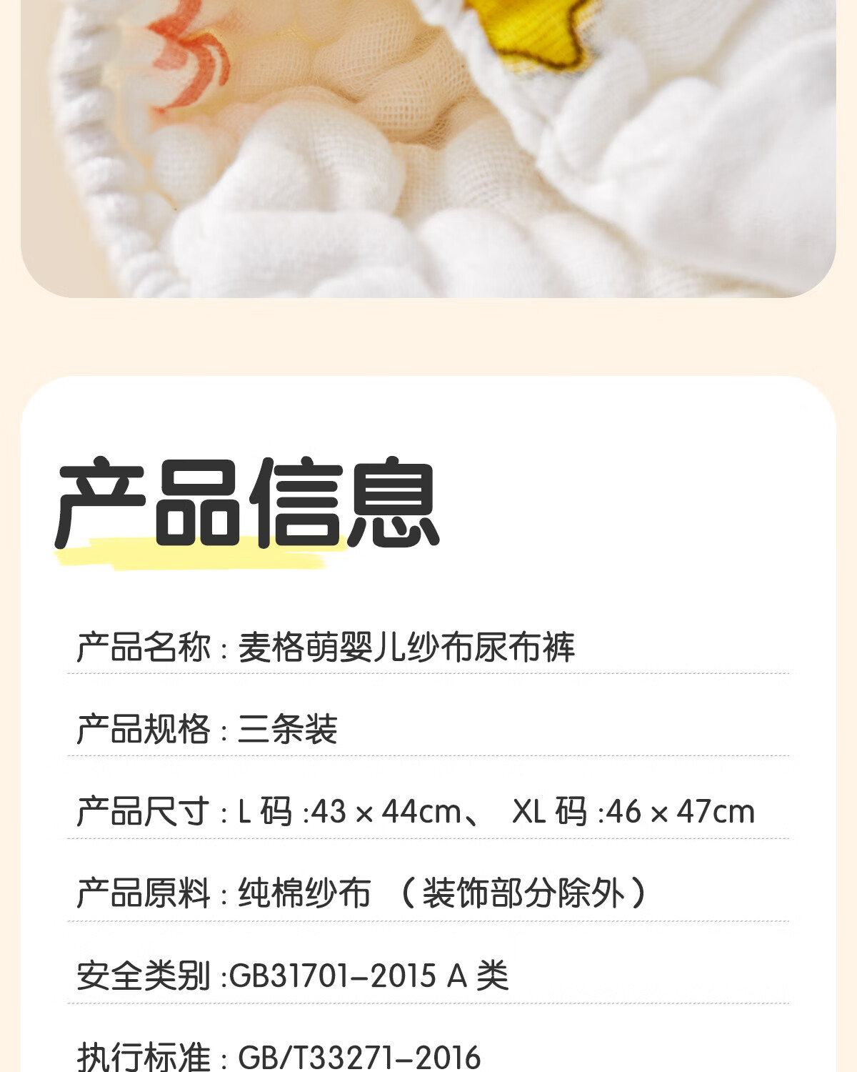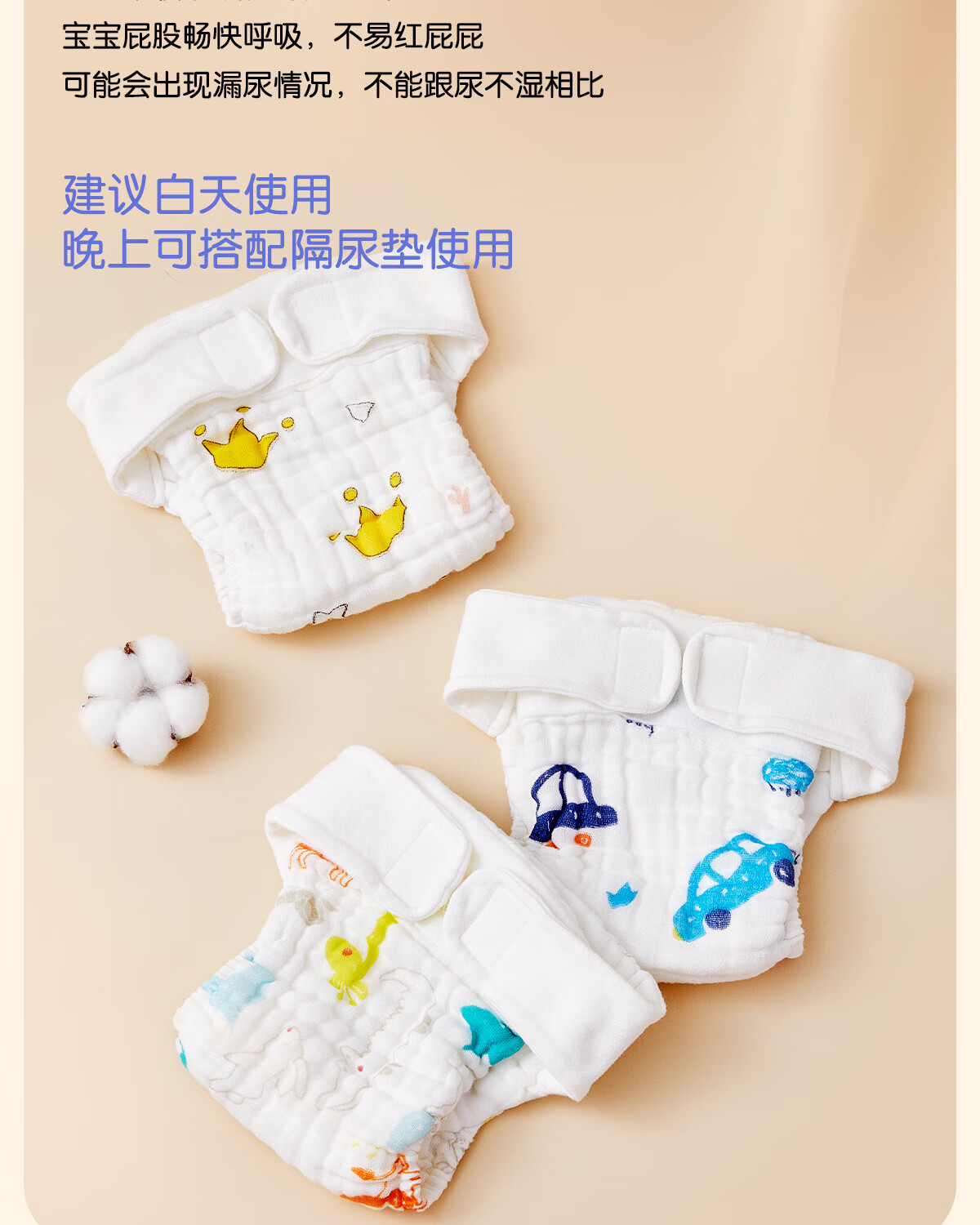 麦格萌婴儿尿布裤兜纯棉纱布一体式抑菌可水洗宝宝训练裤戒子尿片 XL码