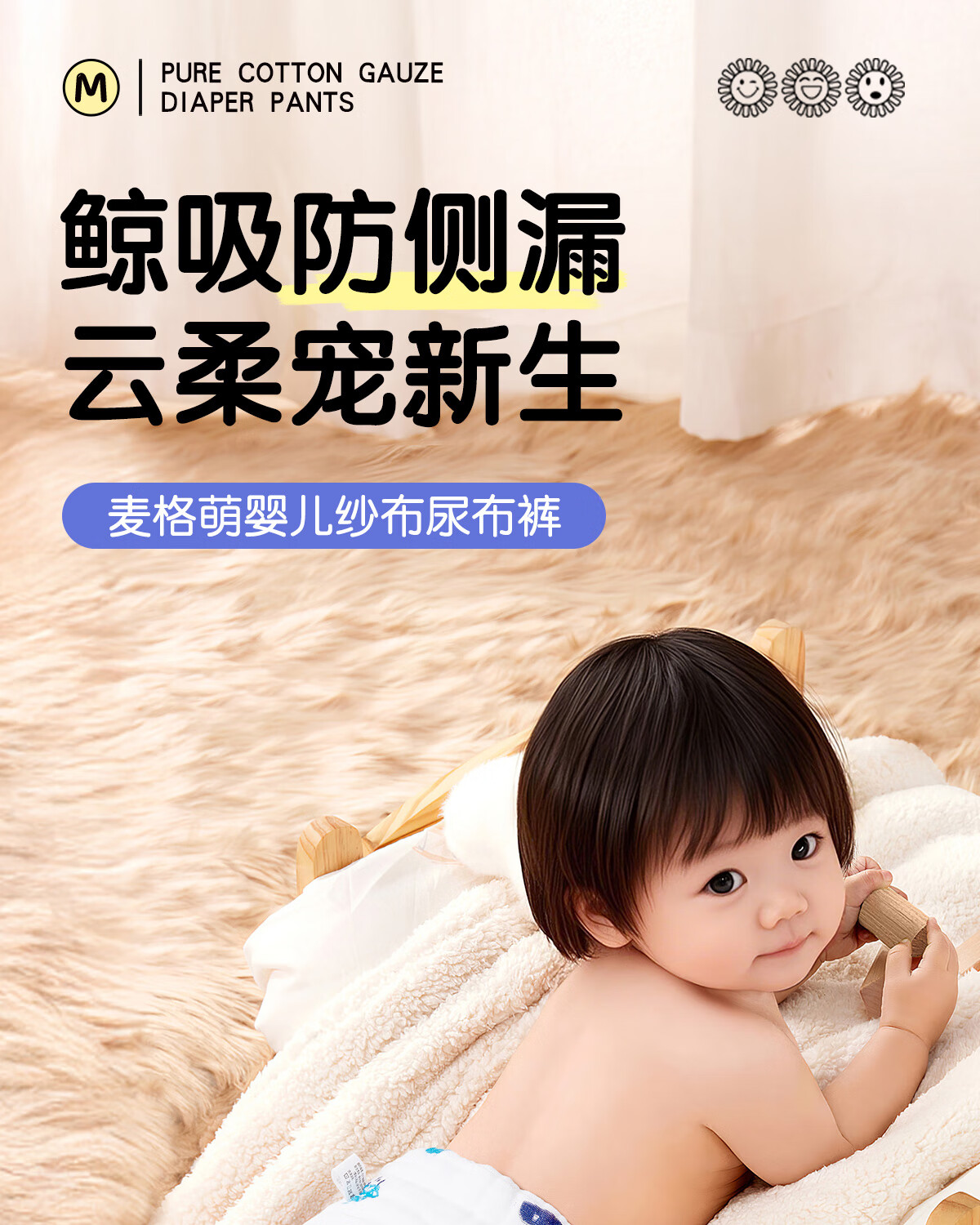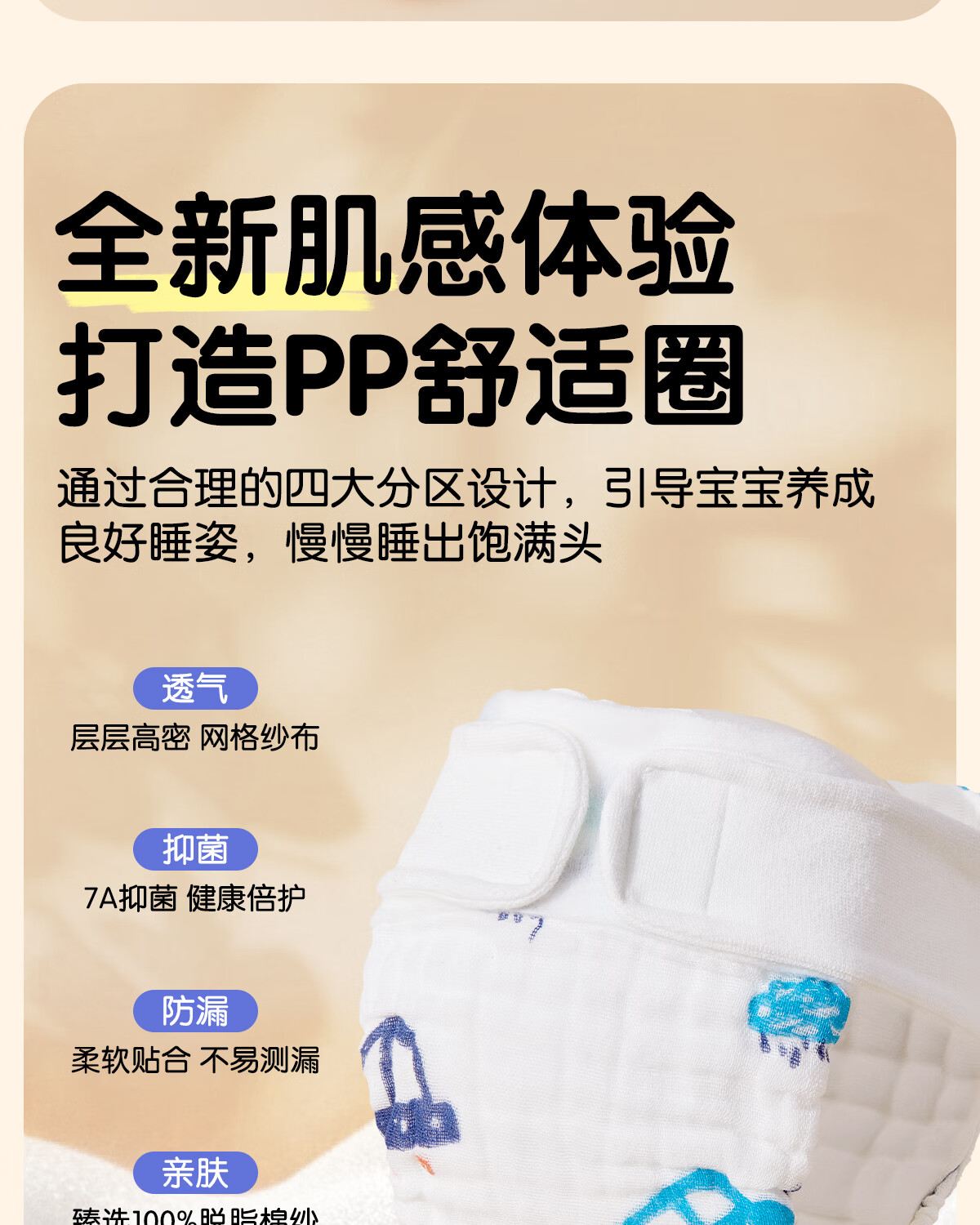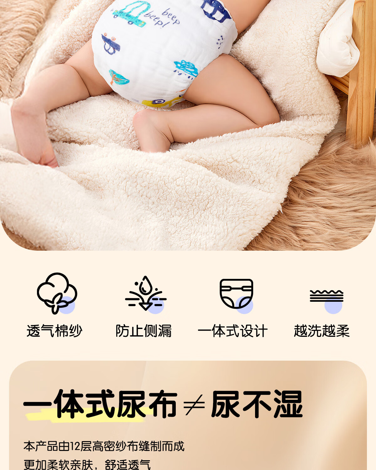 麦格萌婴儿尿布裤兜纯棉纱布一体式抑菌可水洗宝宝训练裤戒子尿片 XL码