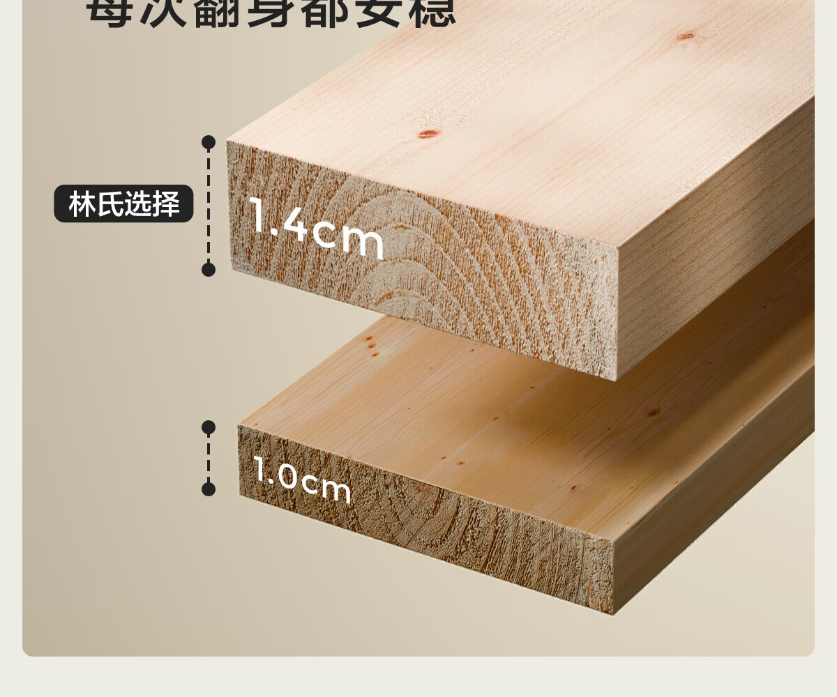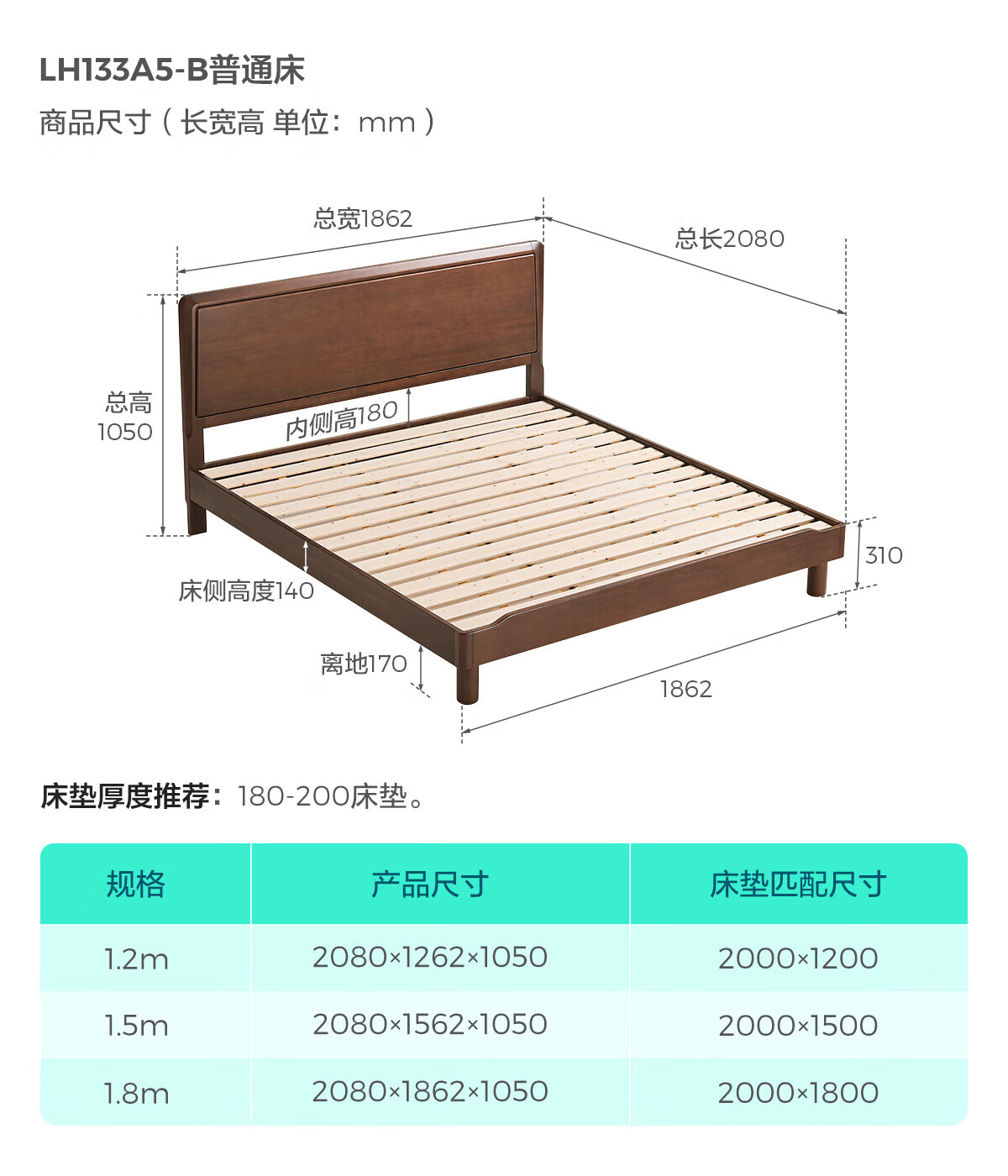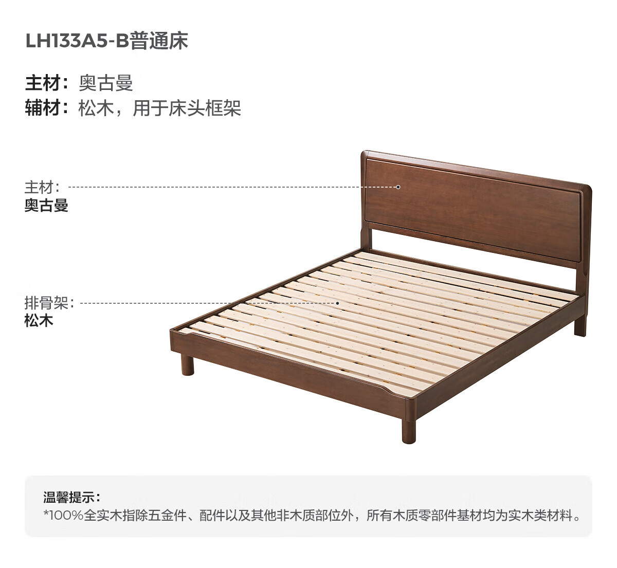 林氏家居卧室实木床1.2米单人床排骨架床架2025新款家具佛山木业LH133A5 大板实木床 1.2x2米