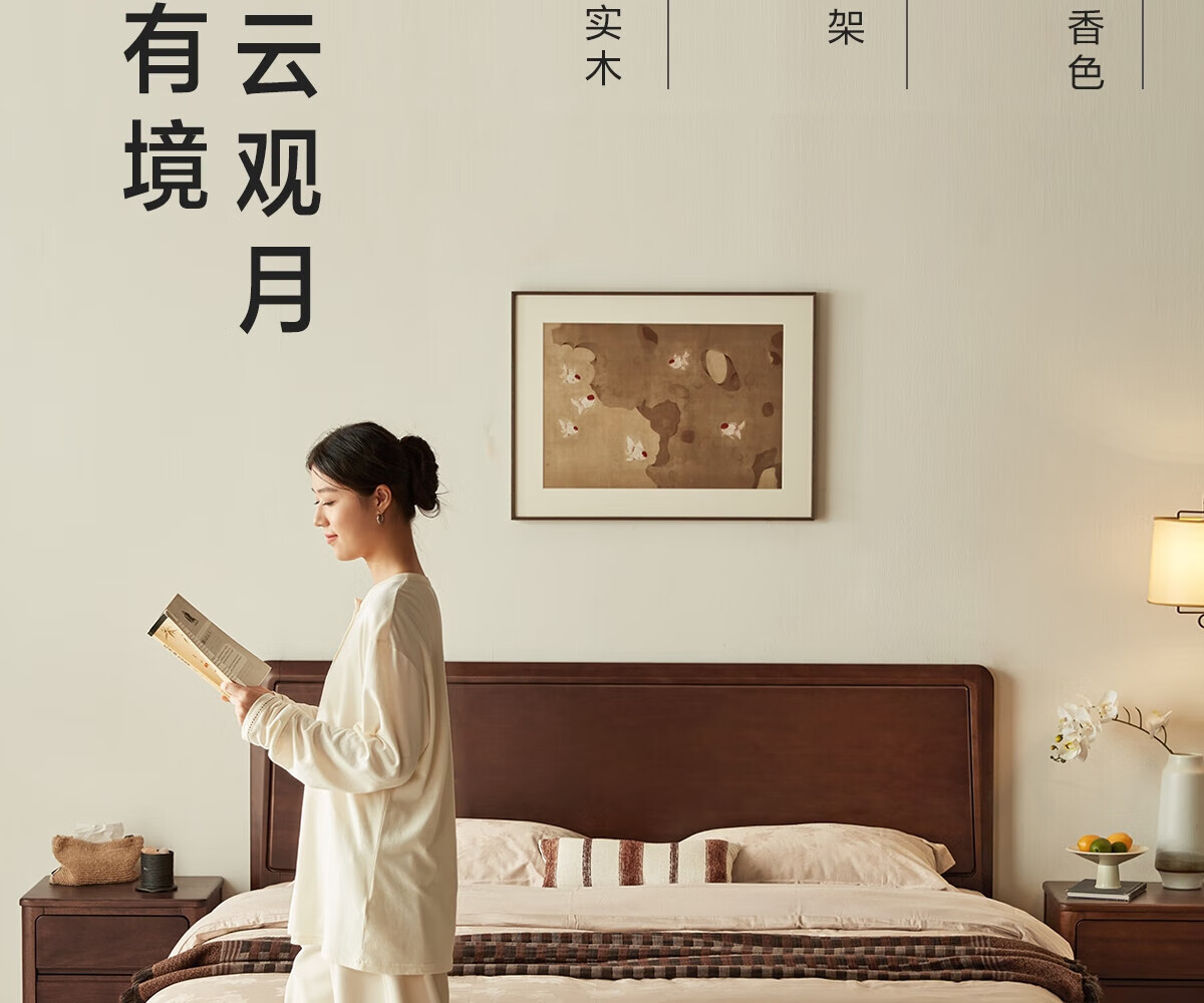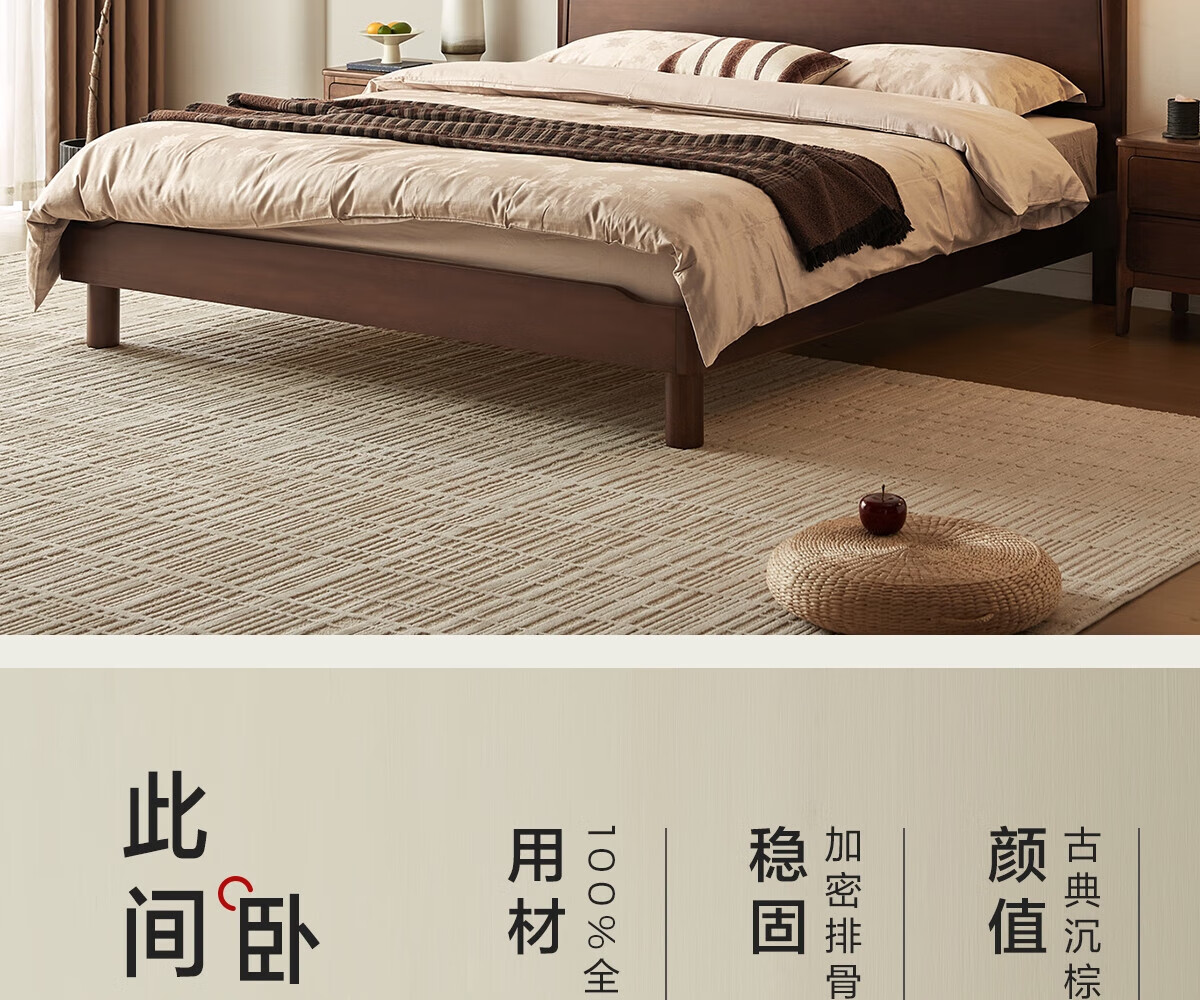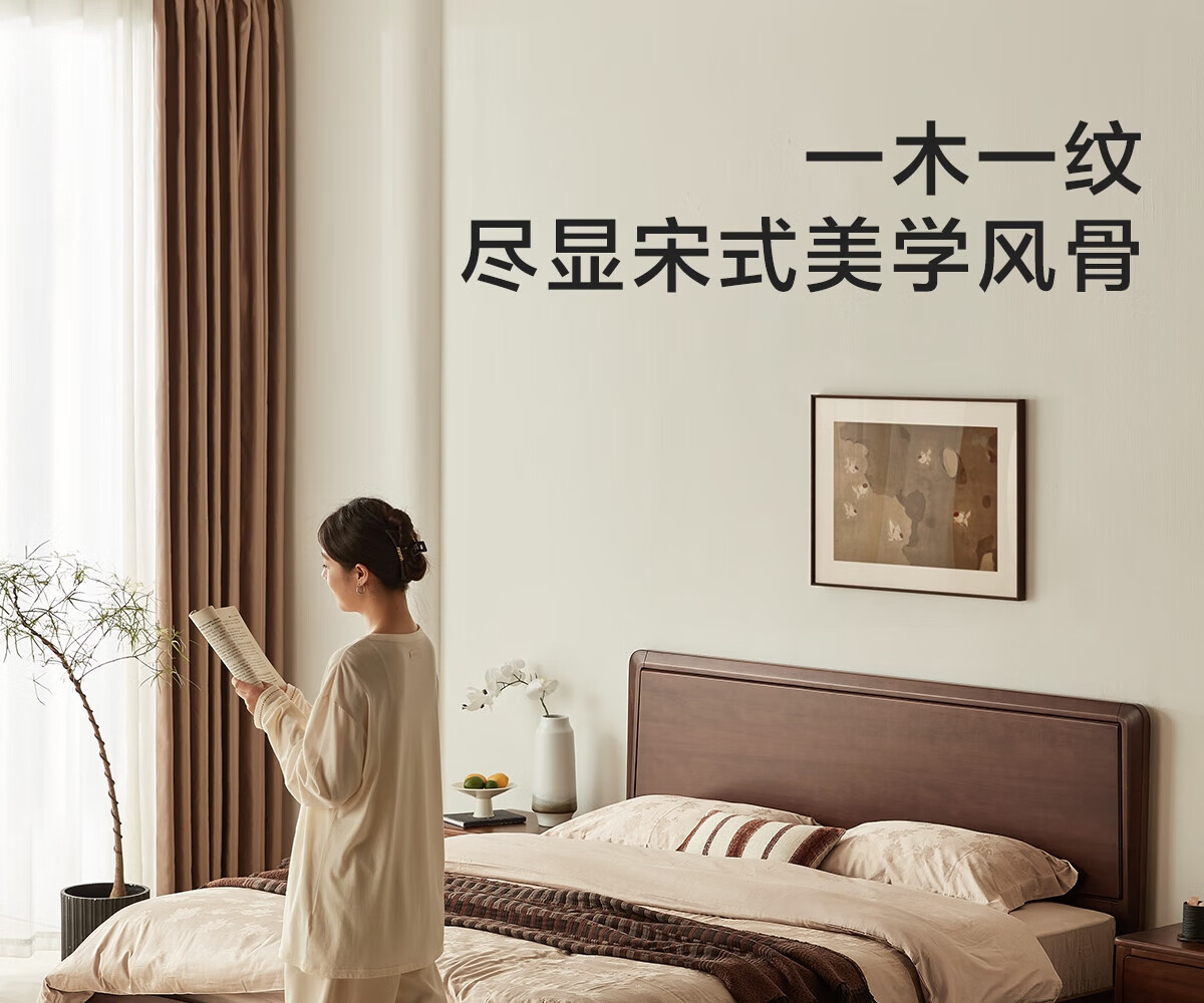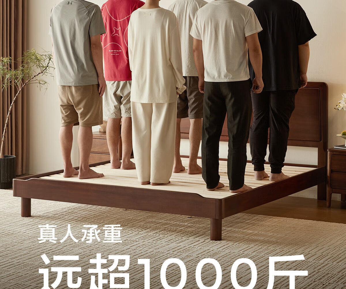 林氏家居卧室实木床1.2米单人床排骨架床架2025新款家具佛山木业LH133A5 大板实木床 1.2x2米