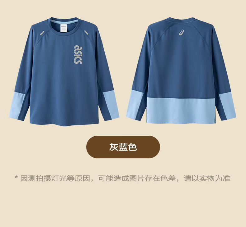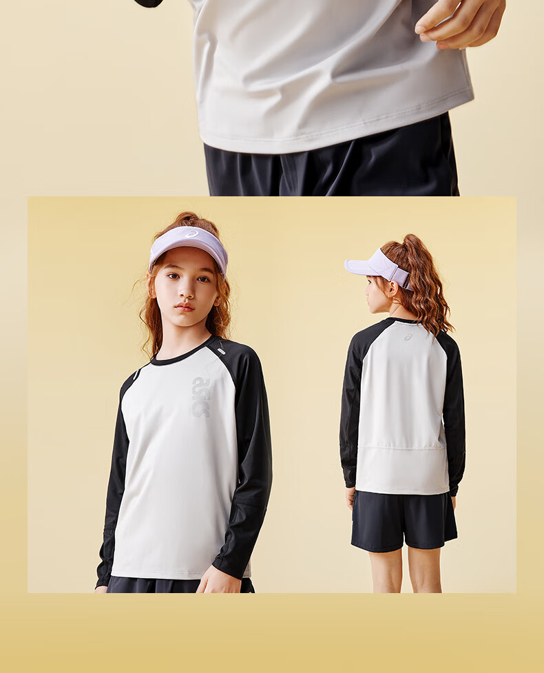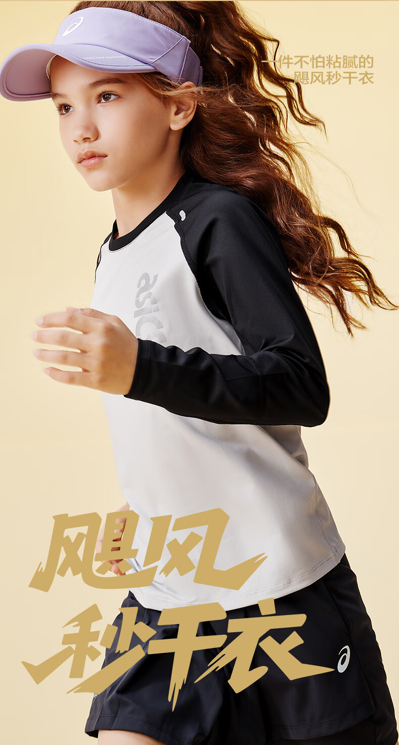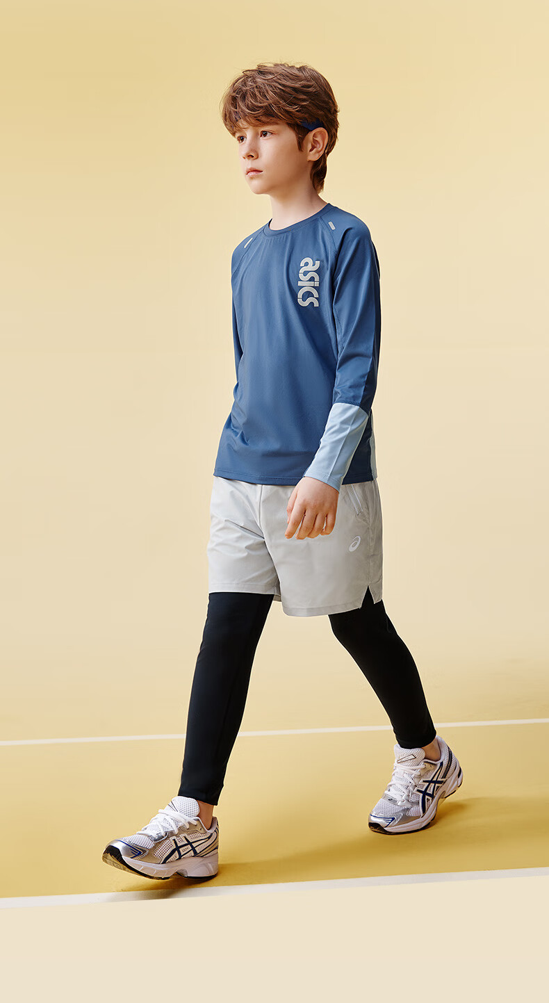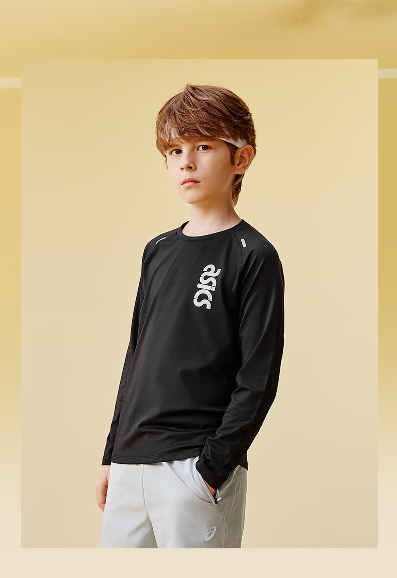 亚瑟士亚瑟士童装25年秋季弹力飓风秒干衣吸湿速干拼色长袖T恤 9014灰色调 170