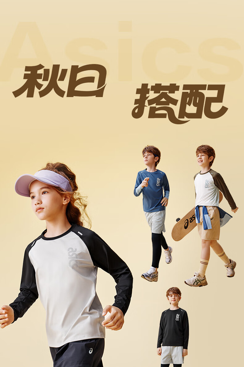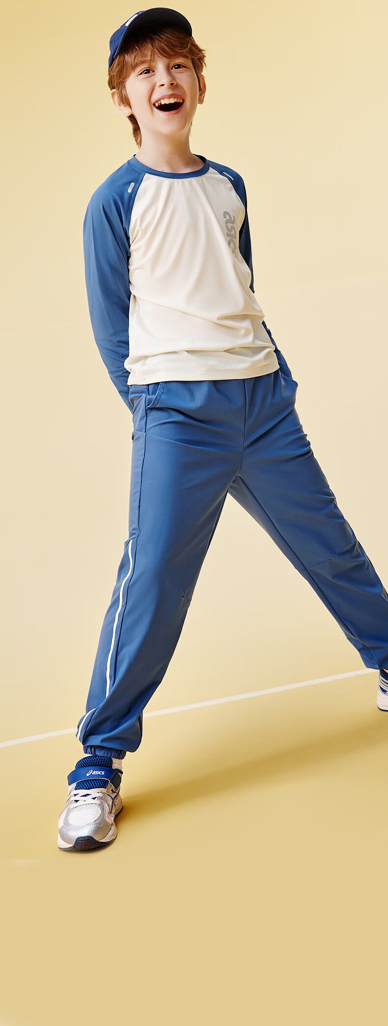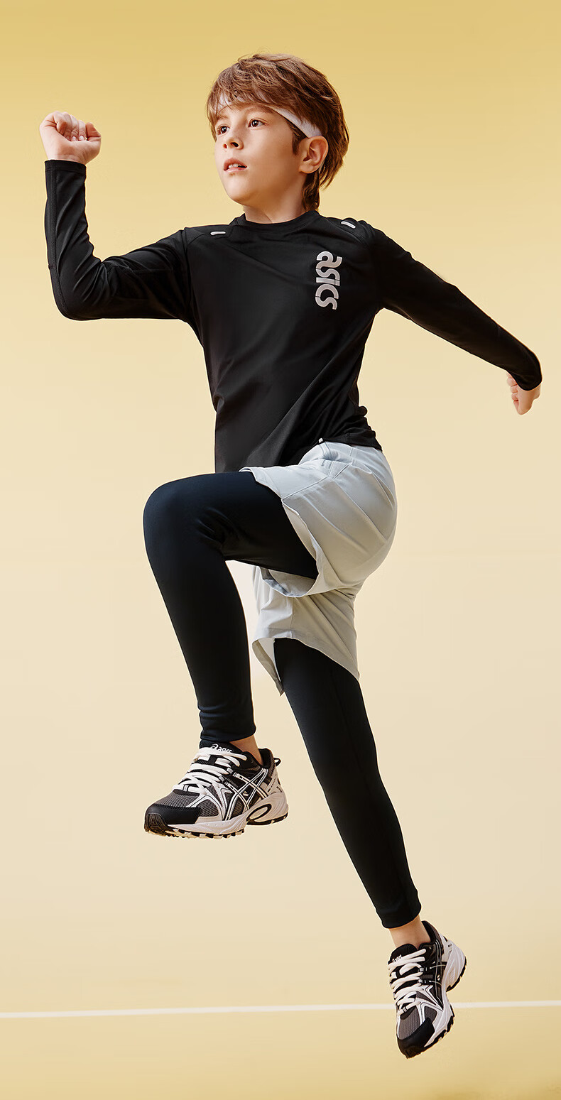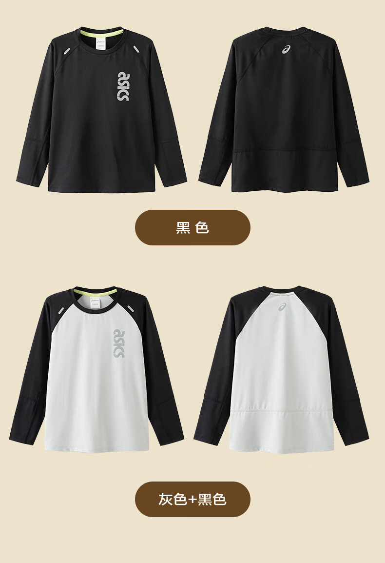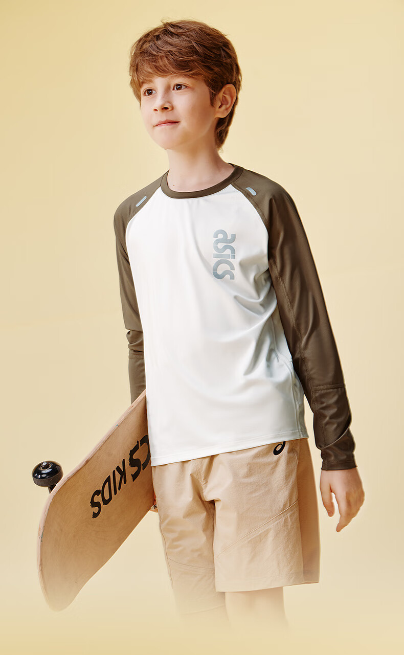 亚瑟士亚瑟士童装25年秋季弹力飓风秒干衣吸湿速干拼色长袖T恤 9014灰色调 170