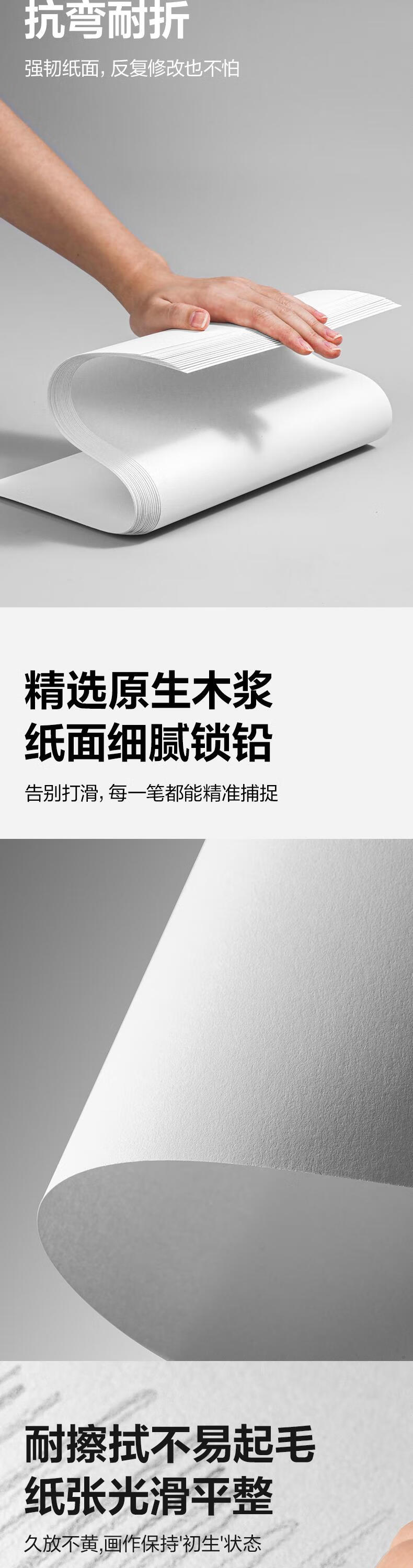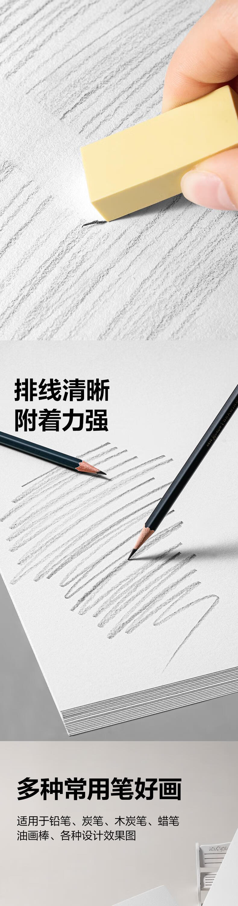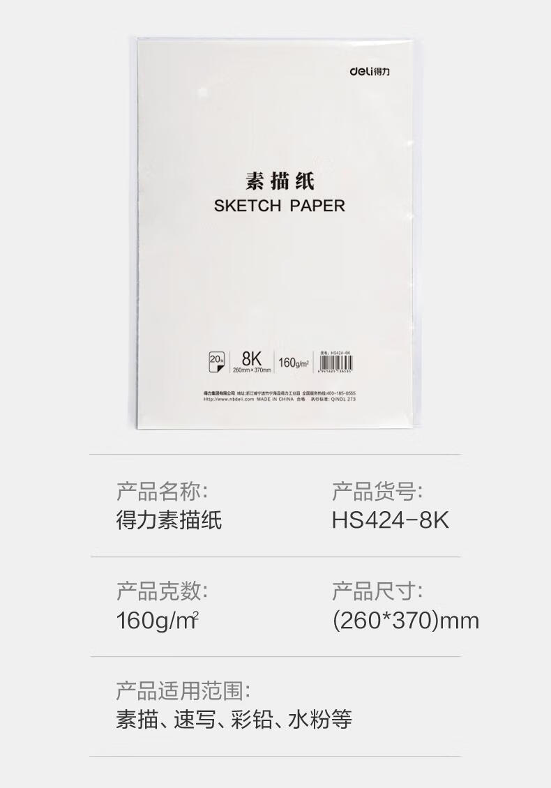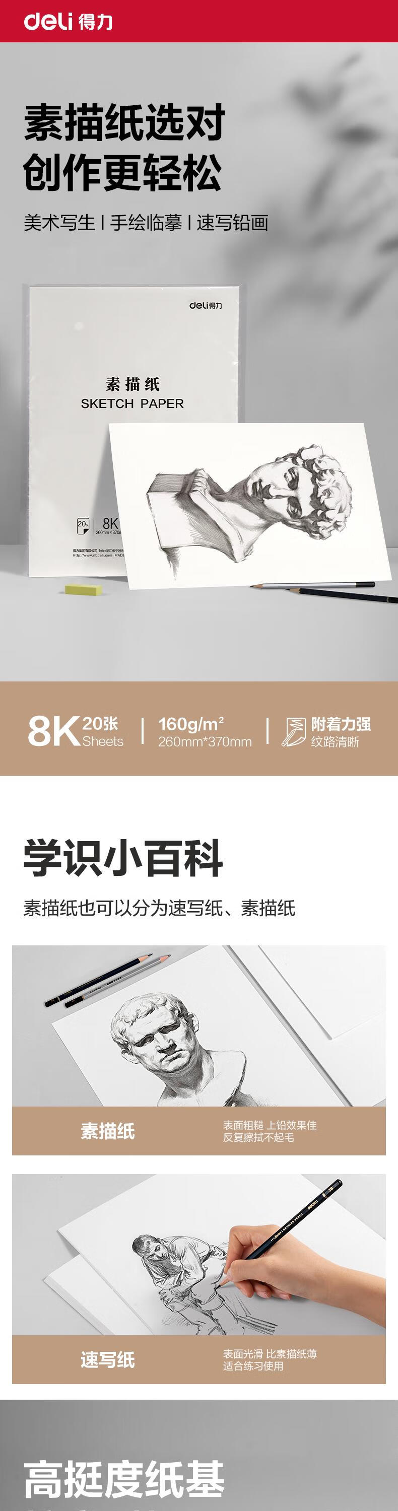得力(deli)文具素描纸8K/160g绘画纸素描本美术写生临摹学生初学速写铅画纸20张HS424-8K