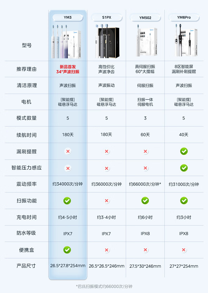 美的(Midea)电动牙刷S1PX白色成人/学生 180天长续航 5种模式 磁悬浮声波马达 男女士专用 年货节情人节礼物