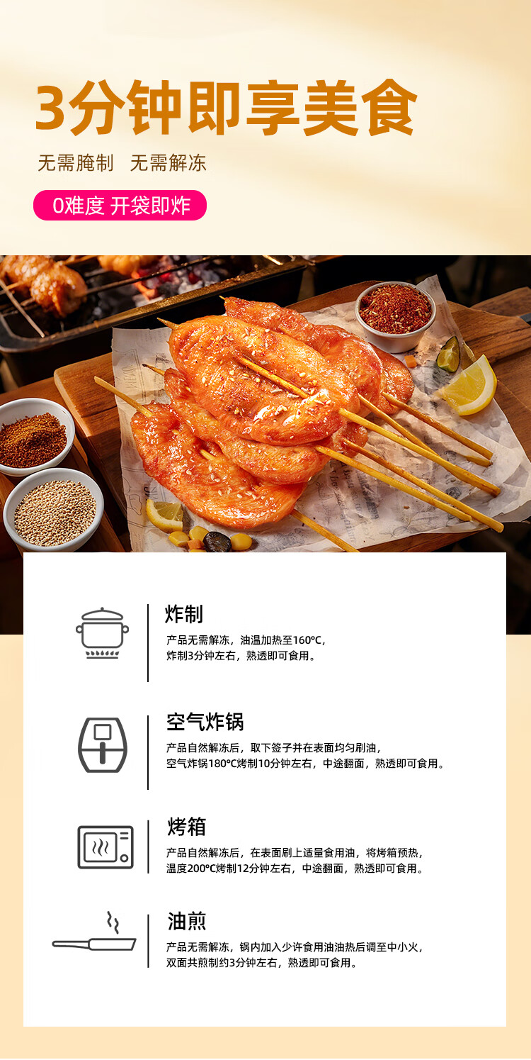 食者道鲜嫩里脊肉串3斤 奥尔良无骨鸡柳鸡胸肉片半成品炸串夜宵零食年货