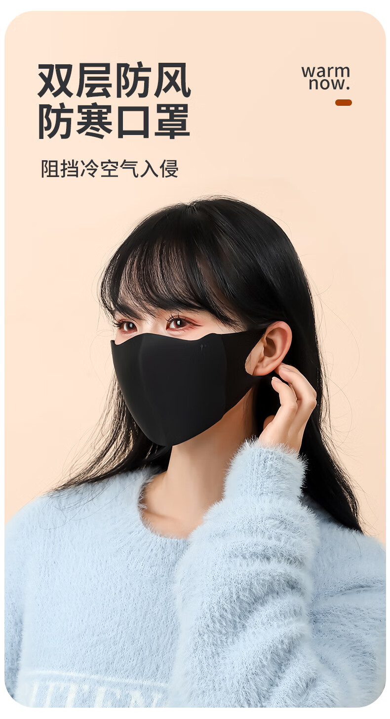 朋意保暖口罩女高颜值2025新款秋冬防风骑行防冻面罩防晒透气口罩黑色 均码【黑色】亲肤绒保暖口罩
