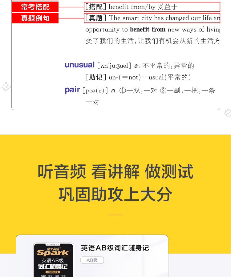 星火英语ab级词汇真题考试试卷三级AB真题统考大学复习资料历年真题备考2025英语三级单词词汇书随身记高等学校英语a级3级ab级词汇 AB级词汇随身记