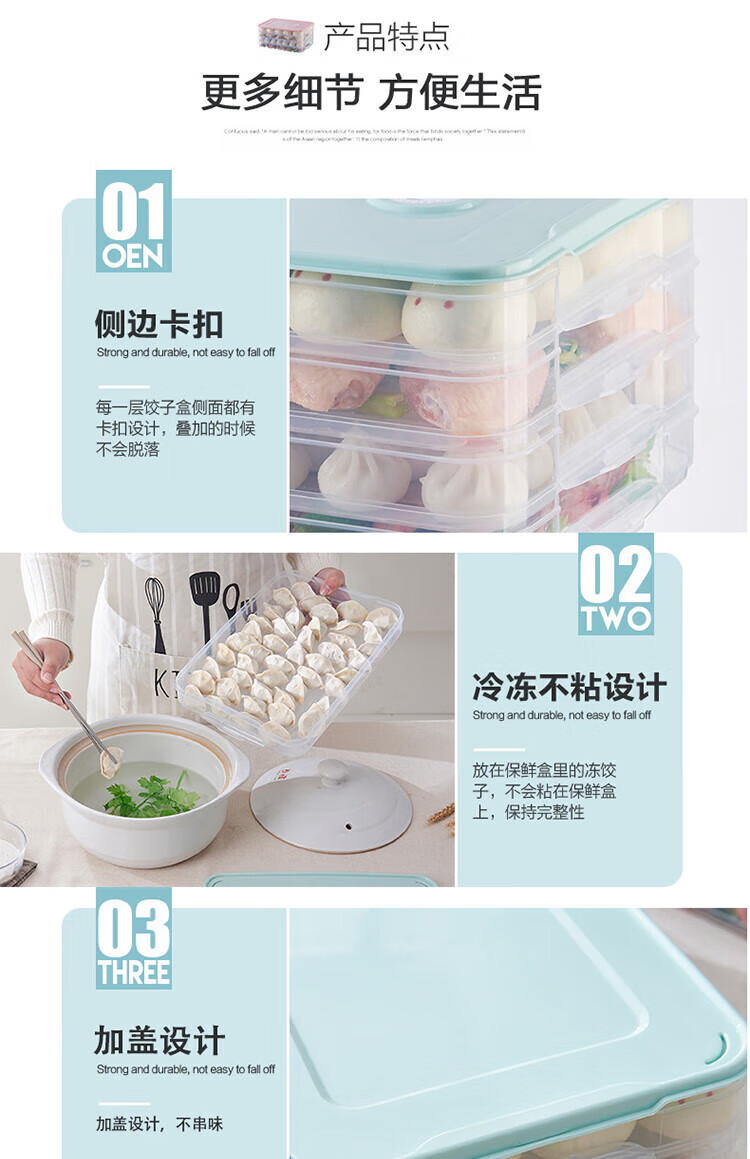 【可冷藏冷冻】冻饺子盒冰箱收纳盒食品级水饺速冻保鲜盒馄饨 3盖 3层