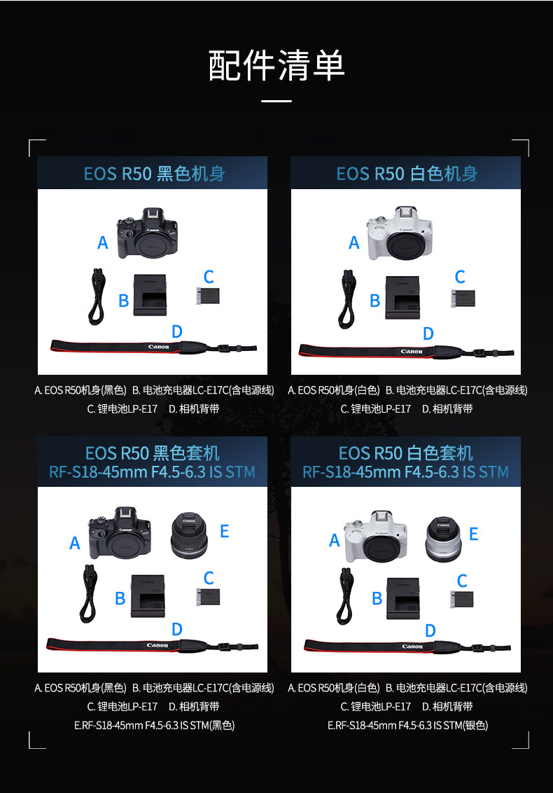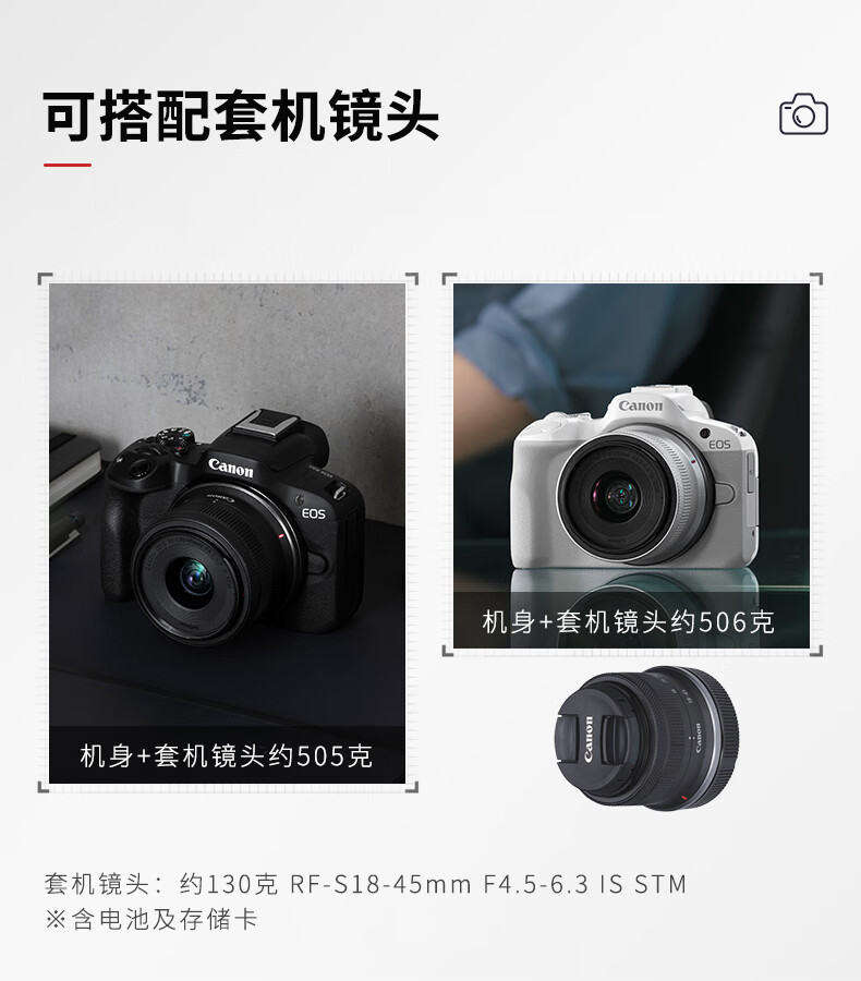 佳能(Canon)EOS R50 18-45mm套机 白色