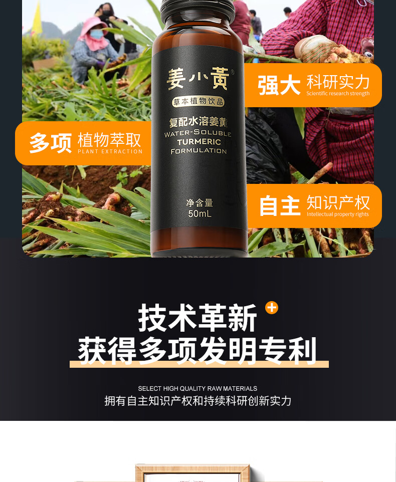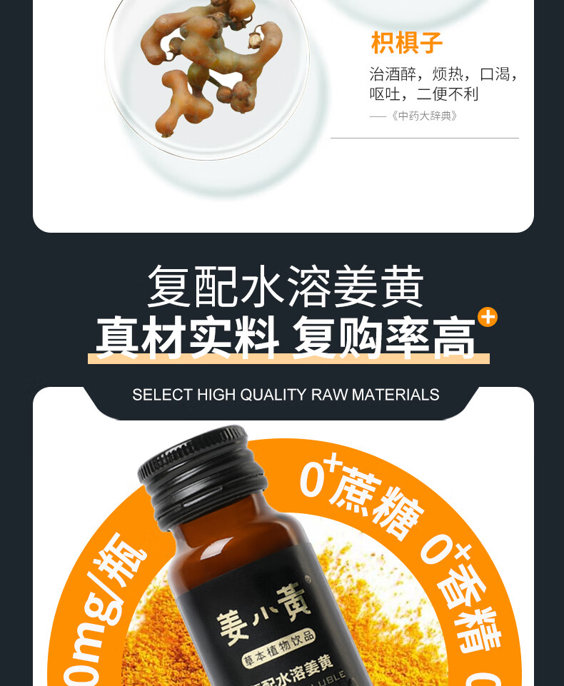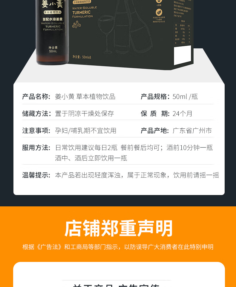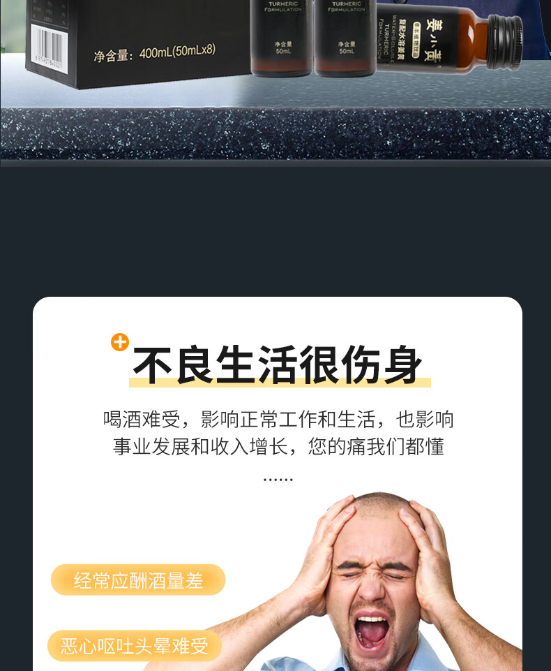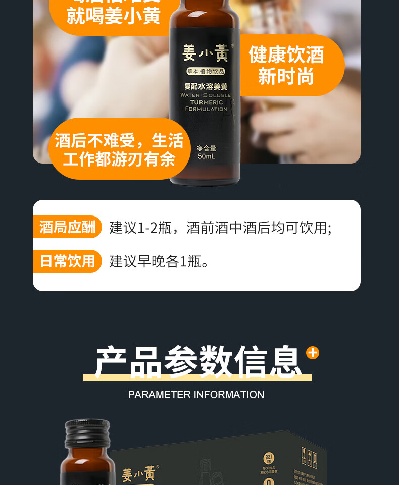 姜小黄高端姜黄素葛根护肝解酒醒酒饮料饮品熬夜宿醉防爆肝清醒口服液 礼盒装一盒 50ml*8瓶 水溶姜黄素解酒饮料