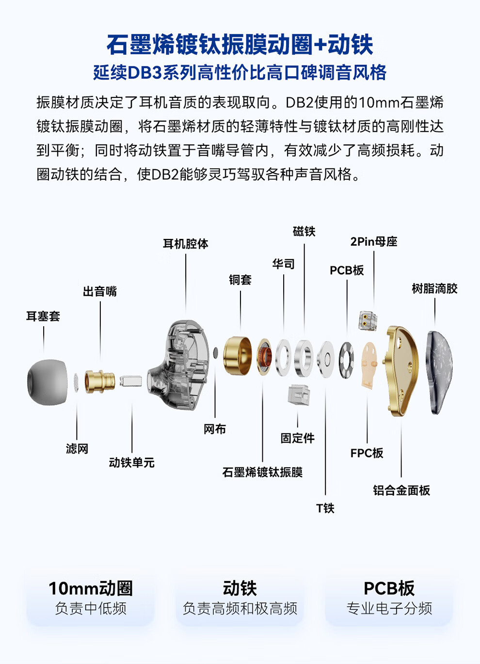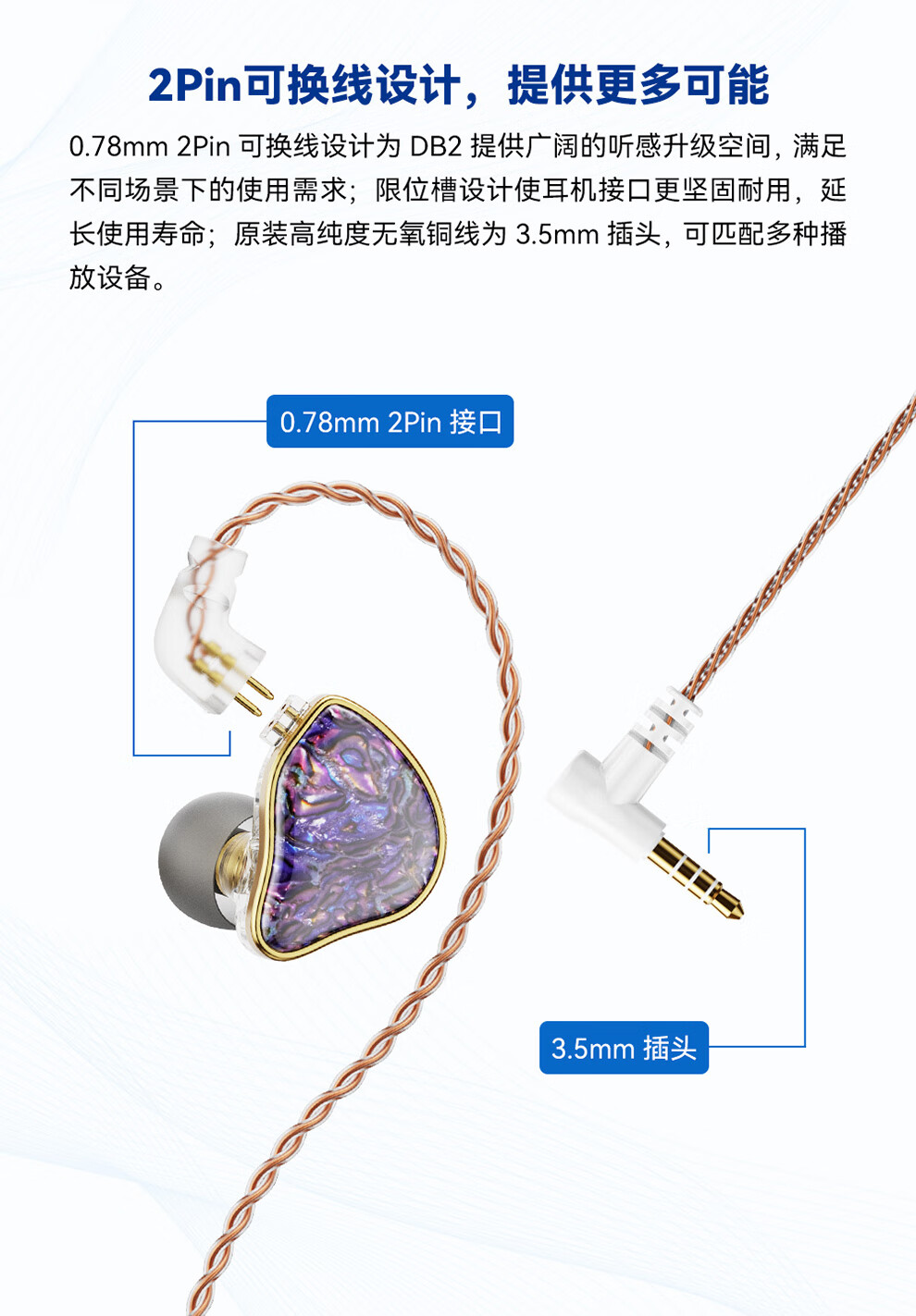 原道-DB2 百元圈铁入门新声入耳式HiFi有线耳机0.78可换线三频均衡安卓手机带麦线控K歌游戏高音质耳塞 【DB2】-星夜紫带麦+NK1小尾巴