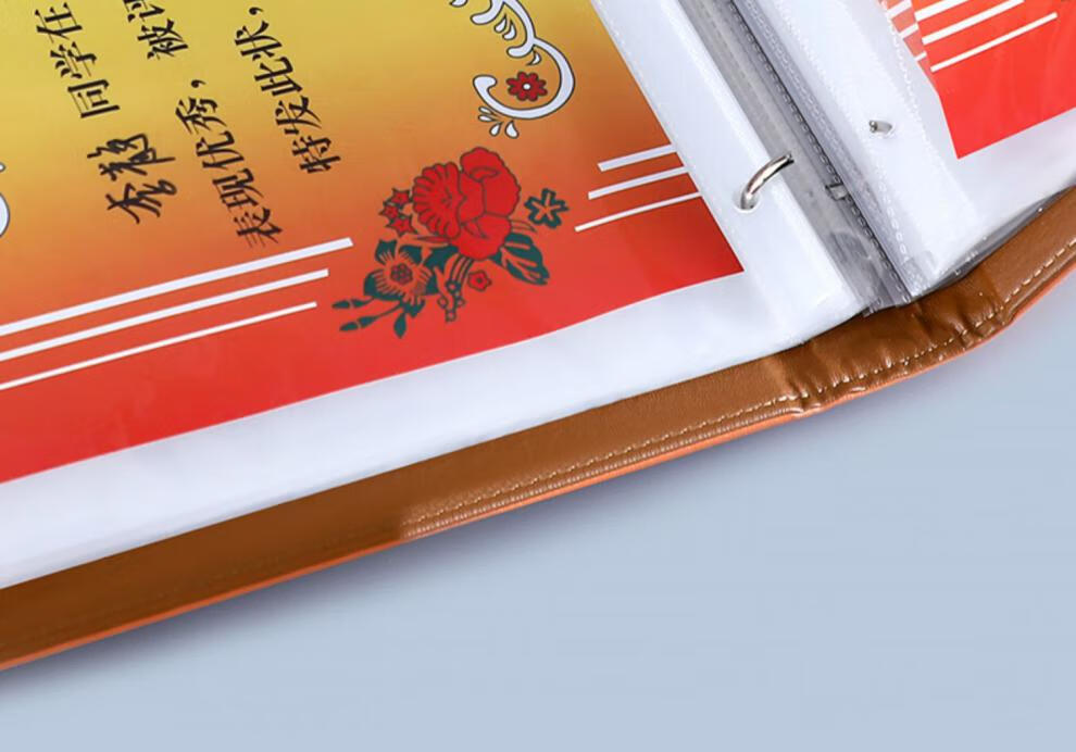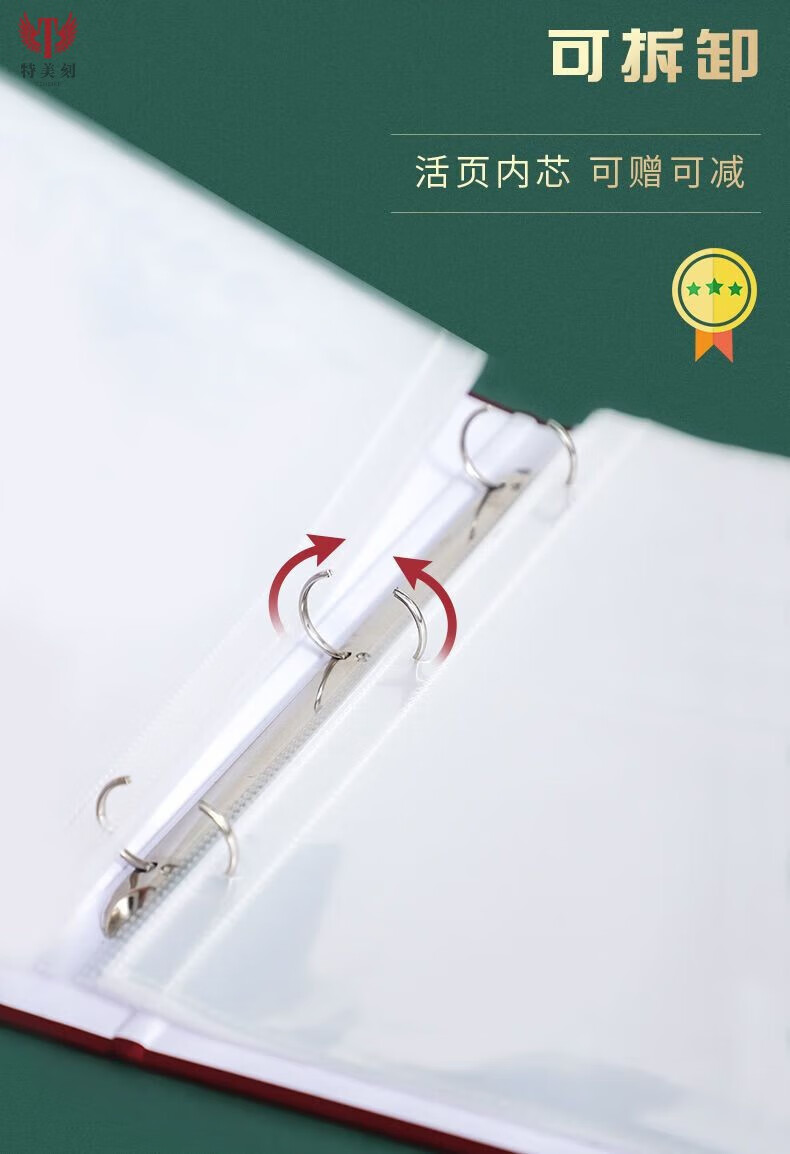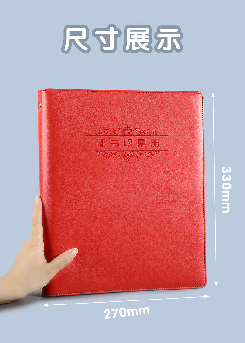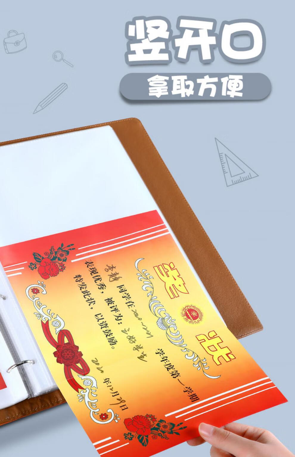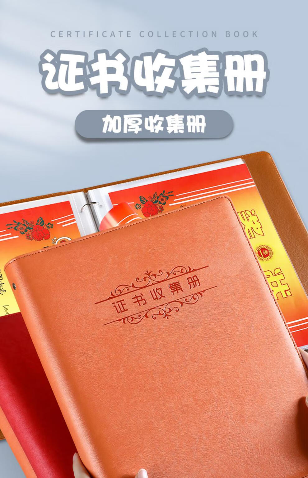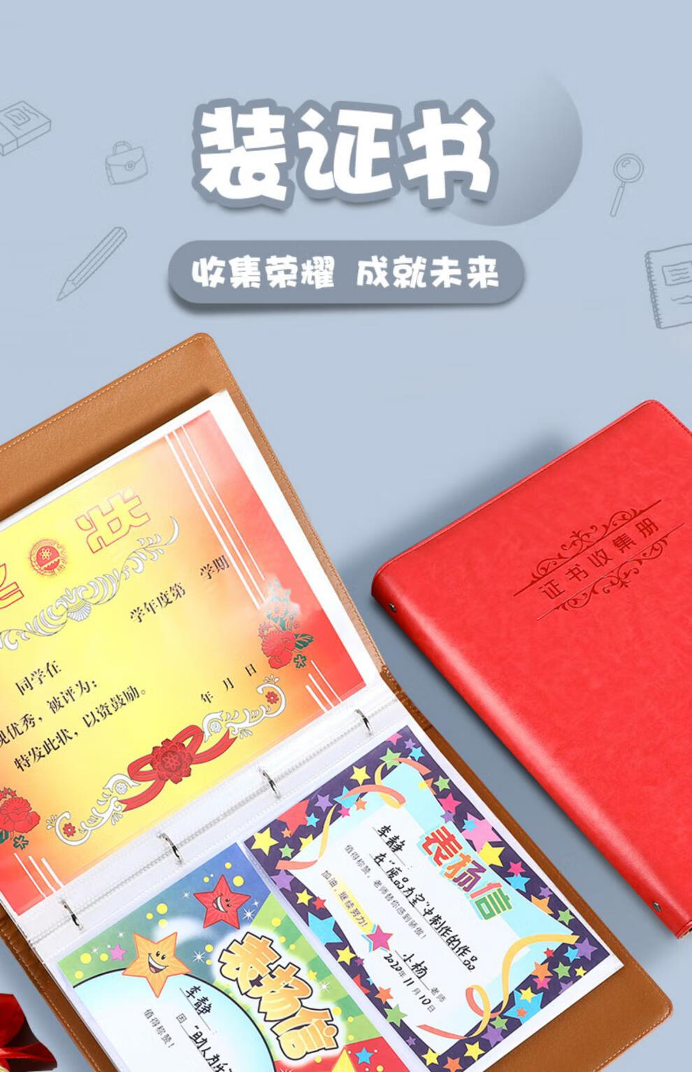 特美刻皮面简约奖状证书收集册A4通用多功能活页资料册小学生证书收纳册 红色【A4*40张】