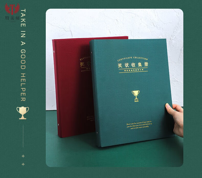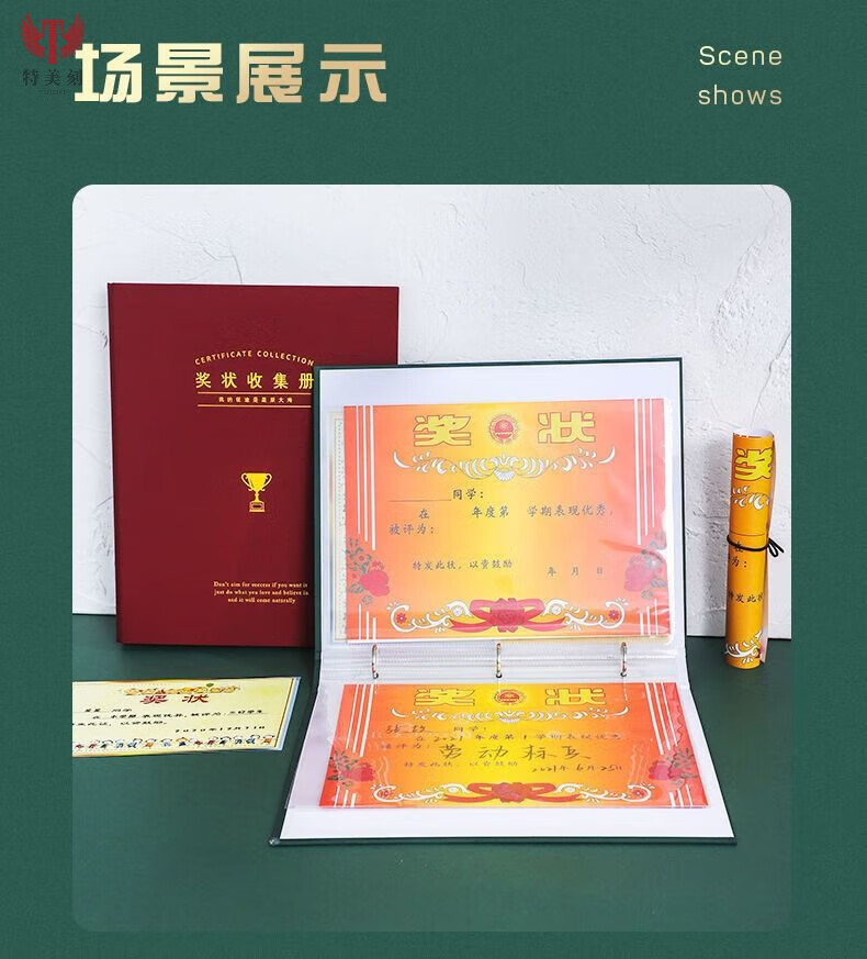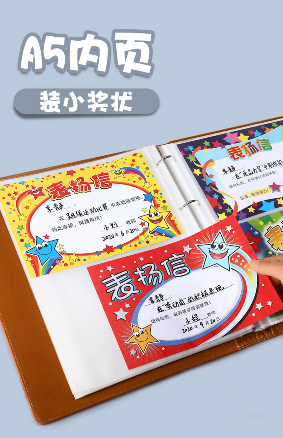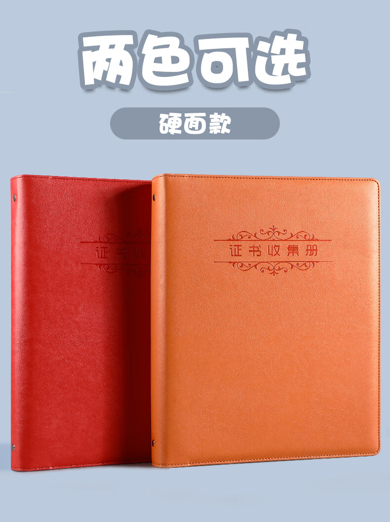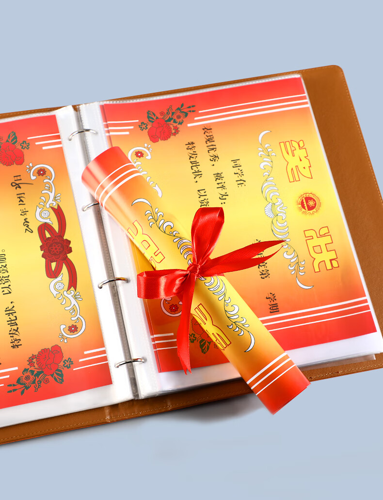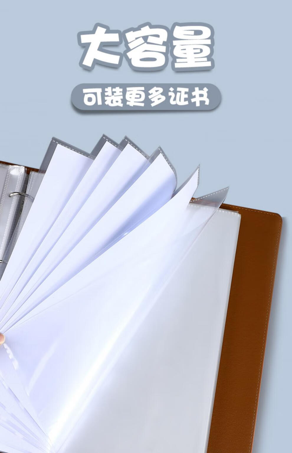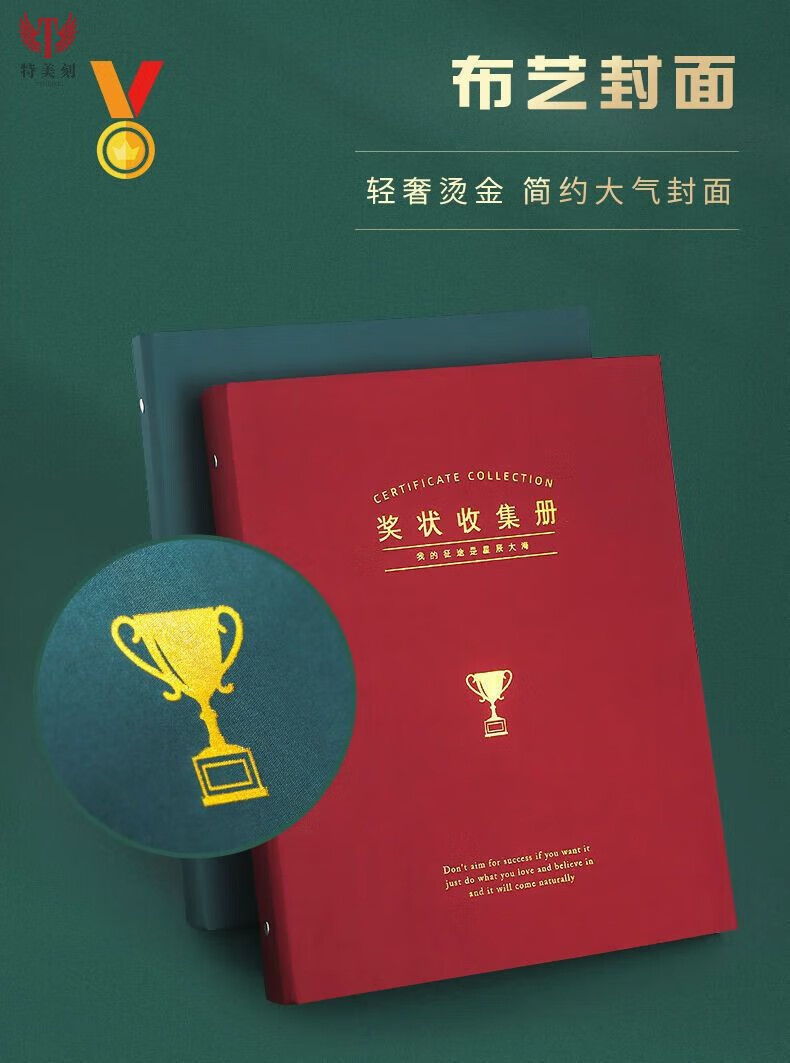 特美刻皮面简约奖状证书收集册A4通用多功能活页资料册小学生证书收纳册 红色【A4*40张】