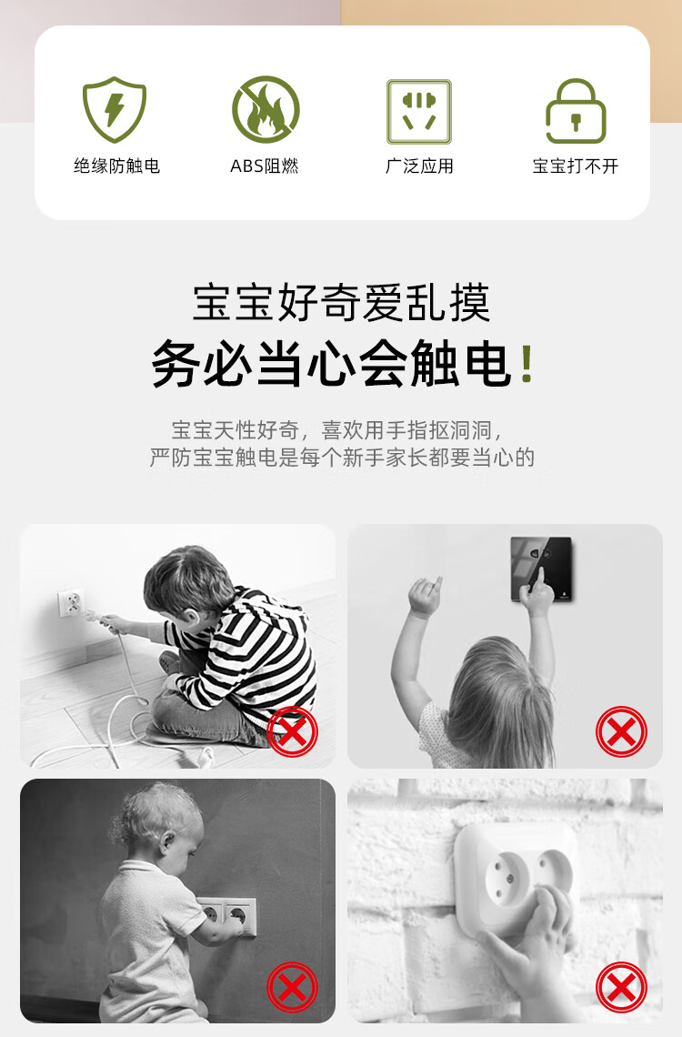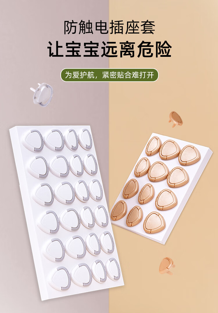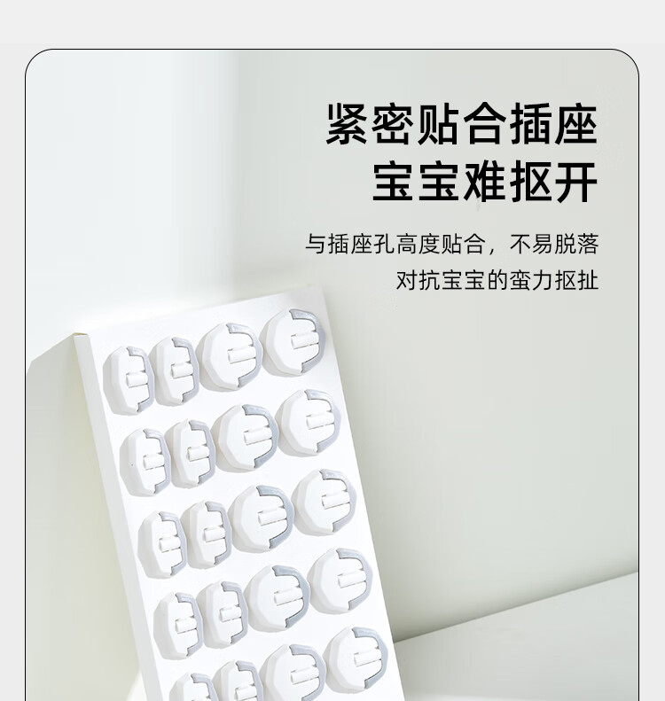 焦尼贝比电源插座保护盖儿童防触电插板宝宝插头孔防护盖开关安全防护堵塞 锁扣升级款-24枚 静谧灰 【严选ABS阻燃材质】