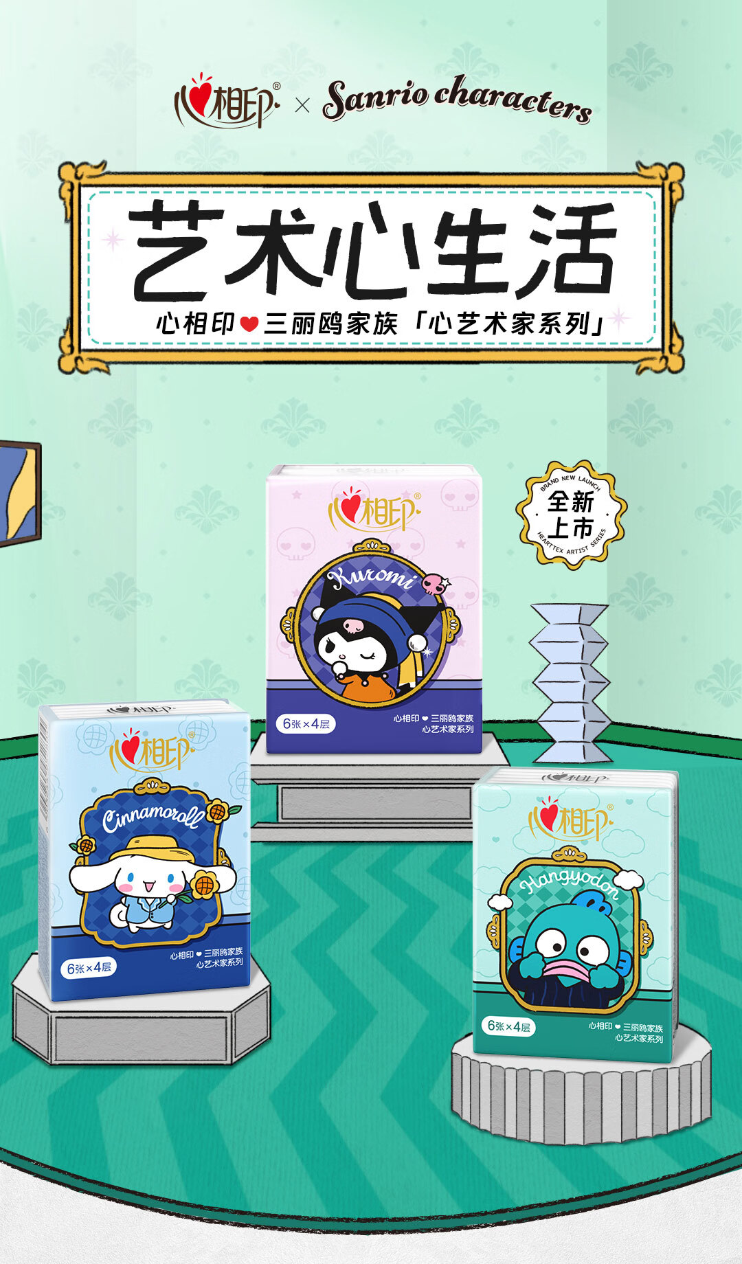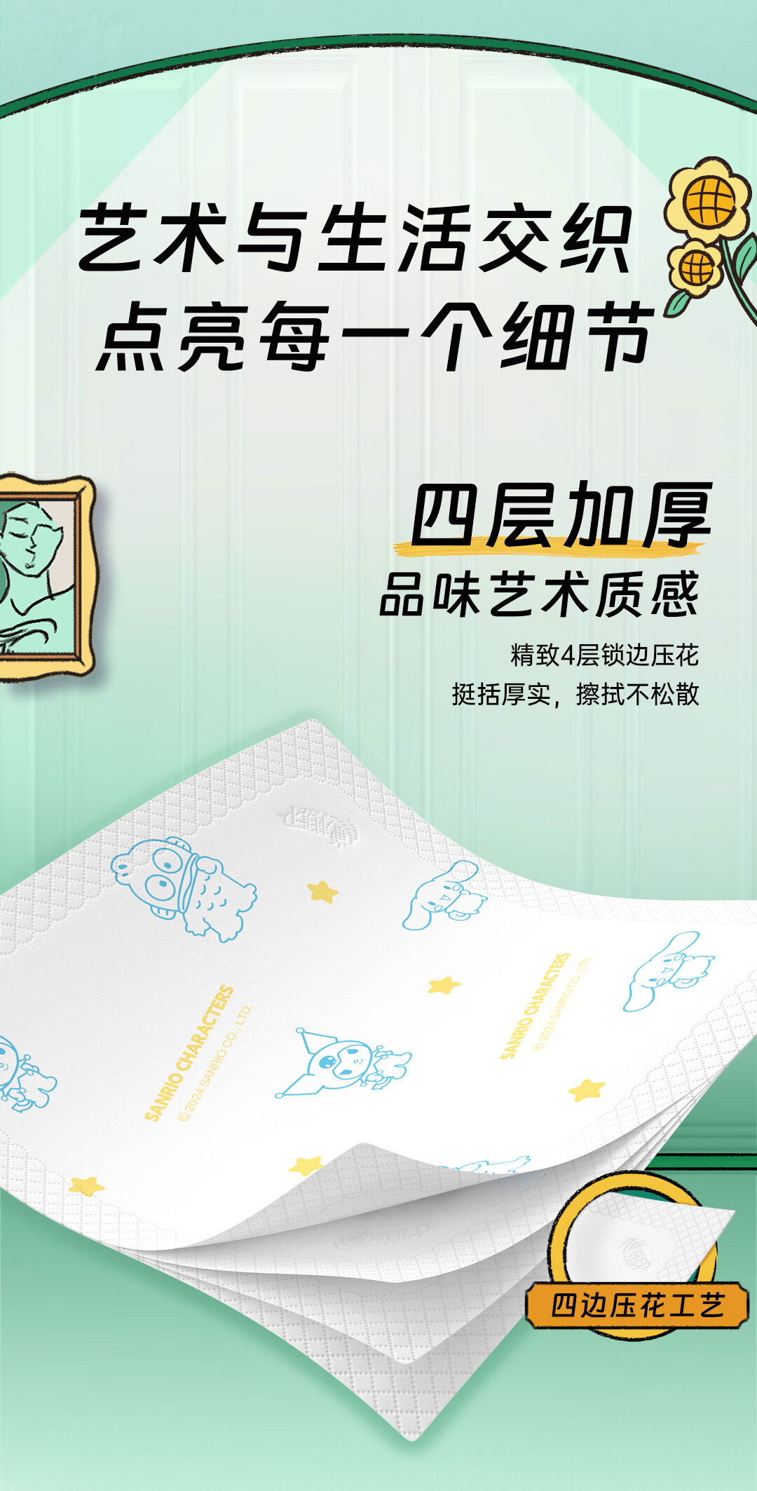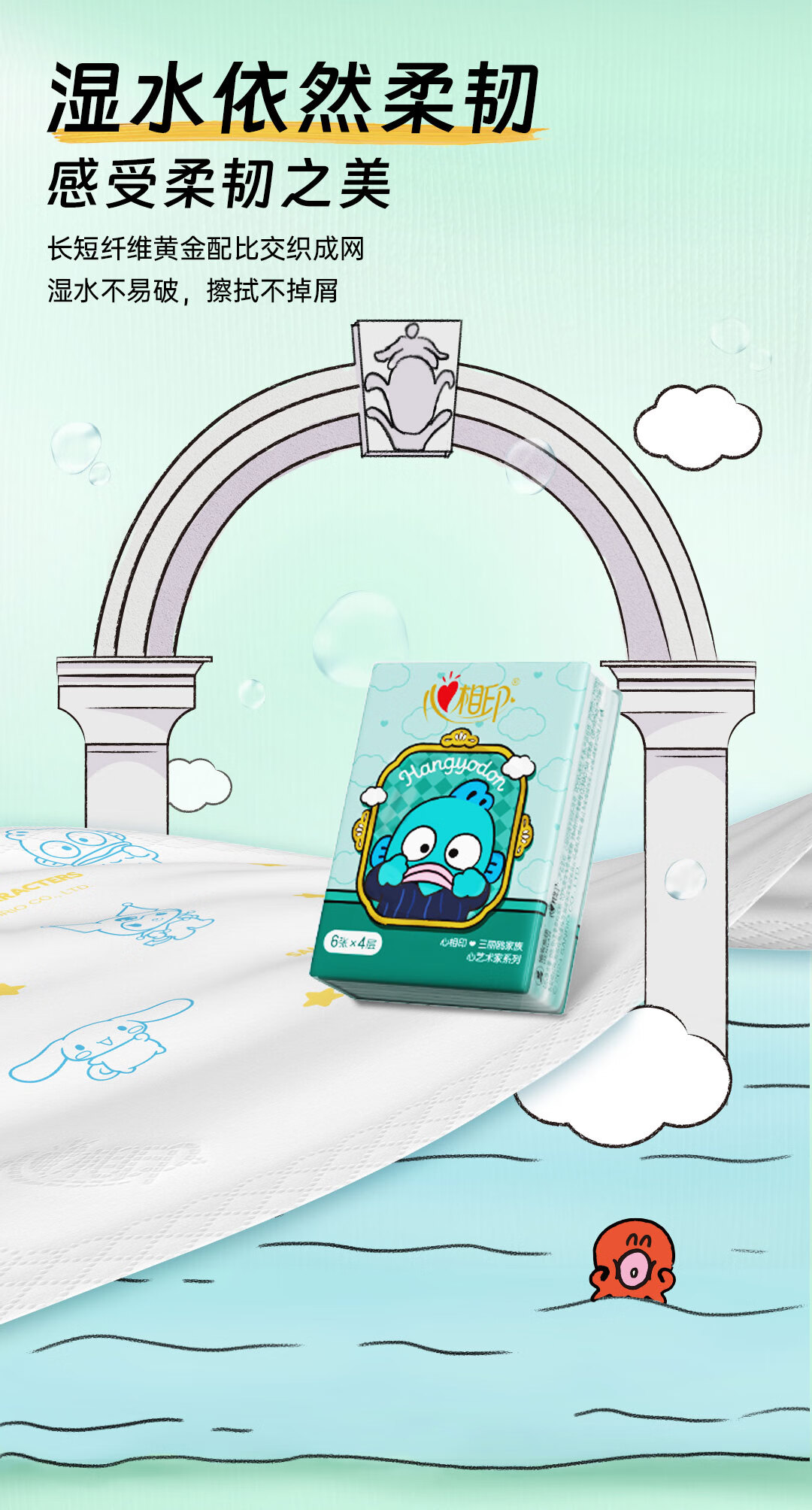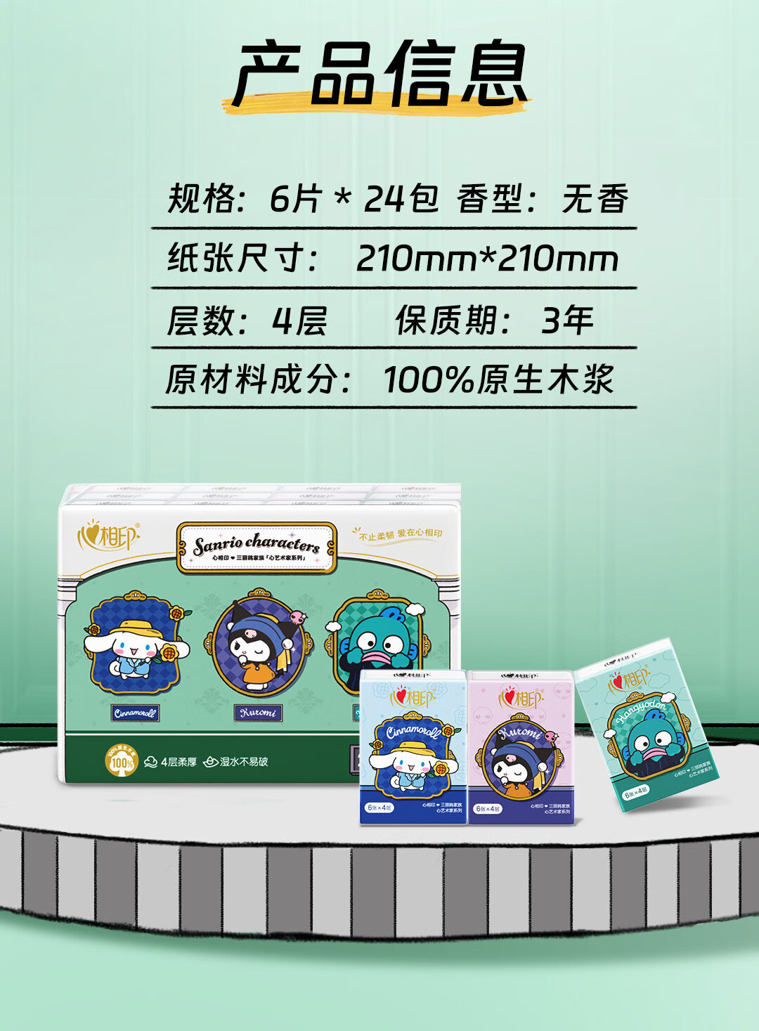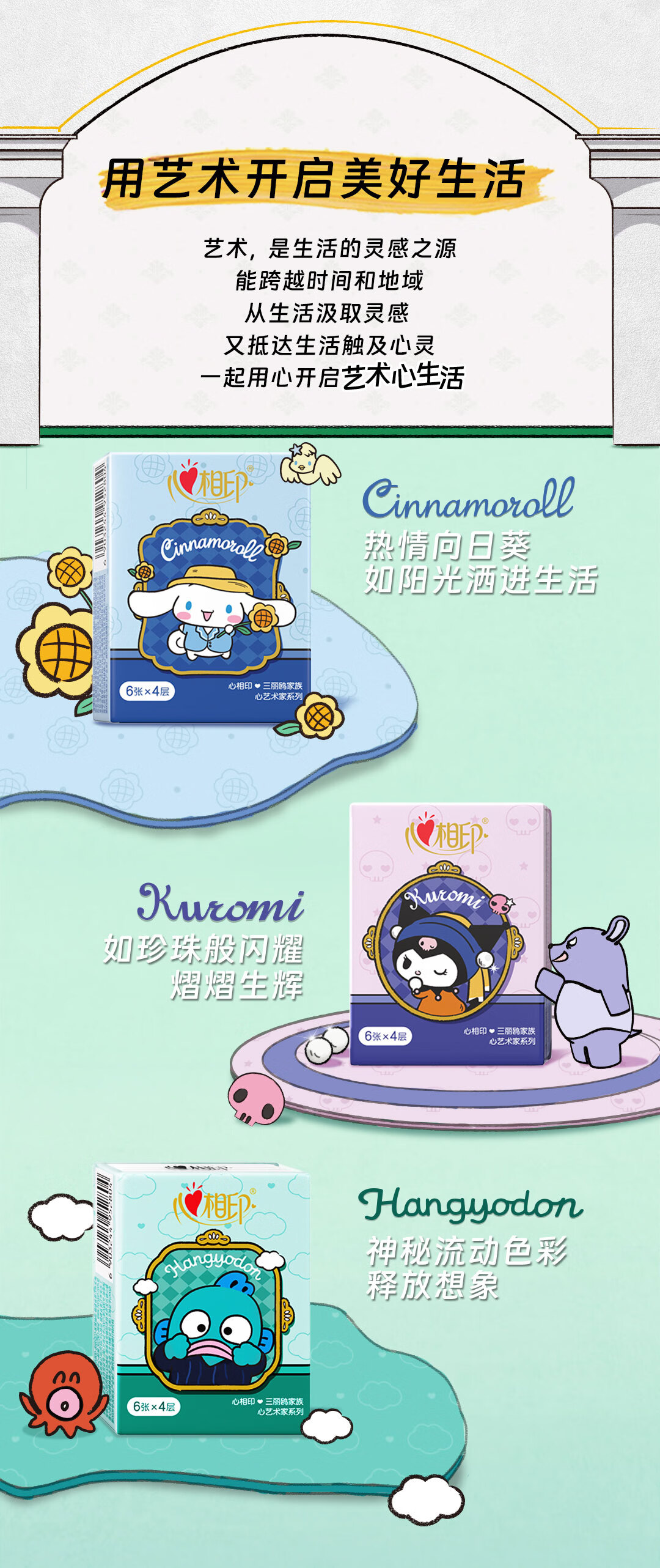 心相印【田栩宁同款】手帕纸三丽鸥IP联名艺术家4层6张*24包便携不易破
