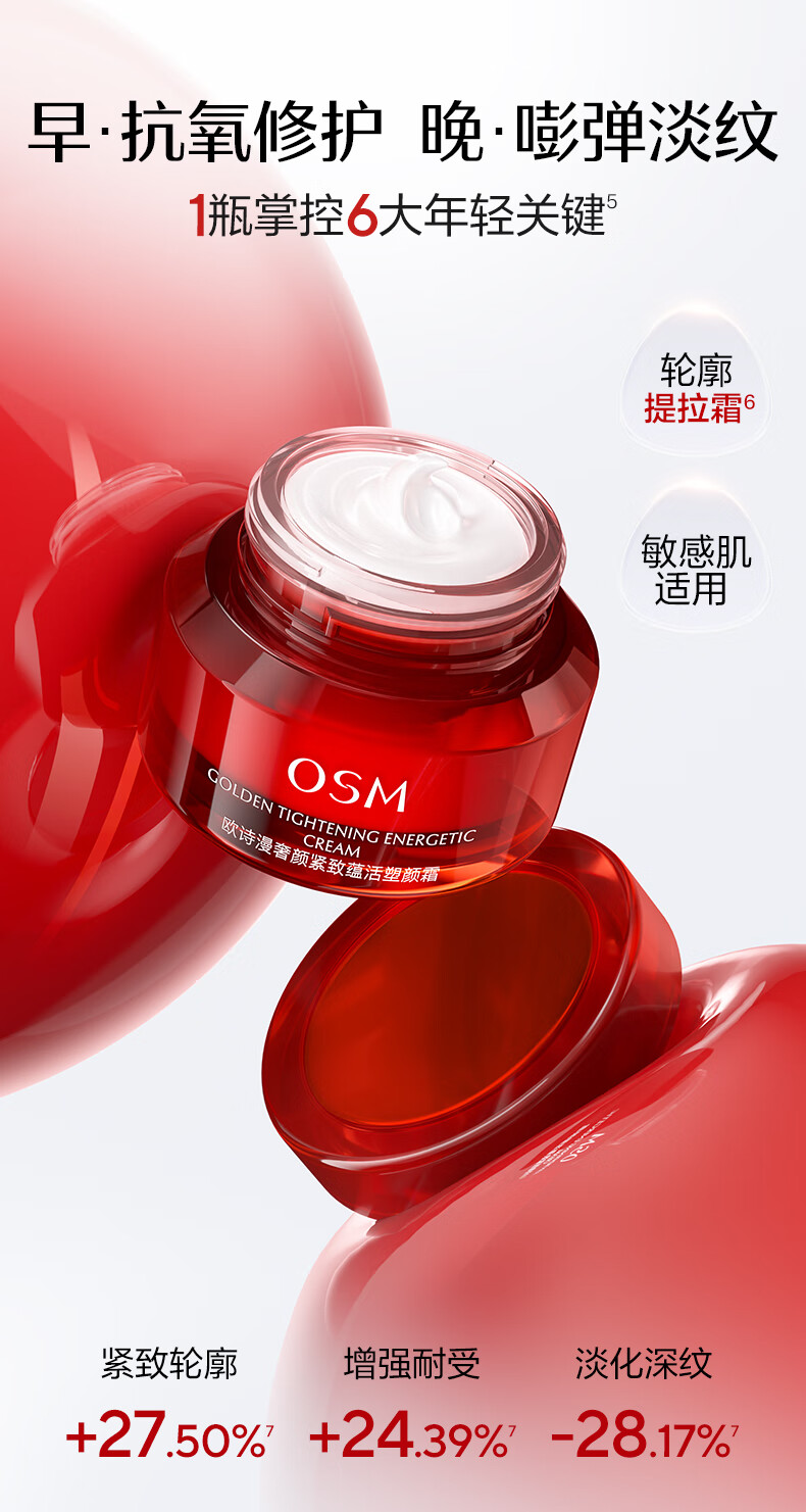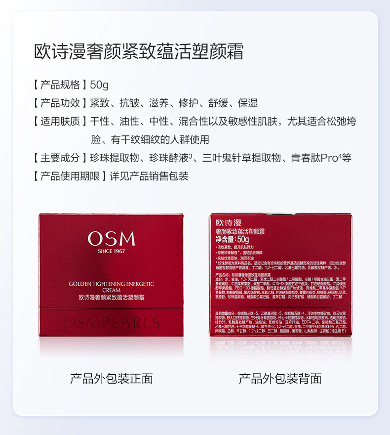 欧诗漫(OSM)奢颜紧致蕴活塑颜霜50g保湿抗皱紧致 情人节礼物送女友
