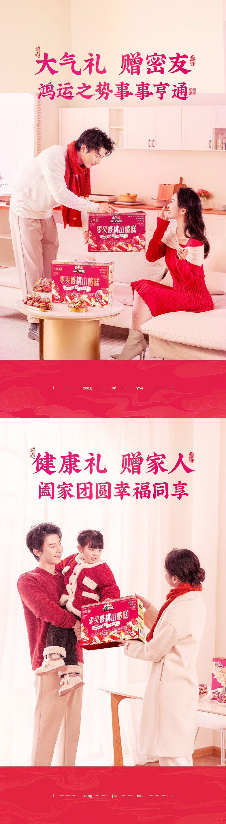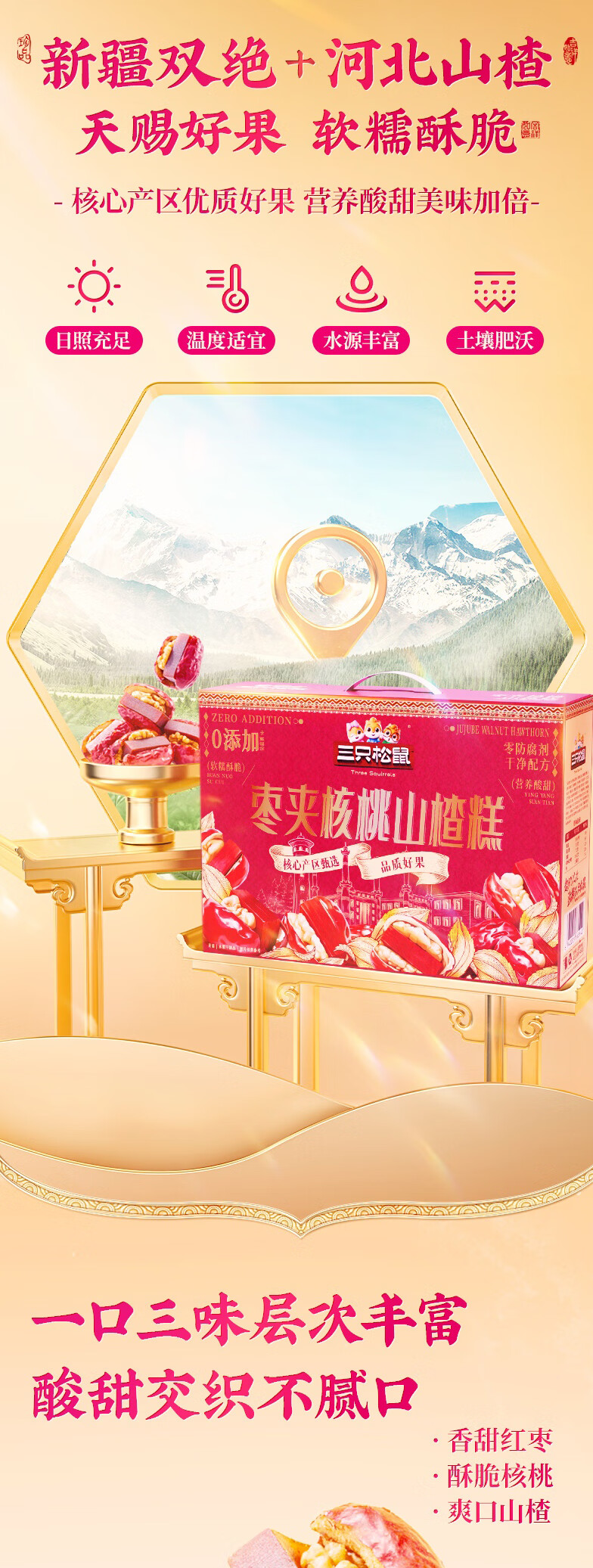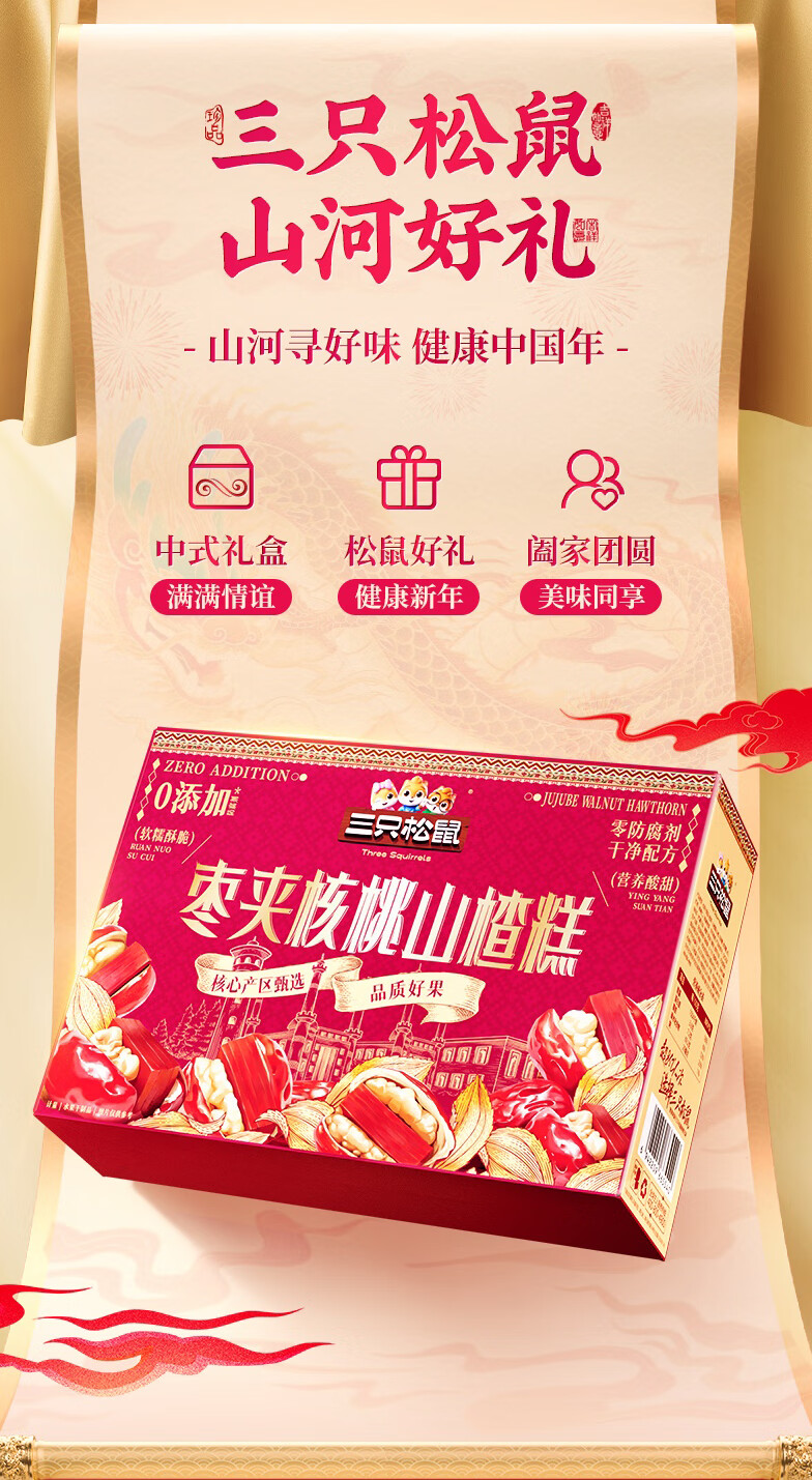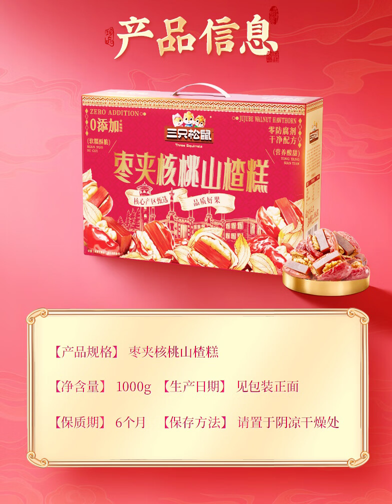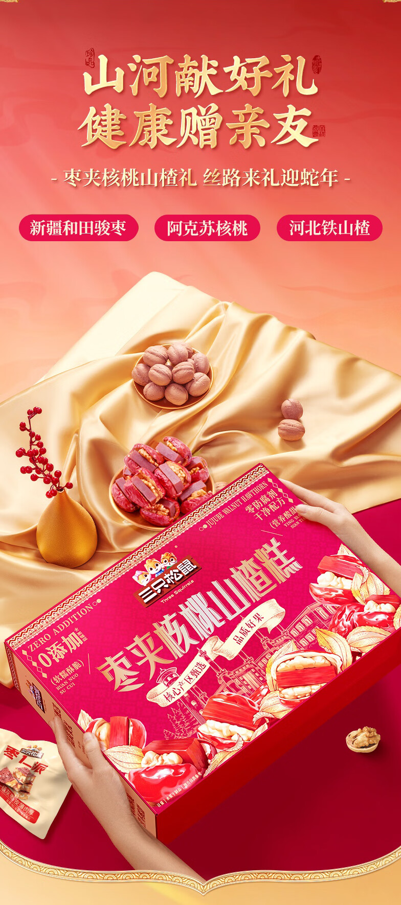 三只松鼠枣夹核桃山楂糕1kg超50包0添加蜜饯果干新疆特产红枣零食新年送礼