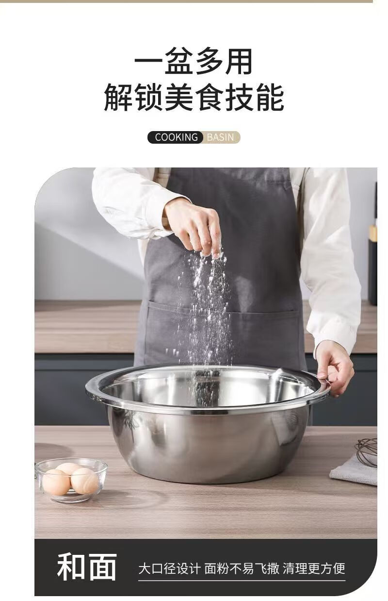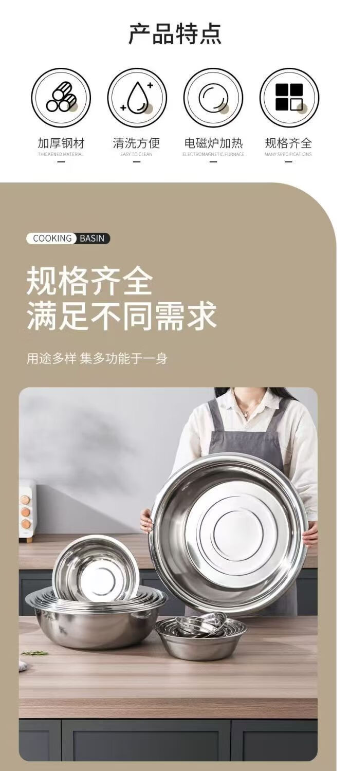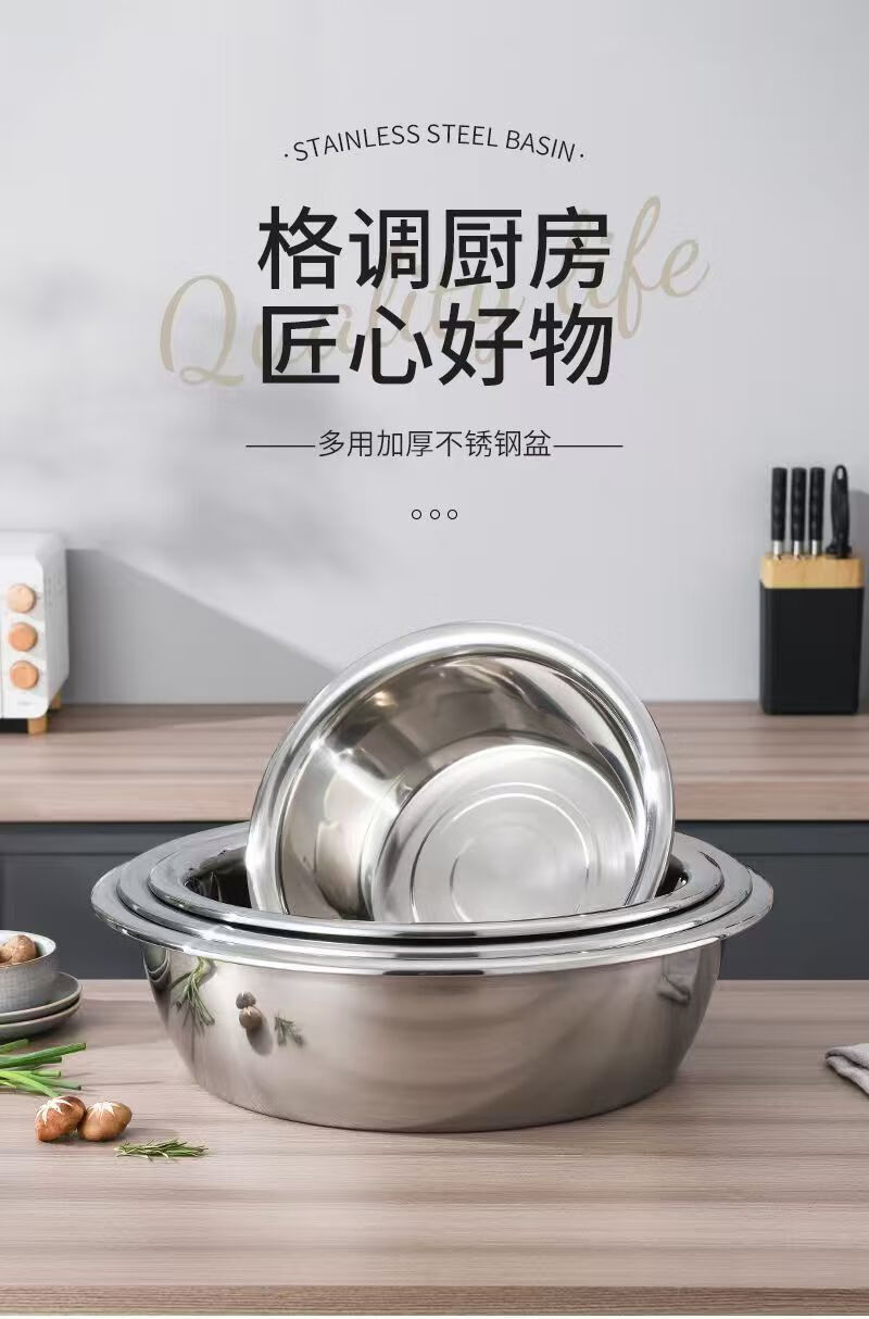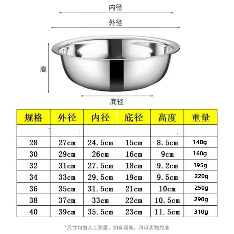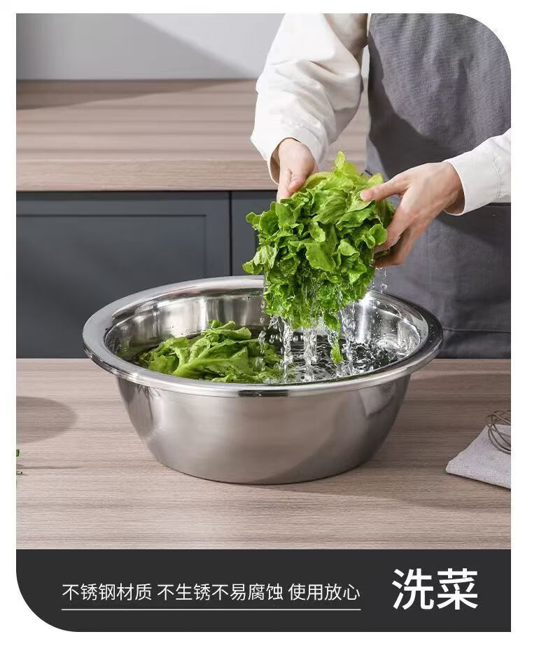 不锈钢盆加厚大盆洗脸盆洗菜盆家用大号盆洗澡洗衣加厚盆洗菜盆 加厚不锈钢大盆 30CM【1个装】