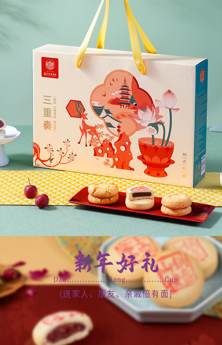 稻香村年货糕点礼盒糕点三重奏720g 早餐点心 休闲零食大礼包 送礼团购