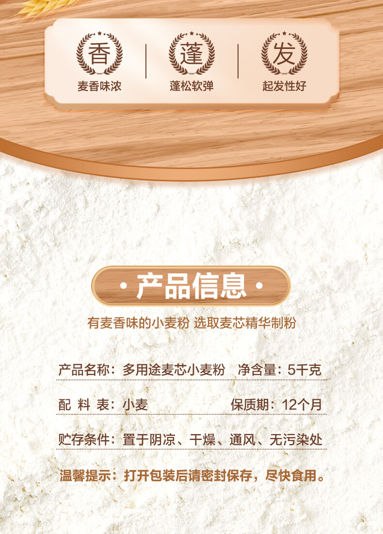 福花(鲁花出品)多用途麦芯小麦粉 10斤 面粉 饺子面条馒头 通用粉