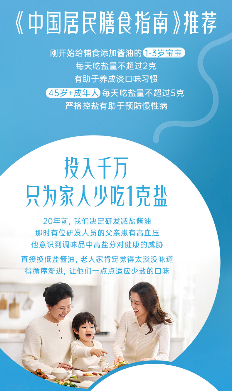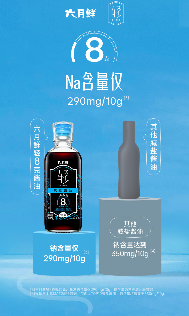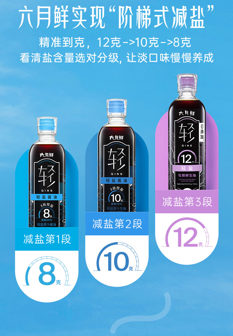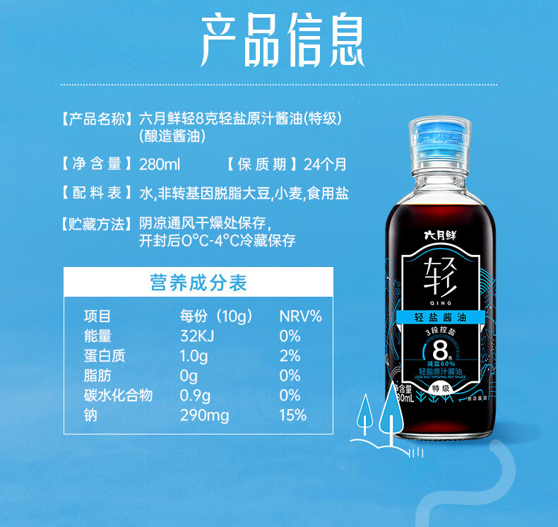 六月鲜轻系列8克轻盐原汁酱油280ml【减盐 特级酱油】生抽炒菜 欣和出品