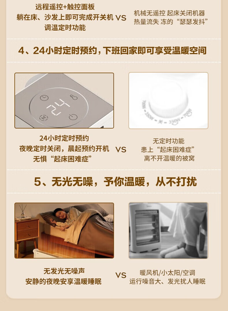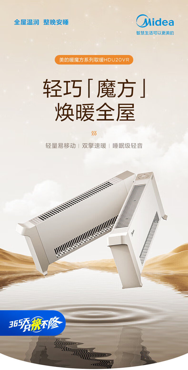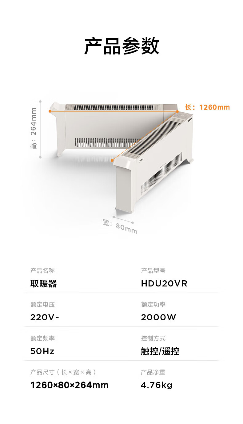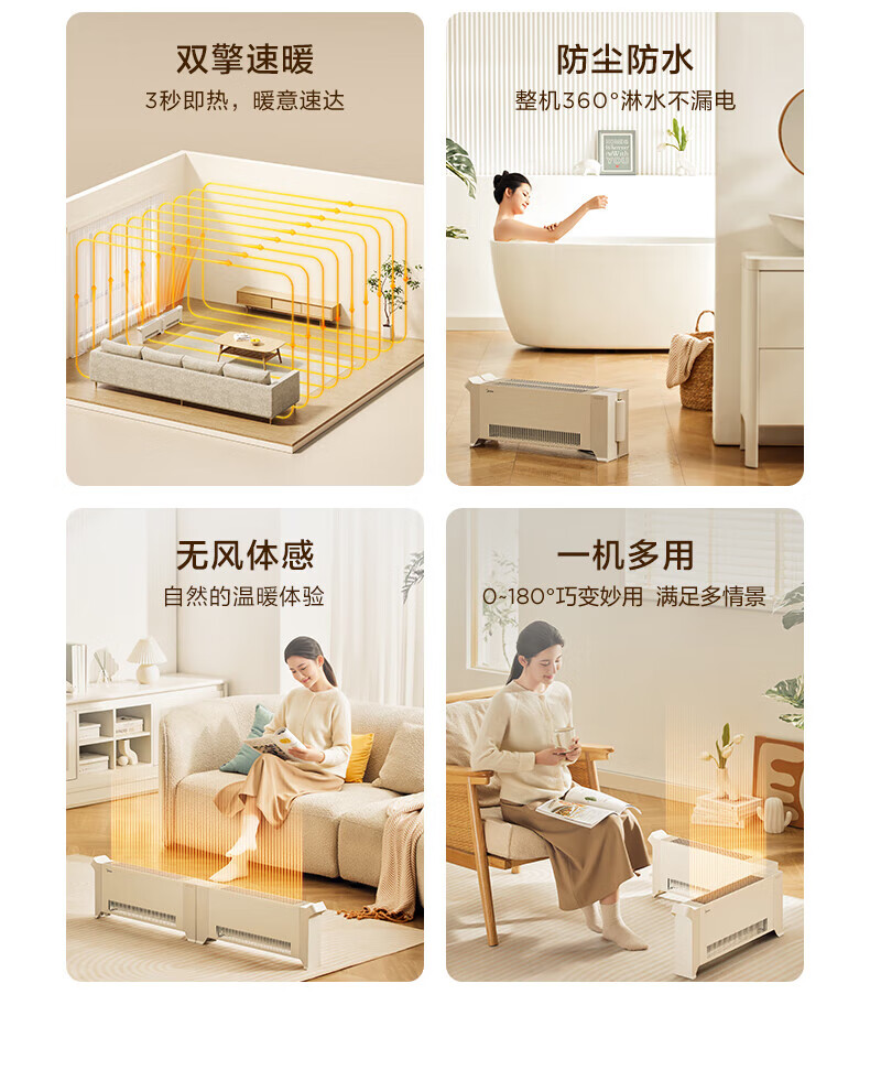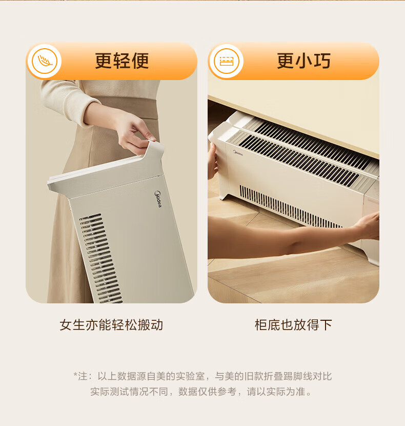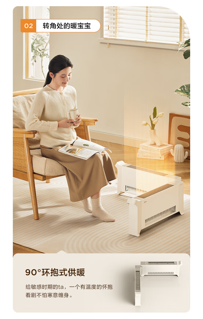 美的电暖器家用 烘干衣机踢脚线取暖器婴儿折叠式大面积卧室客厅移动地暖浴室暖风机 【遥控定时】180°折叠防水取暖器