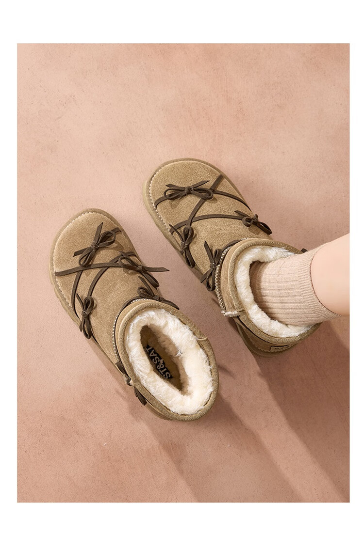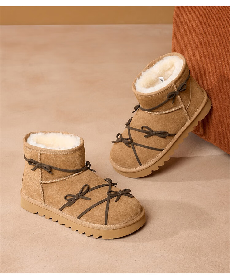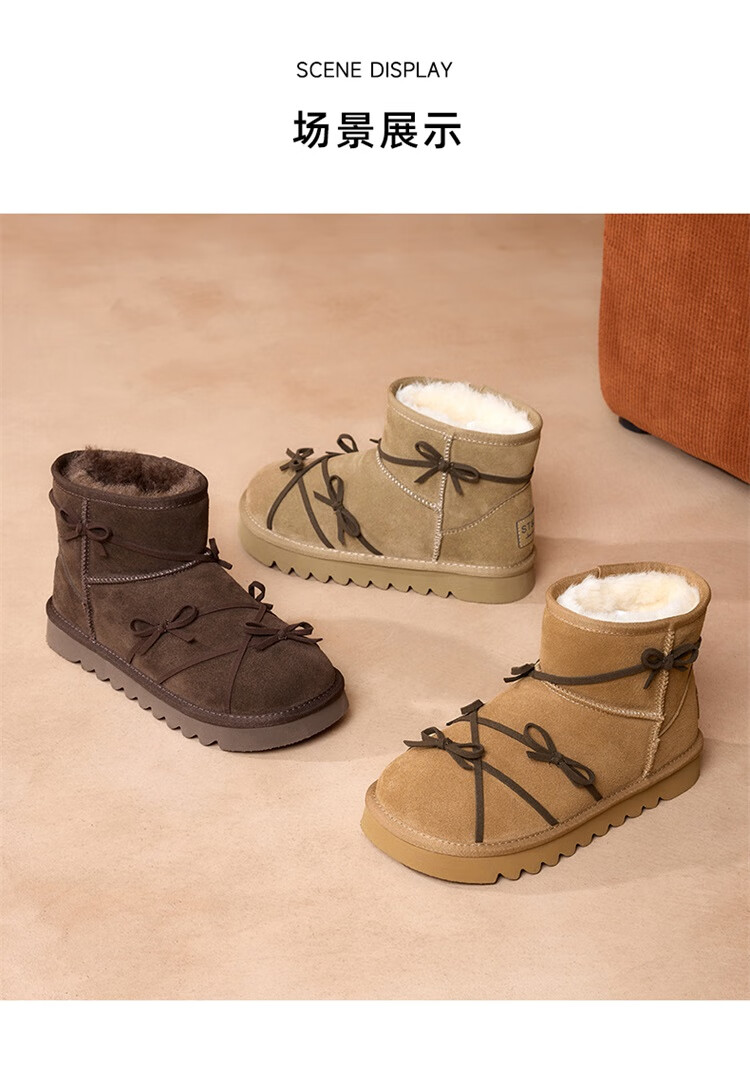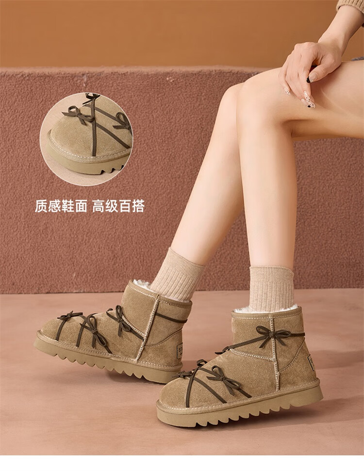 星期六真皮加绒雪地靴女2025新款冬季复古加厚保暖短靴东北防寒毛毛棉鞋 驼色 【低温御寒】跟高3cm 36