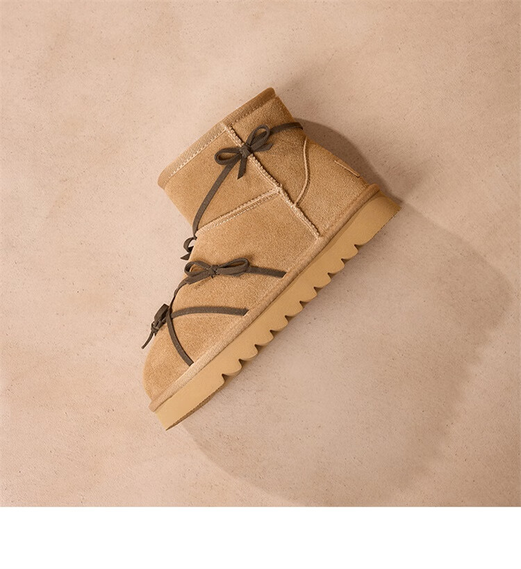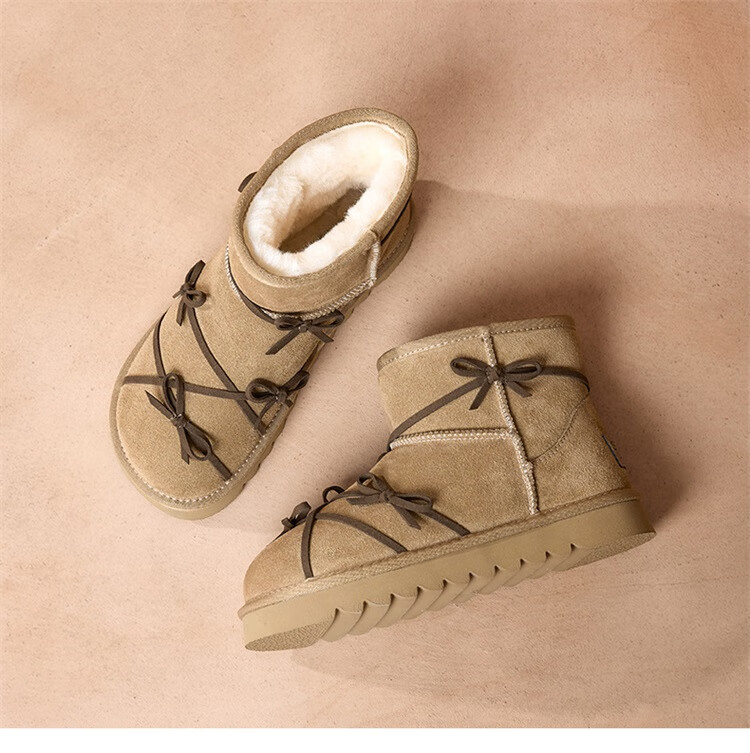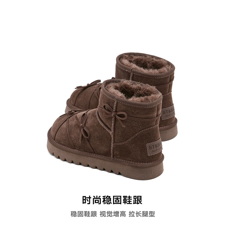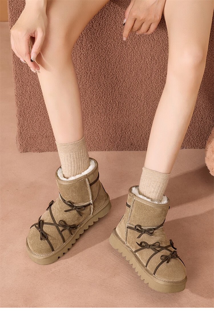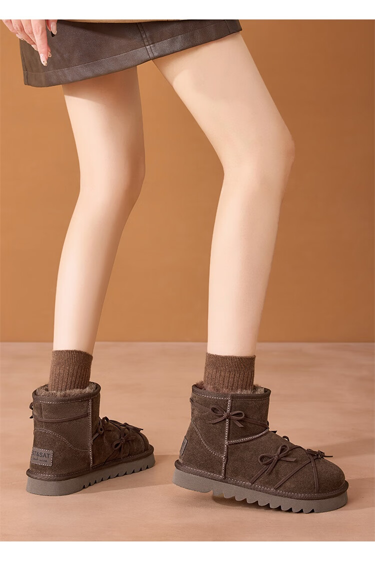 星期六真皮加绒雪地靴女2025新款冬季复古加厚保暖短靴东北防寒毛毛棉鞋 驼色 【低温御寒】跟高3cm 36