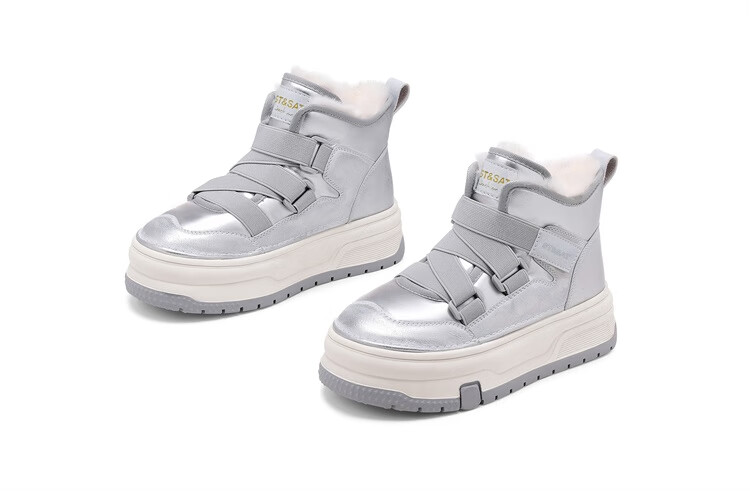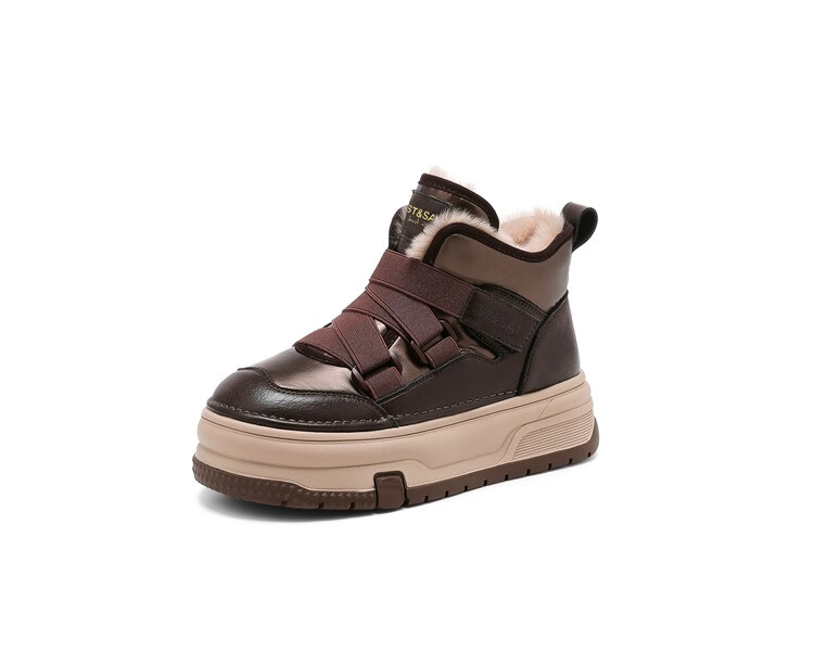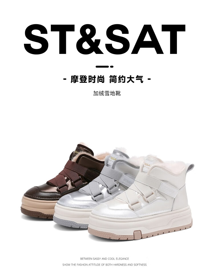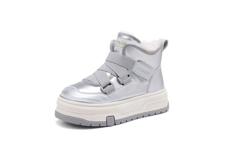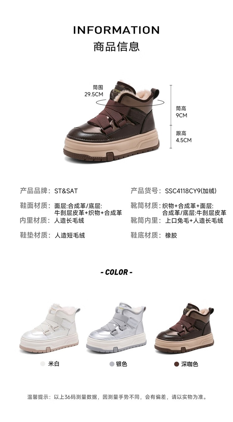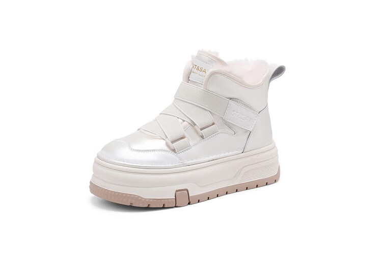 星期六厚底增高雪地靴女款2025新款冬季加绒短靴子保暖东北雪地防滑棉鞋 米白色 【高帮加绒】跟高4.5cm 37